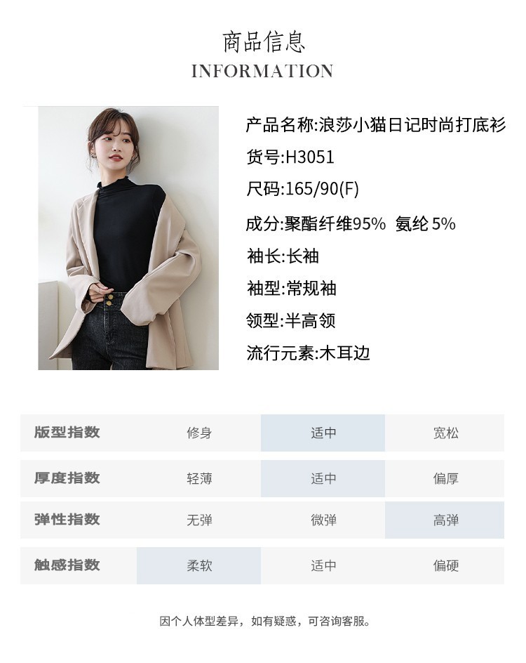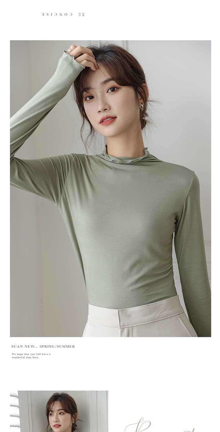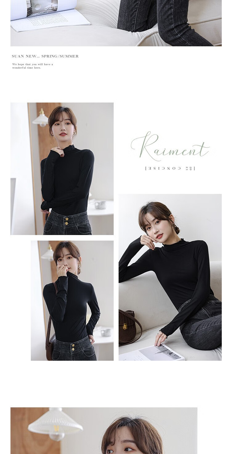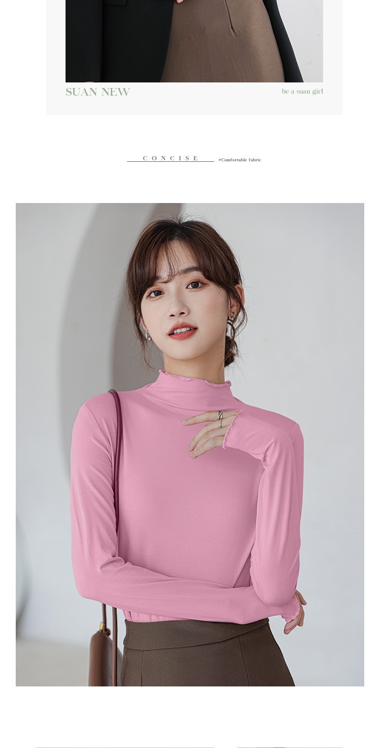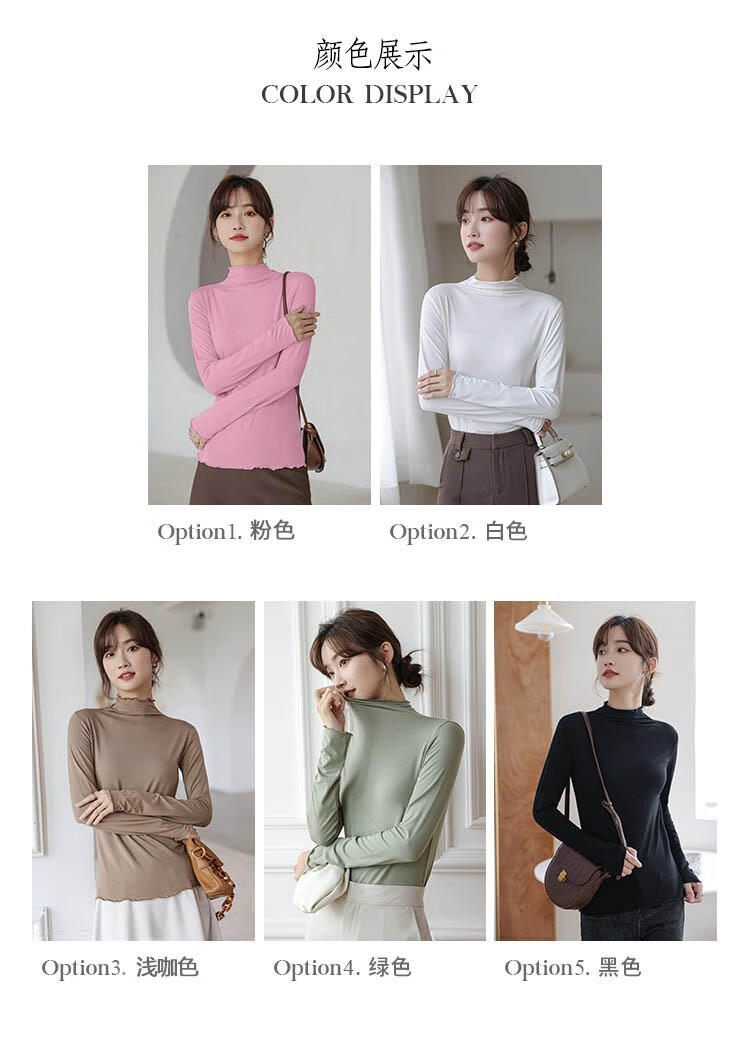 Langsha half turtleneck bottoming shirt for women, long-sleeved spring and autumn inner wear, slim fit autumn and winter underwear for women, thin style, mid-collar top, elegant white, one size fits all