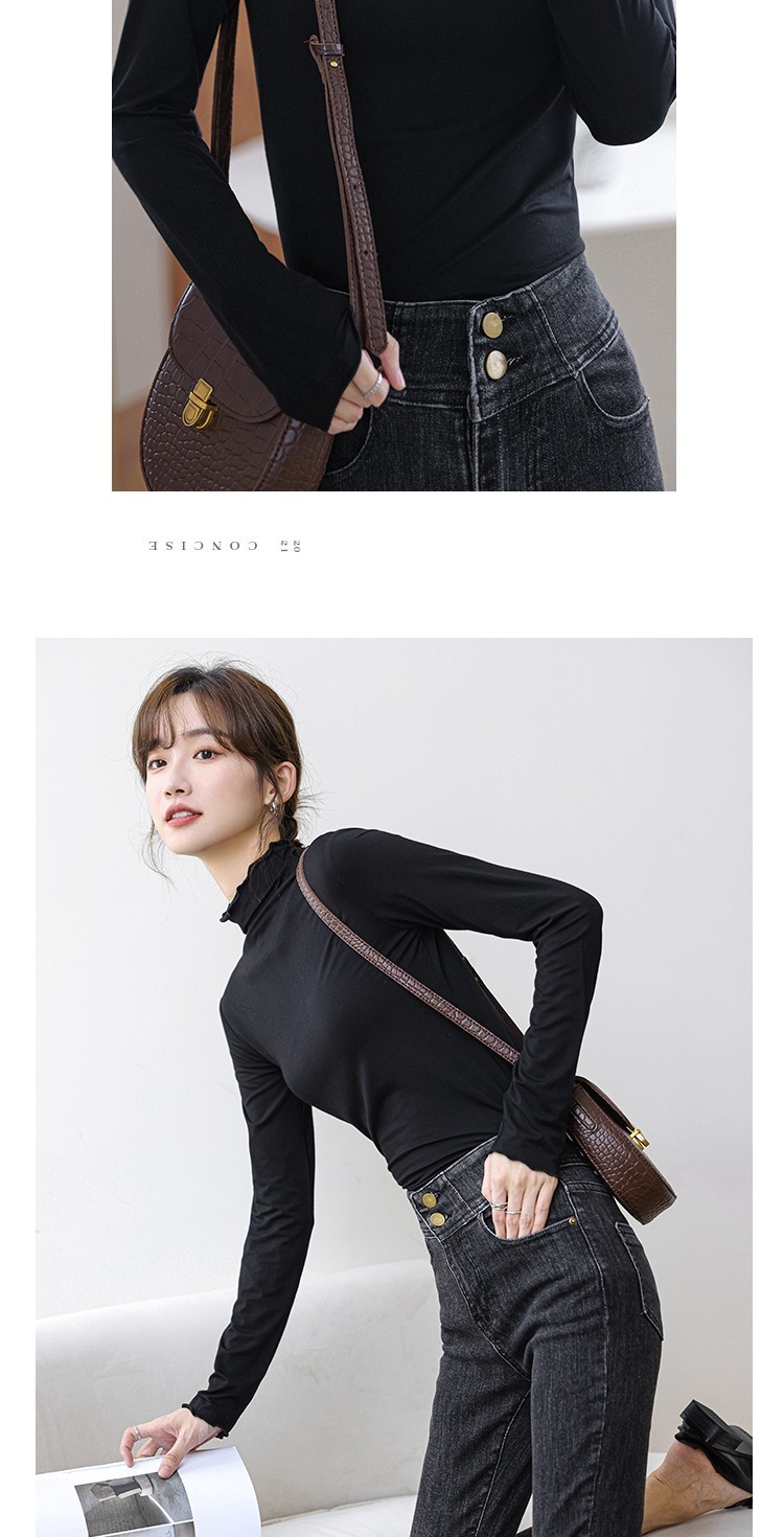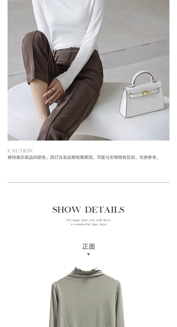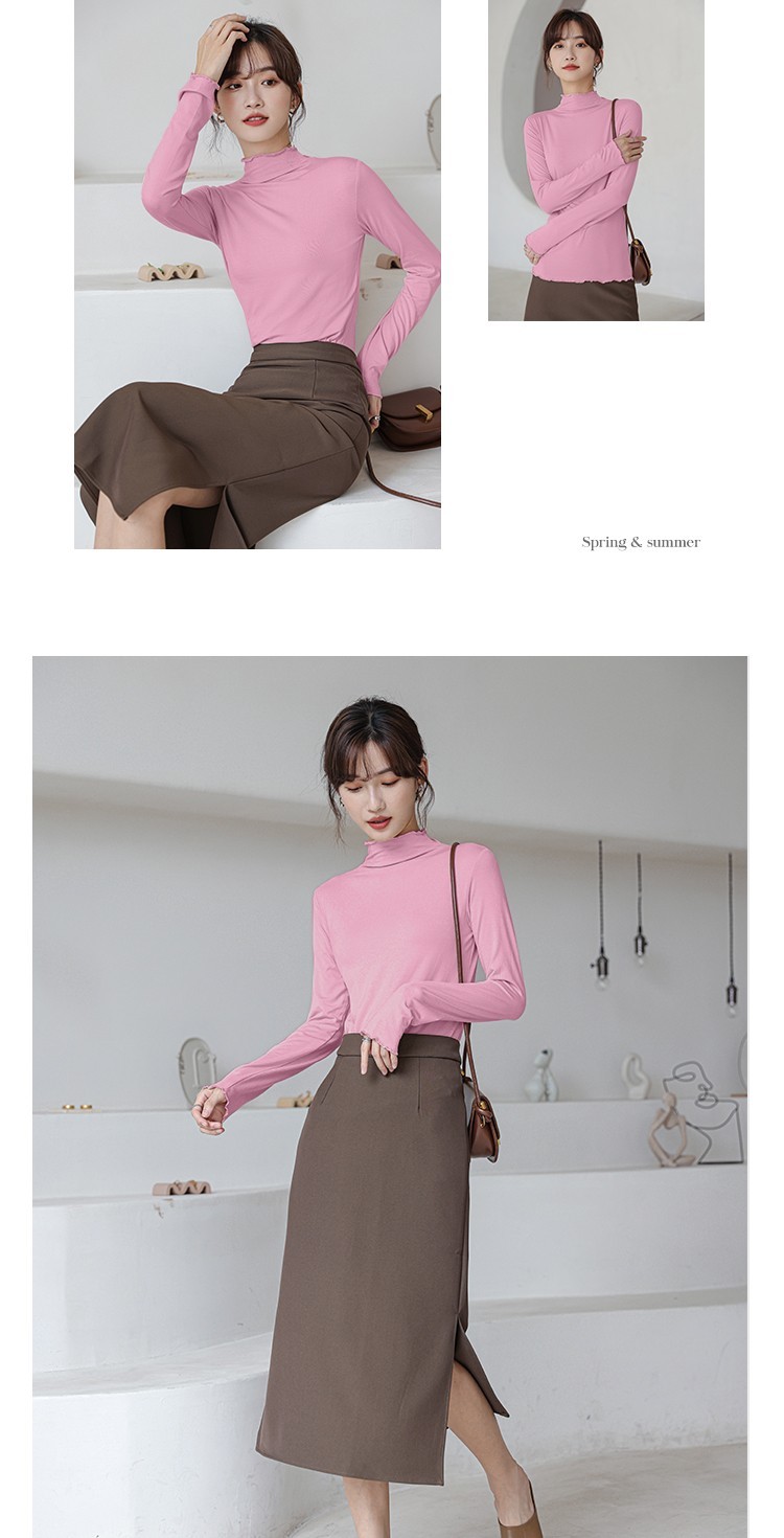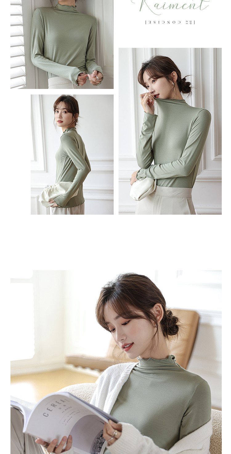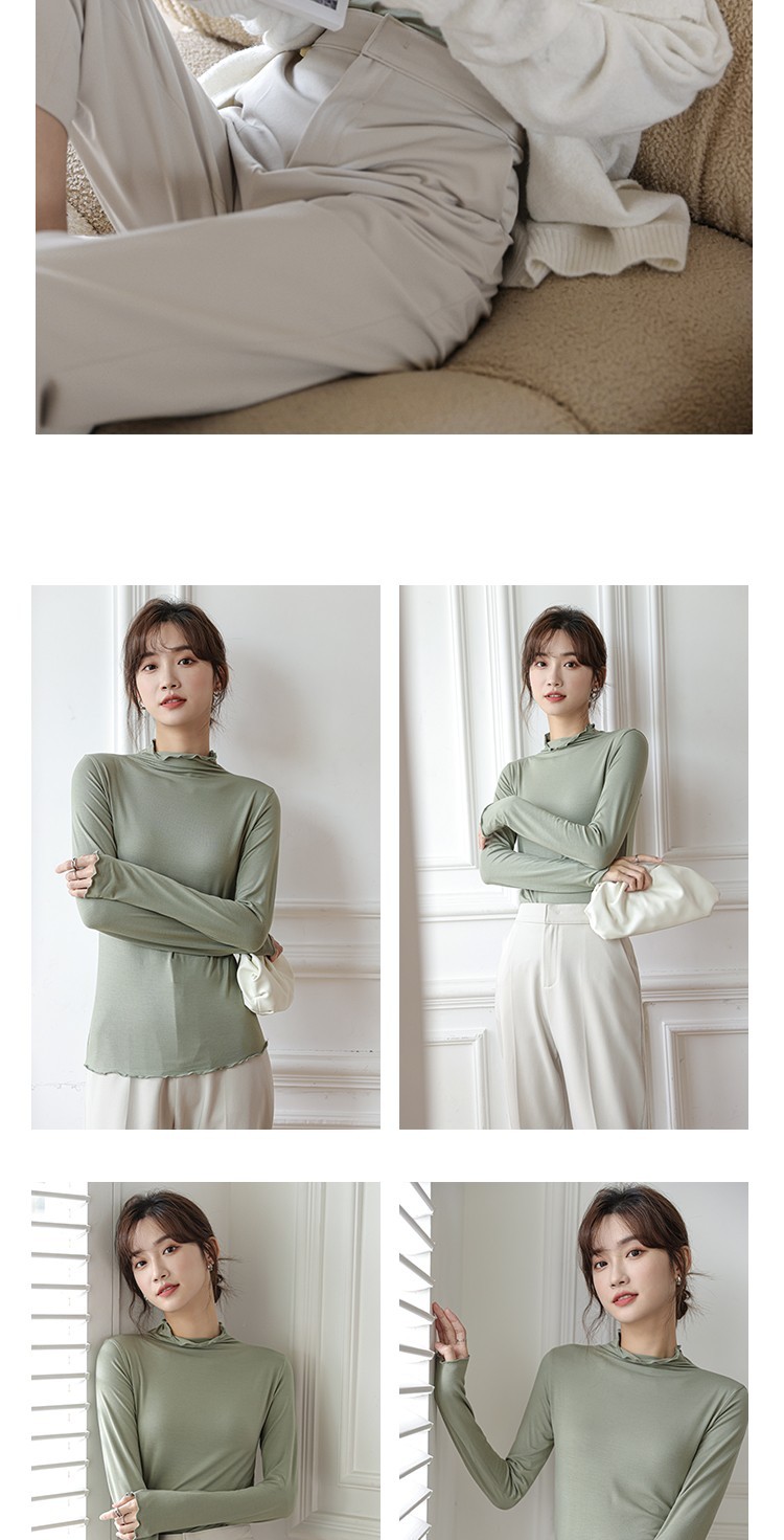 Langsha half turtleneck bottoming shirt for women, long-sleeved spring and autumn inner wear, slim fit autumn and winter underwear for women, thin style, mid-collar top, elegant white, one size fits all