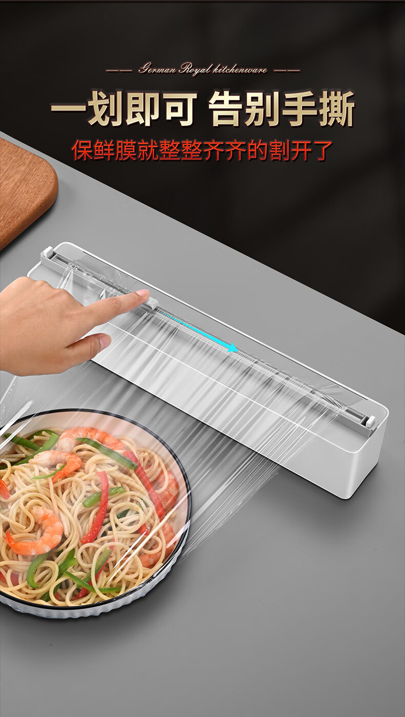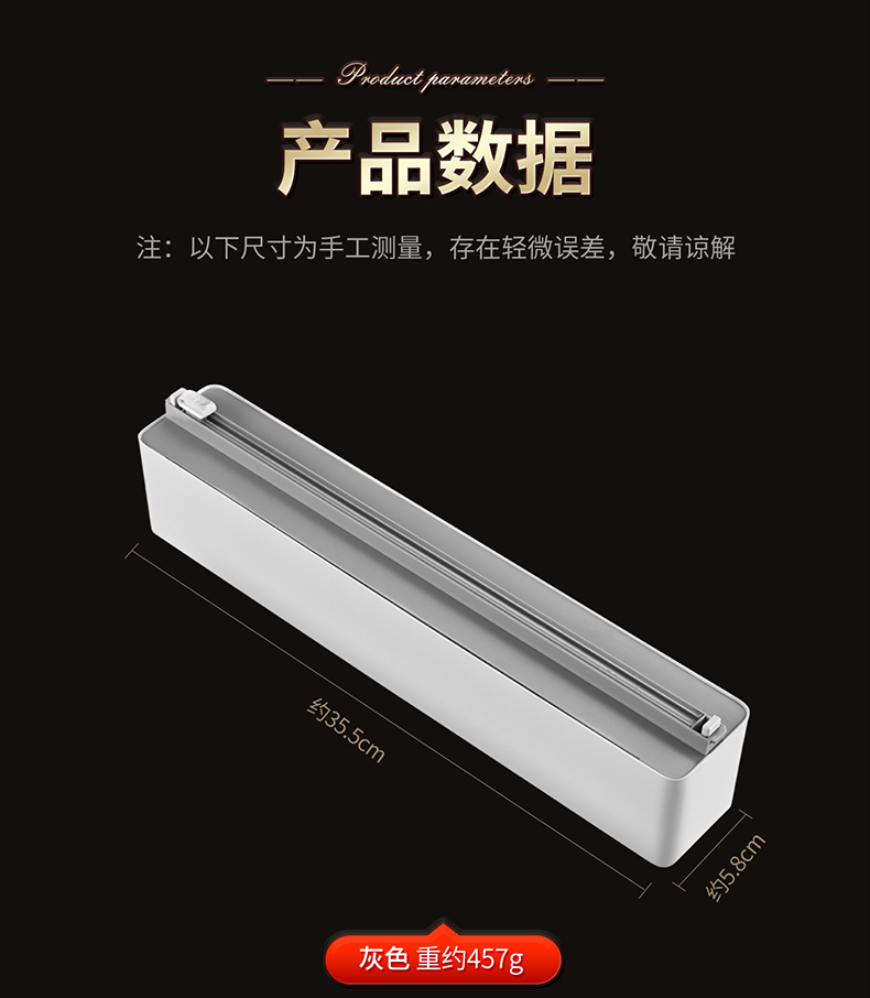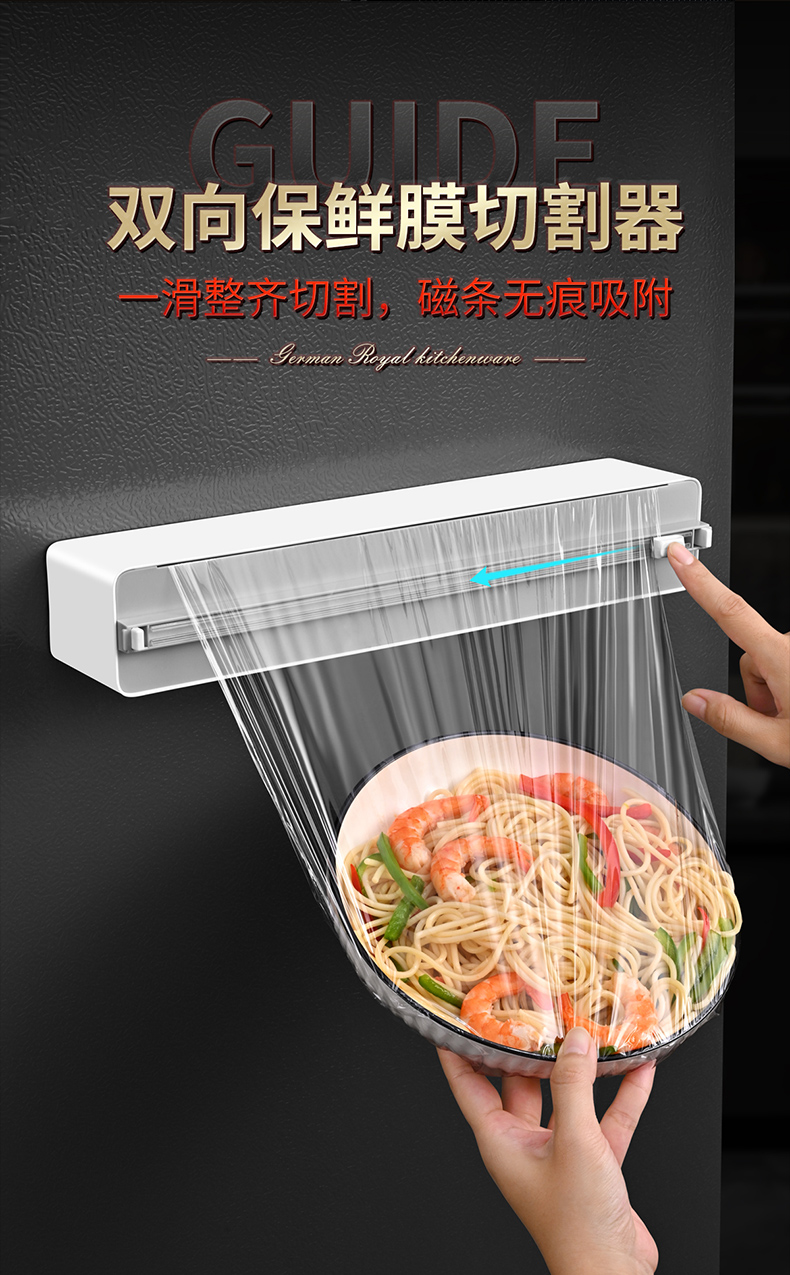 BOMANSI cling film cutter food grade household magnetic refrigerator kitchen tear-free cling film cover cutting box artifact wall hanging style gray cutter