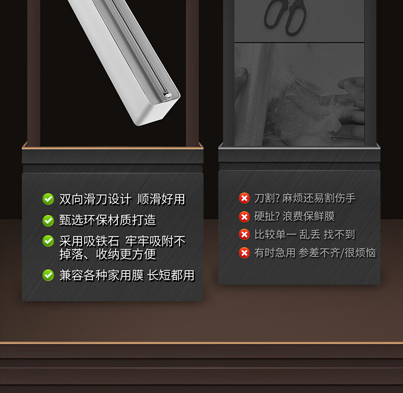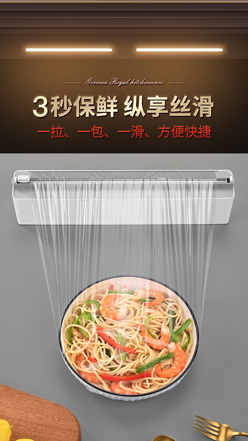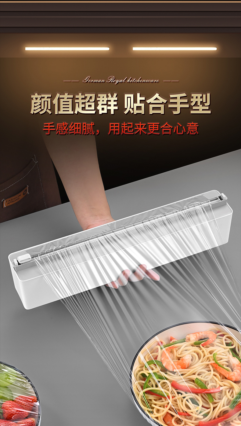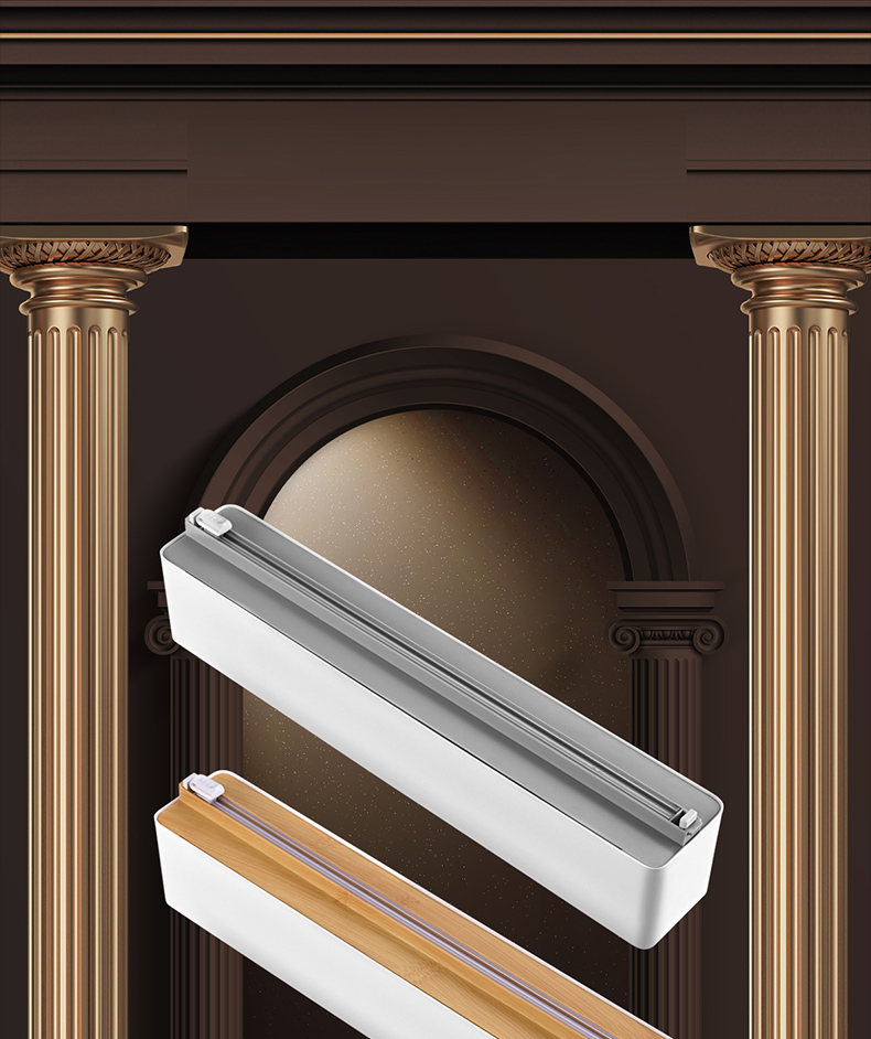 BOMANSI cling film cutter food grade household magnetic refrigerator kitchen tear-free cling film cover cutting box artifact wall hanging style gray cutter
