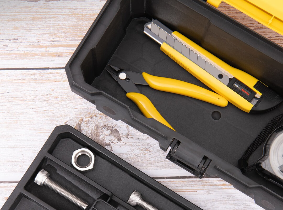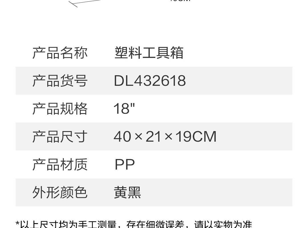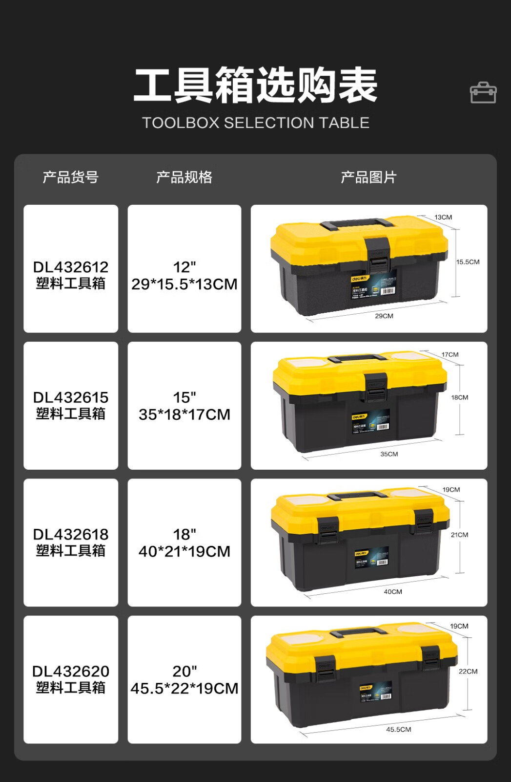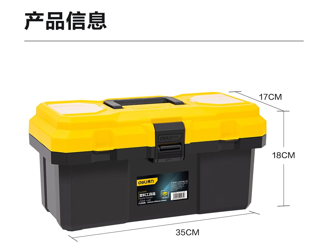 Deli tool box empty box household hardware storage box large multi-functional repair tool portable electrician tool box primary school student art storage box 18-inch reinforced plastic tool box DL432618