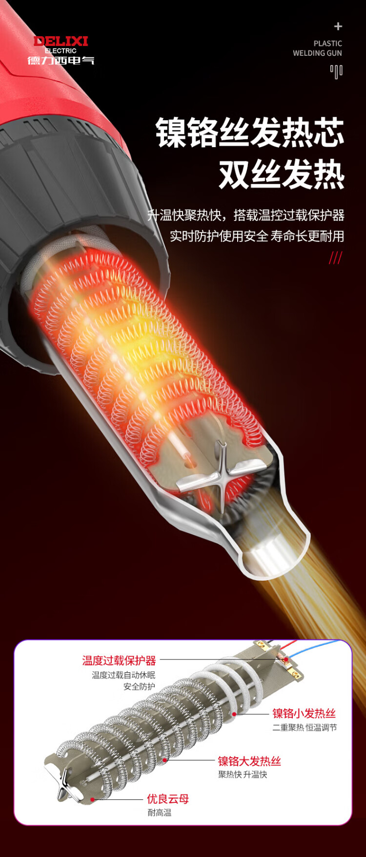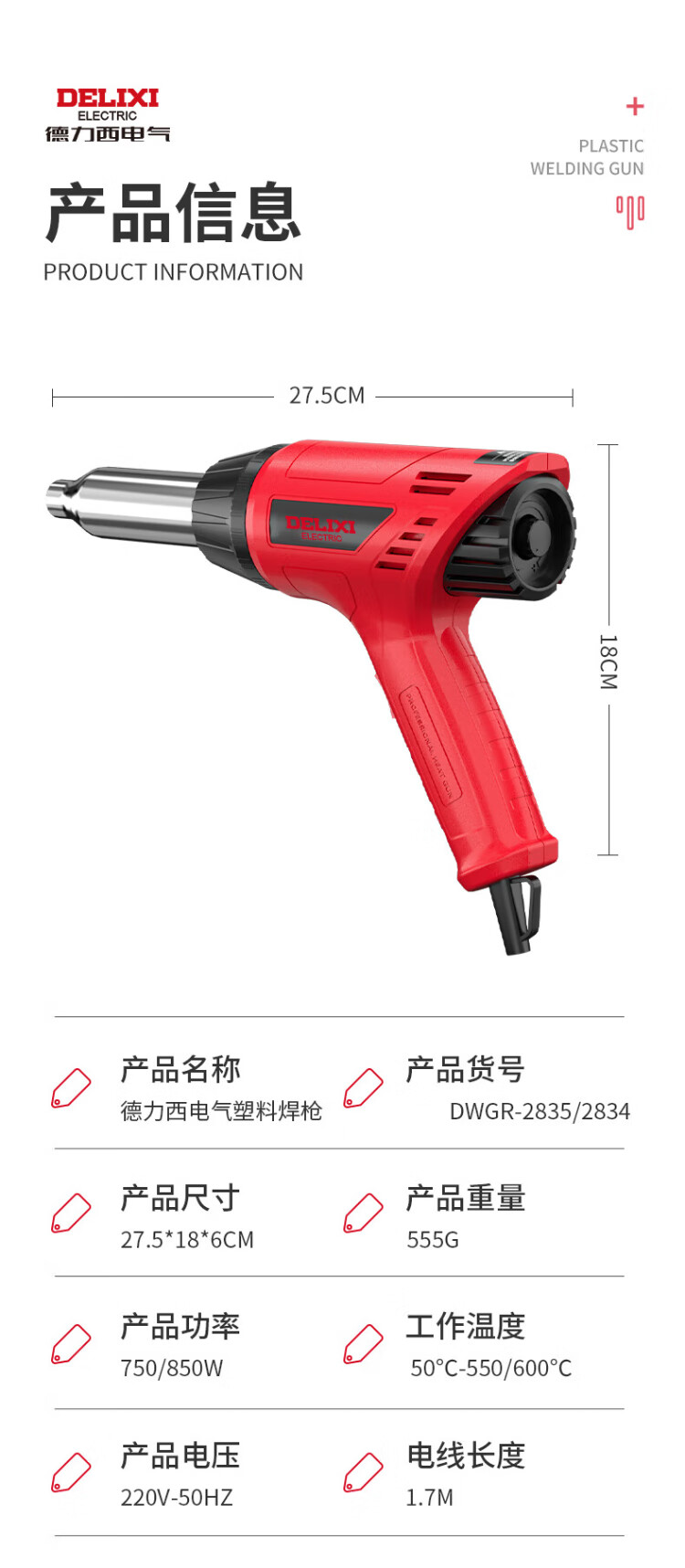 Delixi plastic welding gun hot air gun pp plastic welding artifact car bumper pvc board small plastic welding gun industrial grade 750W plastic welding gun official standard