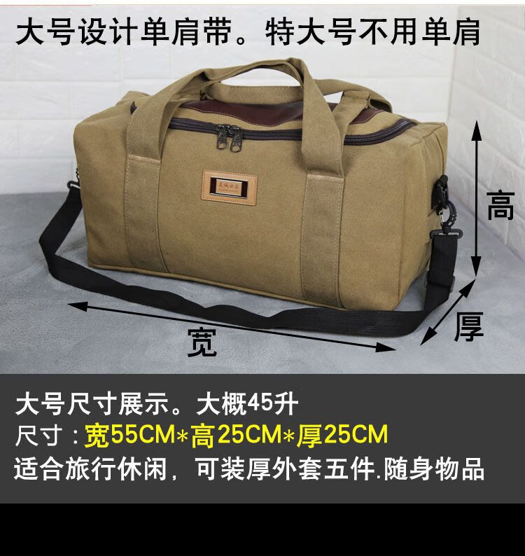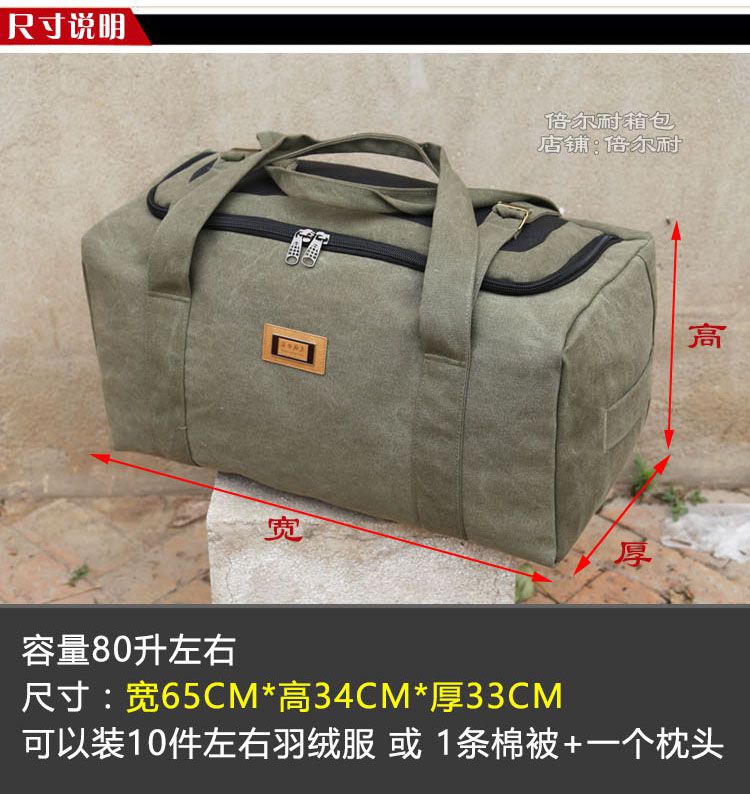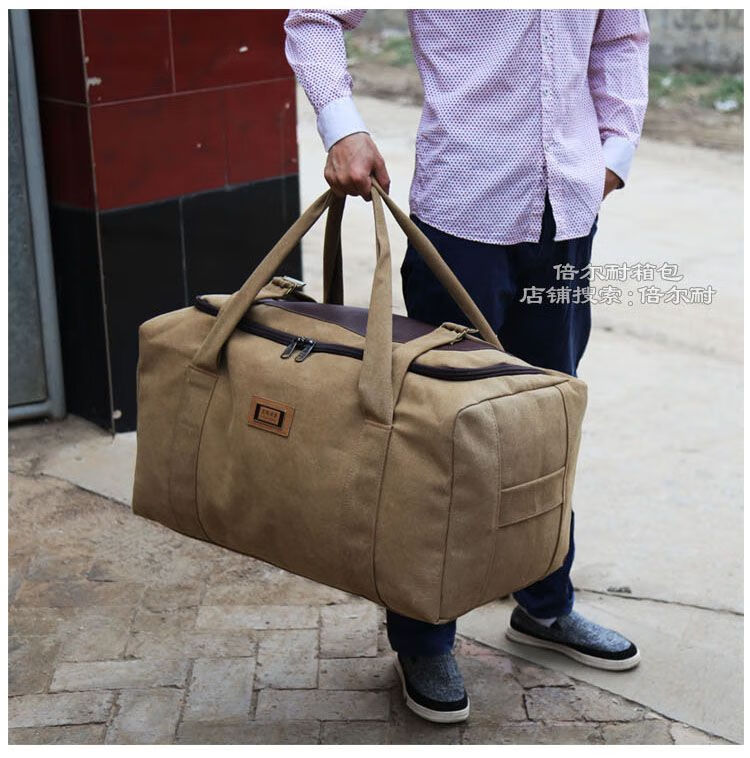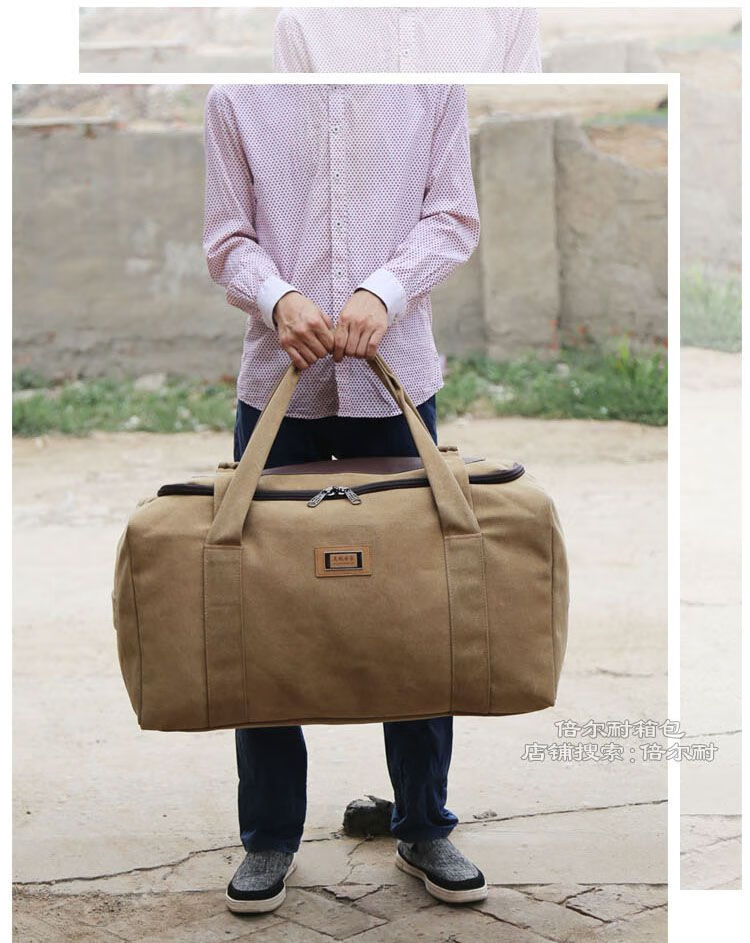 Duffel bag large capacity Oxford cloth moving bag travel storage bag thickened canvas men's and women's luggage bag large capacity khaki extra large 80 liters large