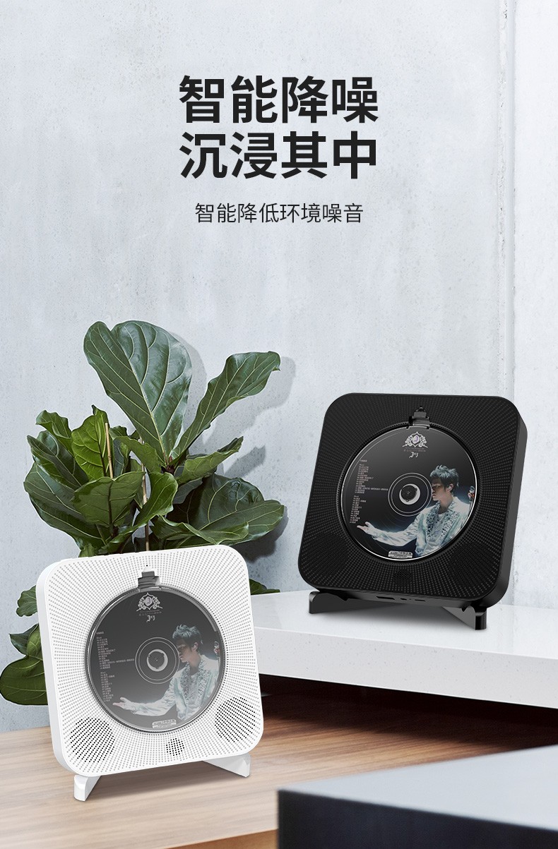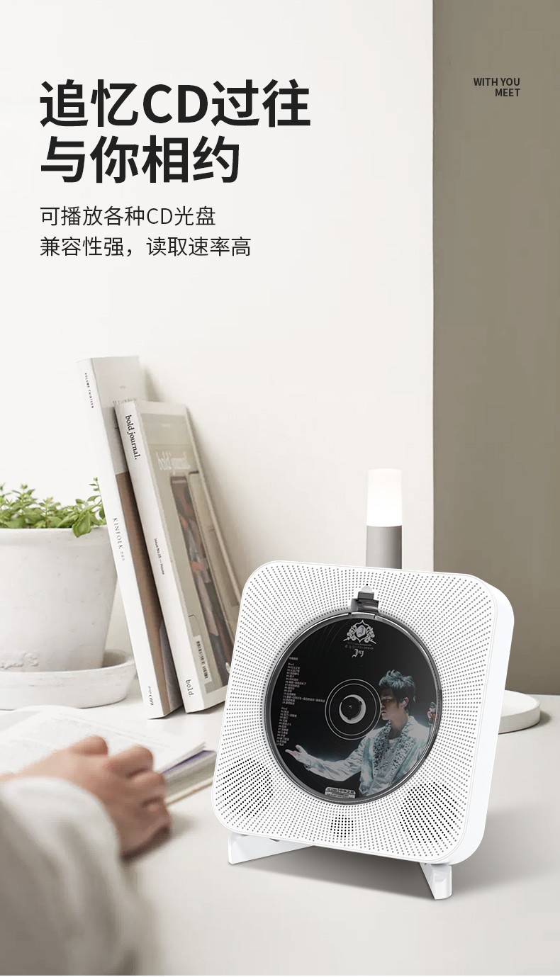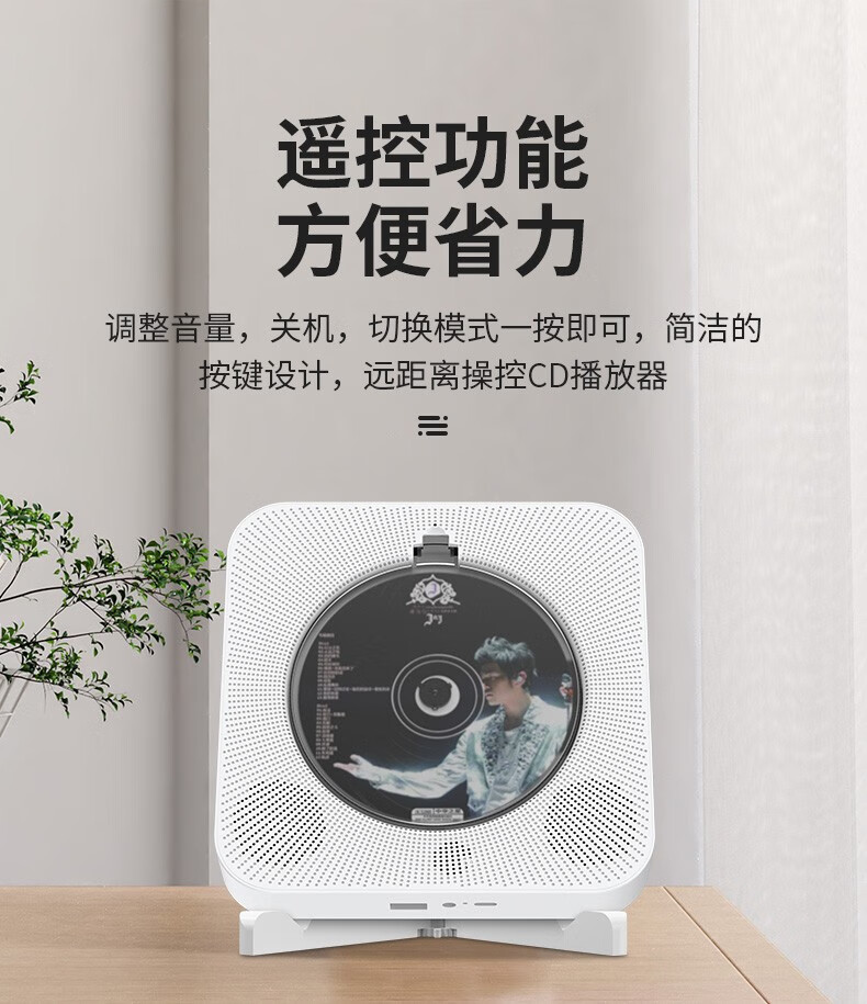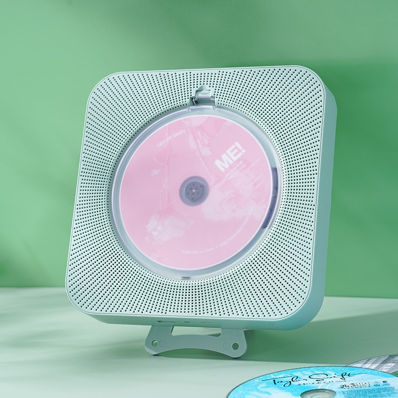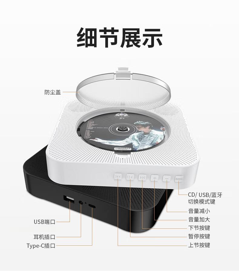 Yuexinting CD player portable music album player home wall-mounted Bluetooth audio speaker English CD disc learning machine repeater i retro vinyl CD birthday gift white plug-in model + no dust cover + Bluetooth version