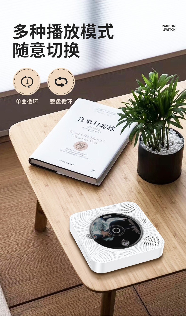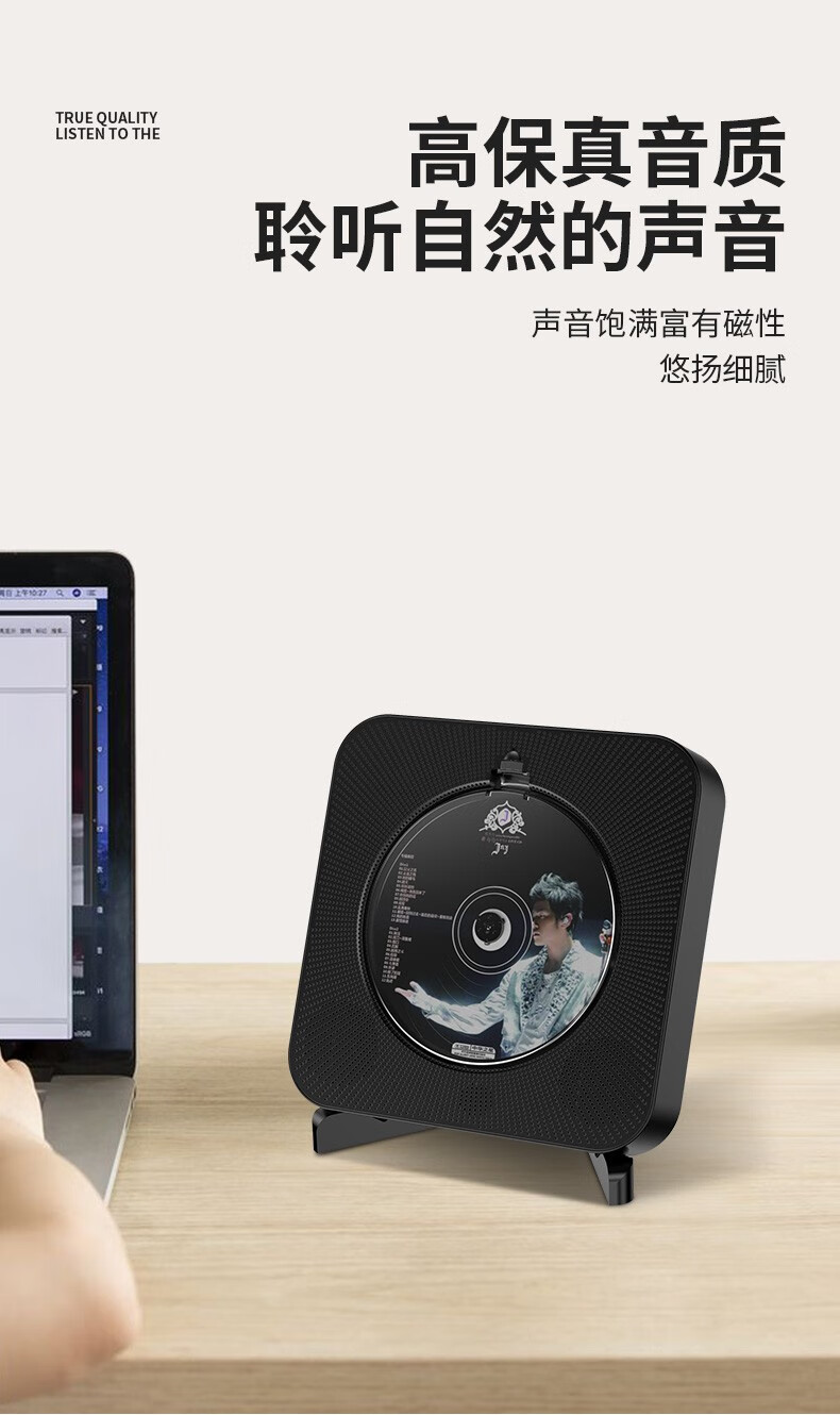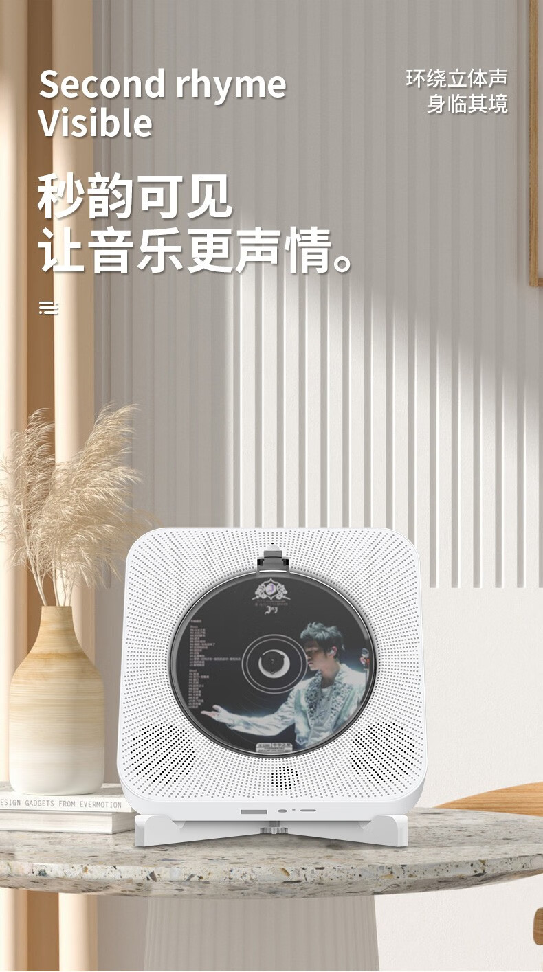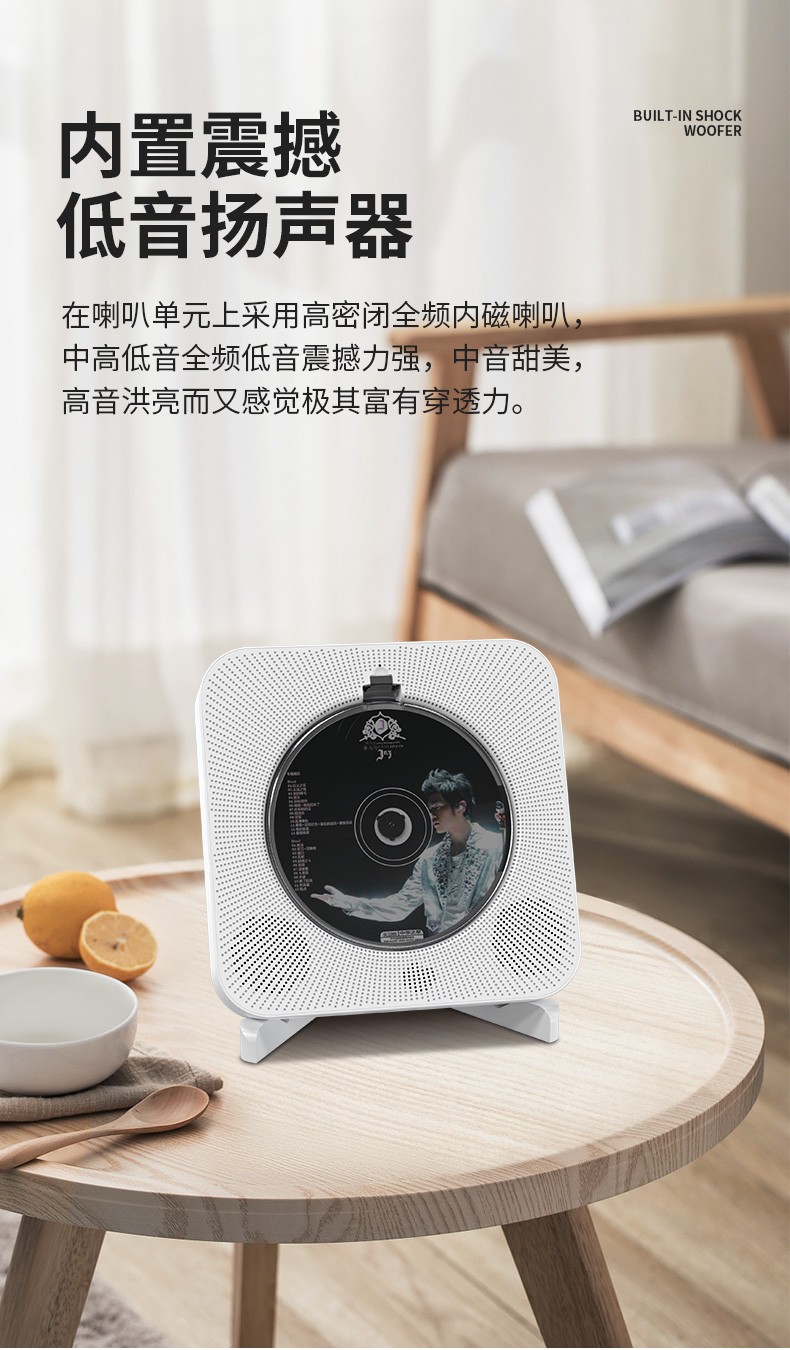 Yuexinting CD player portable music album player home wall-mounted Bluetooth audio speaker English CD disc learning machine repeater i retro vinyl CD birthday gift white plug-in model + no dust cover + Bluetooth version