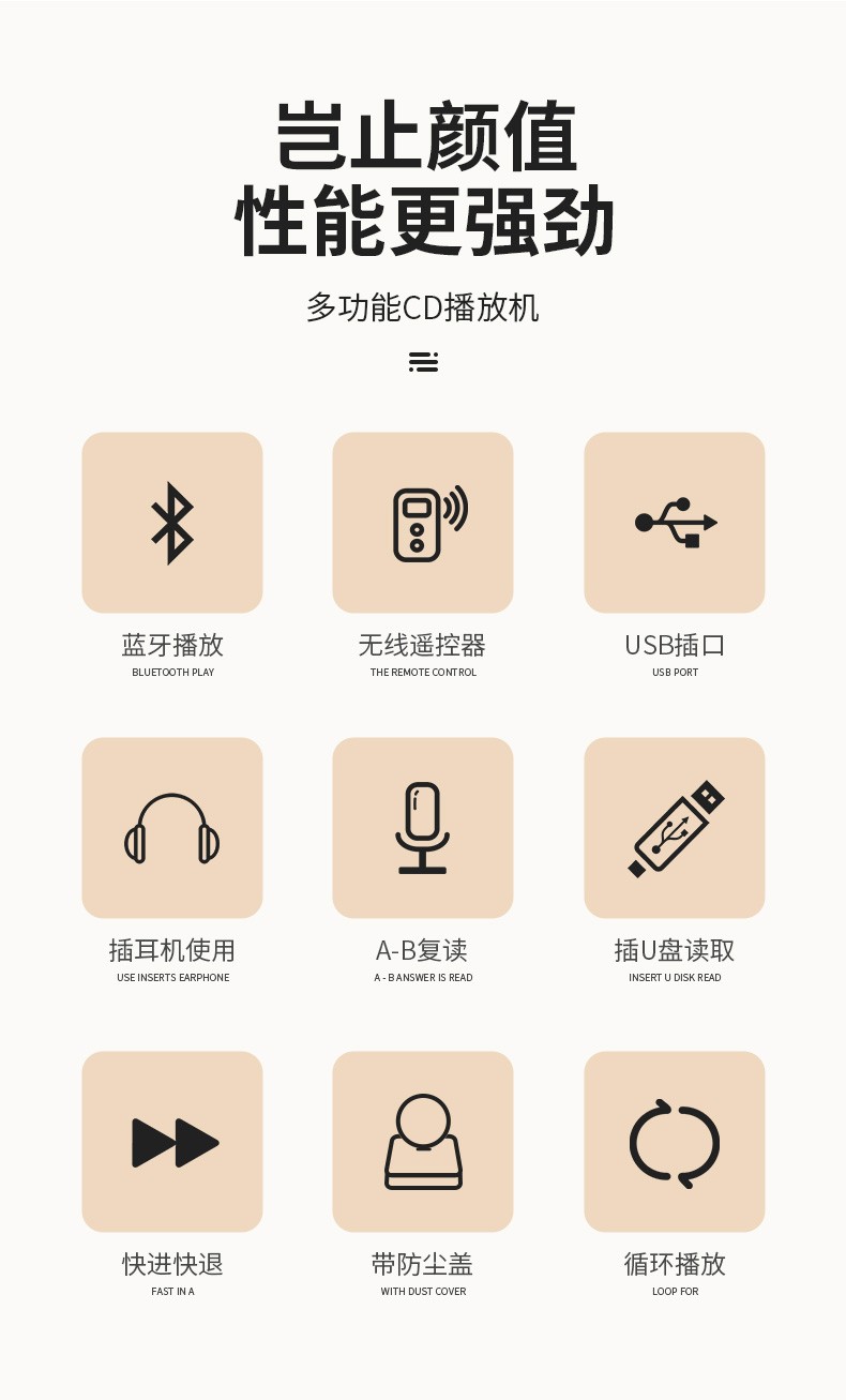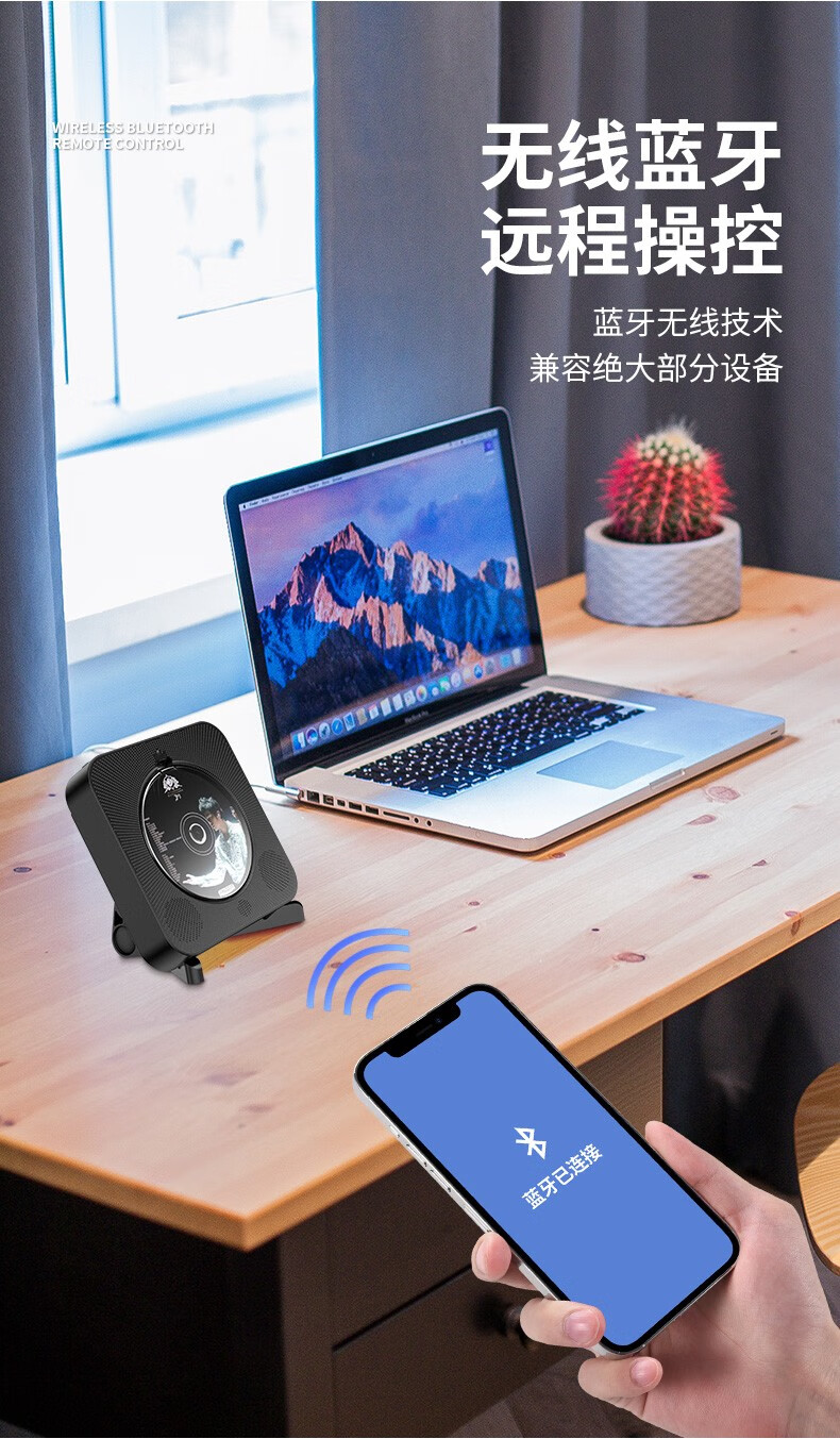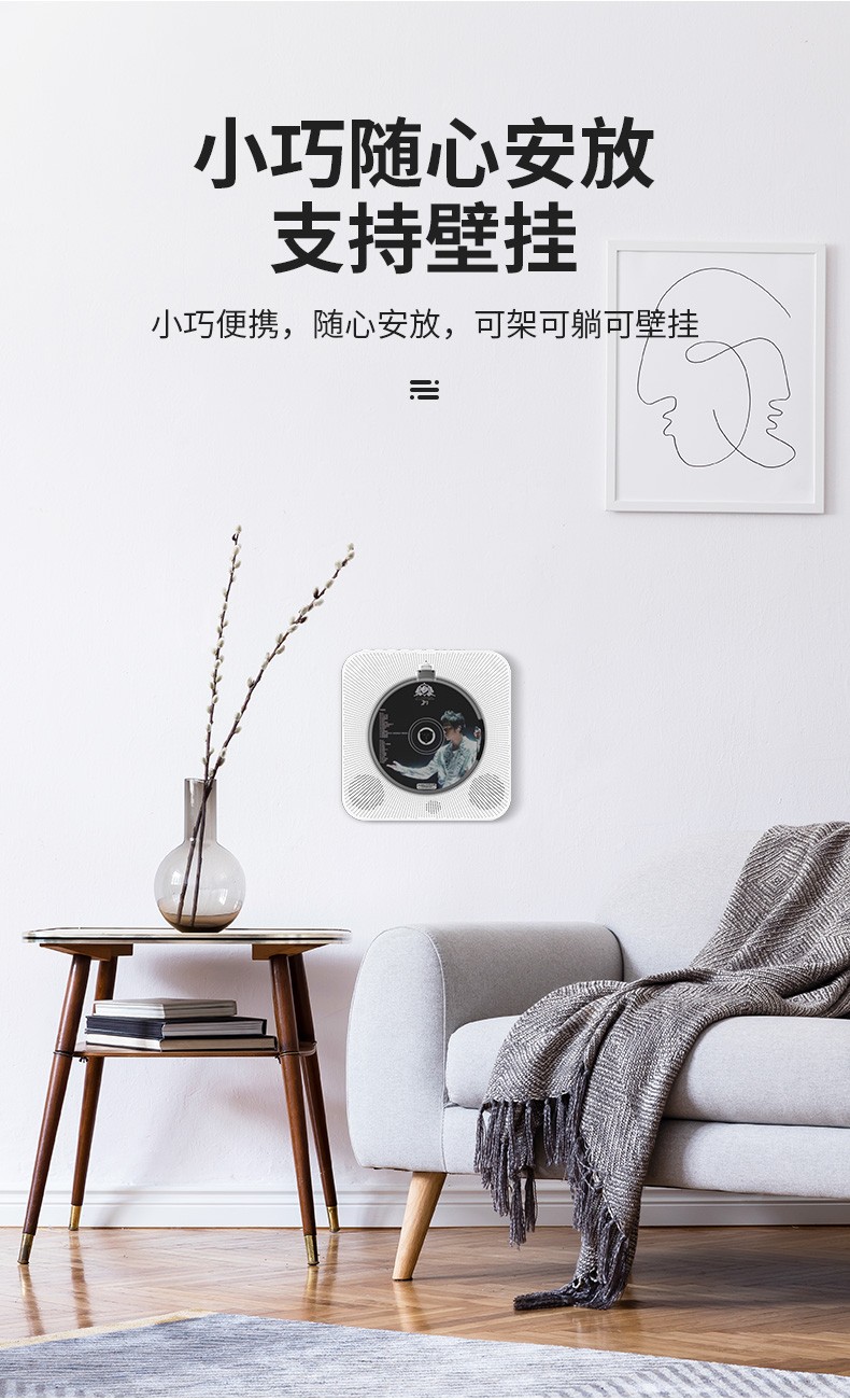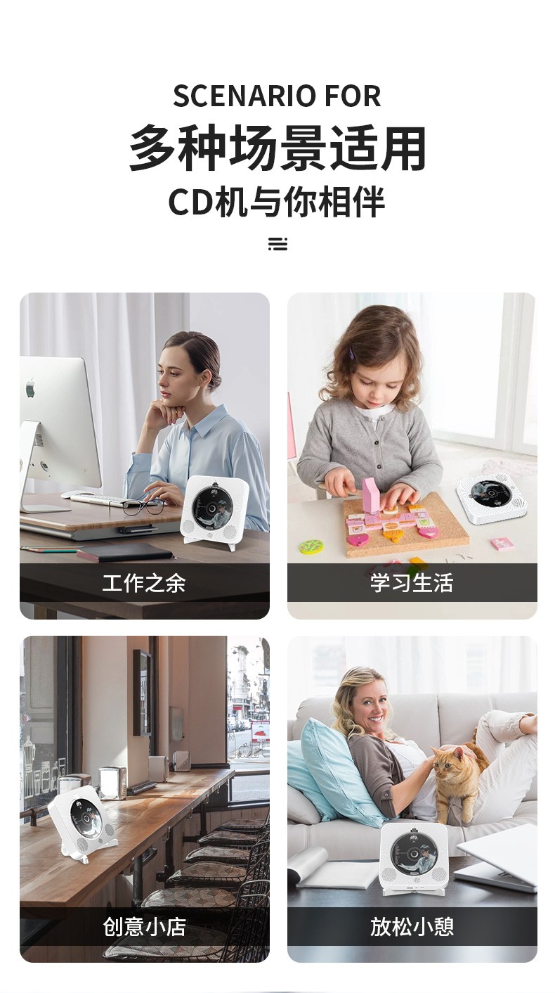 Yuexinting CD player portable music album player home wall-mounted Bluetooth audio speaker English CD disc learning machine repeater i retro vinyl CD birthday gift white plug-in model + no dust cover + Bluetooth version