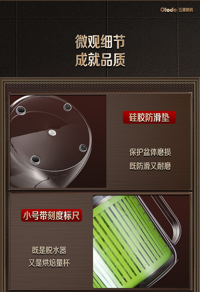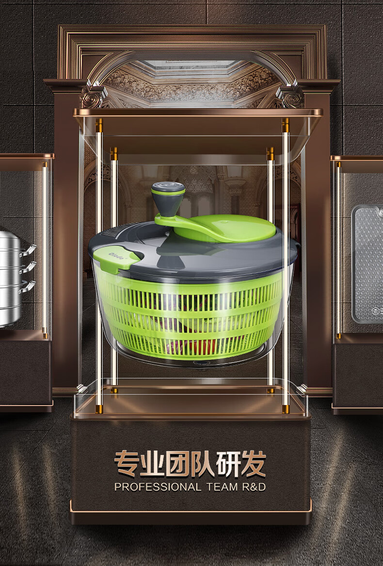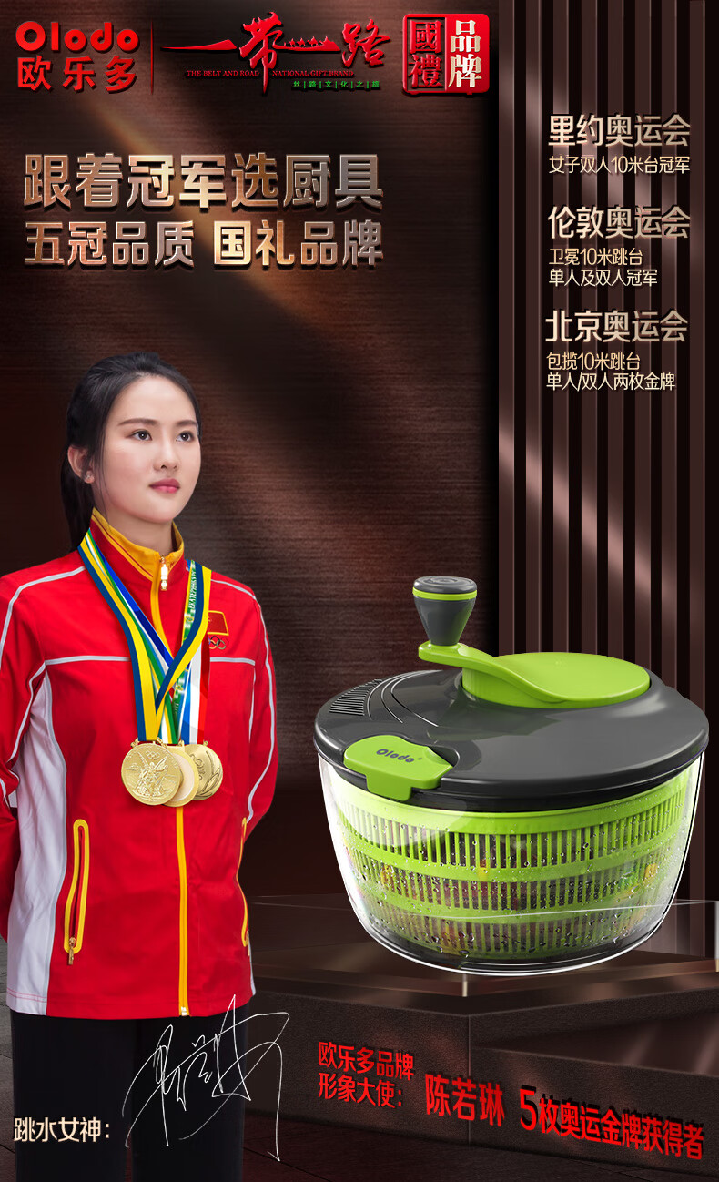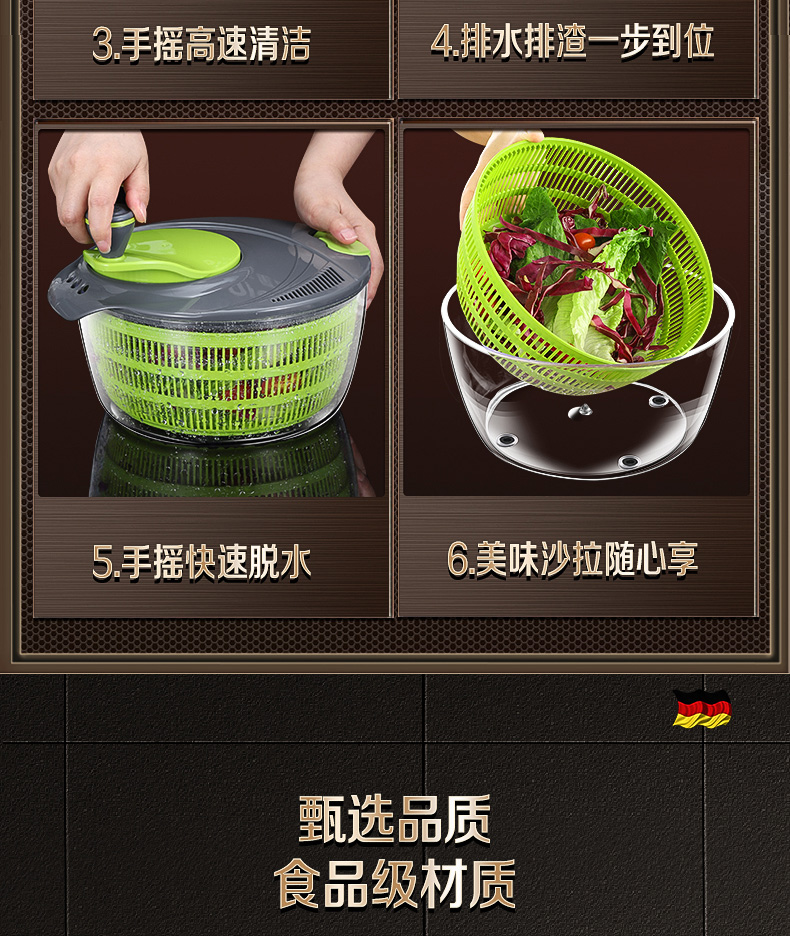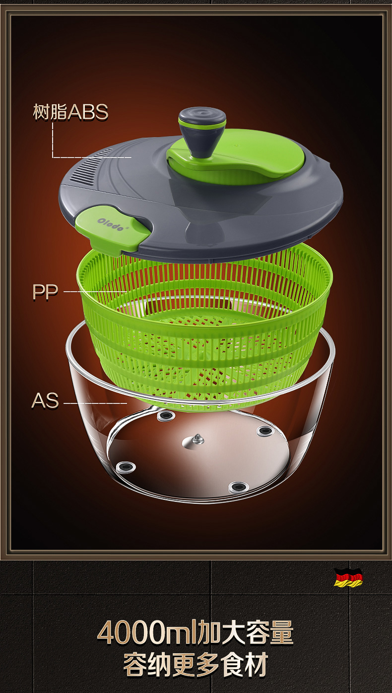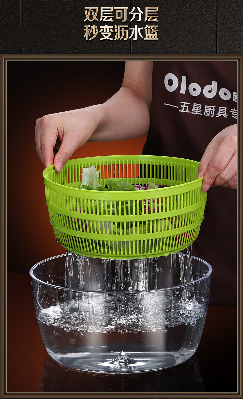 Olodo German vegetable dehydrator, vegetable washing and draining basket, multi-functional manual salad dehydrator, fruit dehydration basin, high-speed centrifugal dehydrator, large size 4000ml