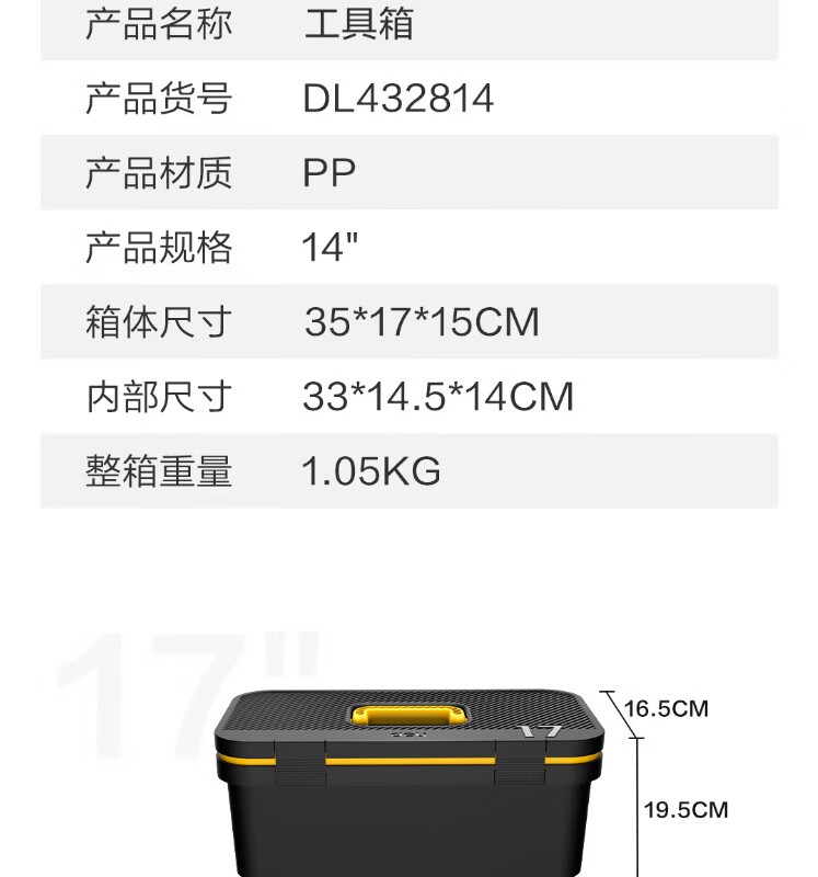 Deli Tool Box Empty Box Home Car Hardware Storage Box Large Multi-Function Repair Tool Portable Electrician Tool Box Elementary School Student Art Storage Box 14-inch Fashion Tool Box DL432814