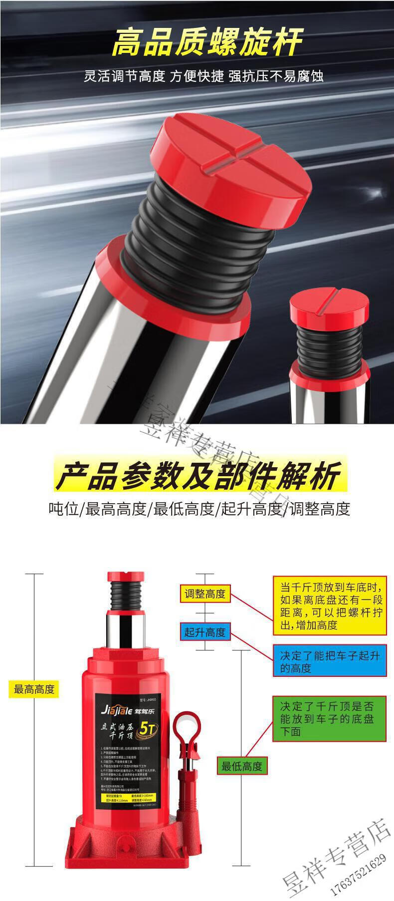 FHJQB2023 New Hydraulic Vertical 2 Ton Car Jack, 5 Ton Truck, Car Hydraulic Car Hand Crank (Double Section Hydraulic) Standard 2 Ton Car