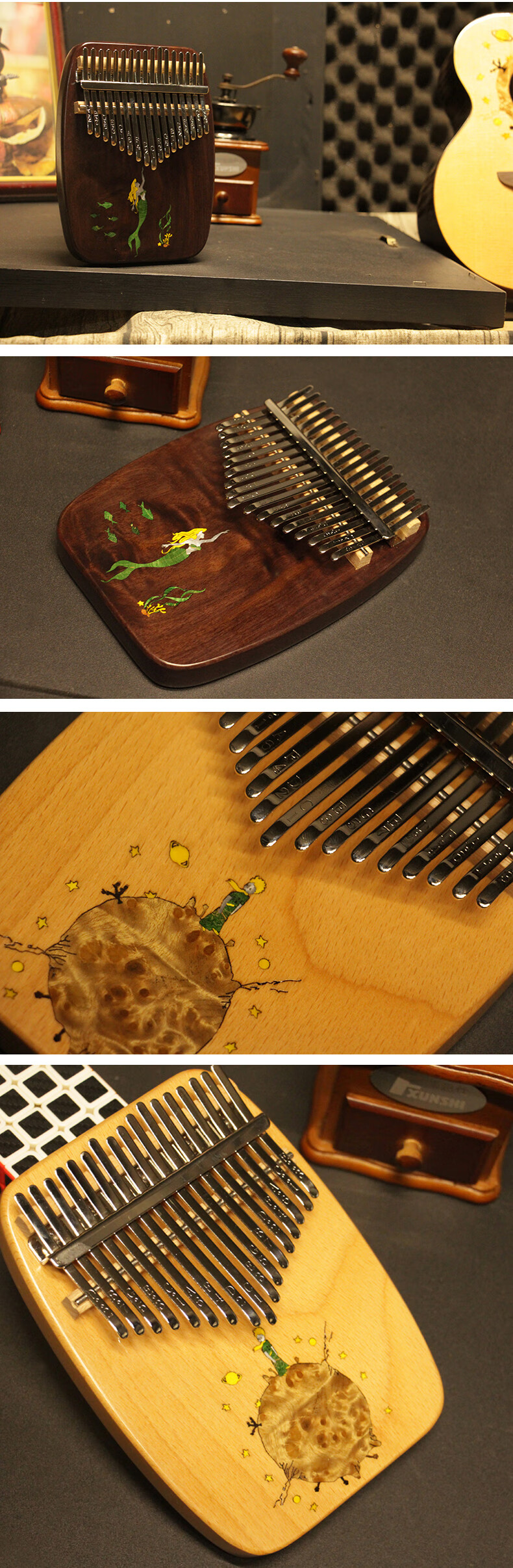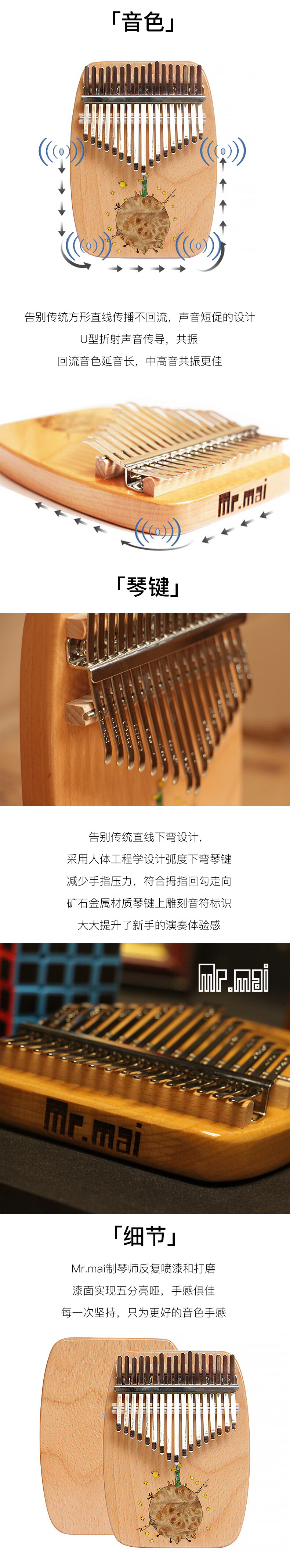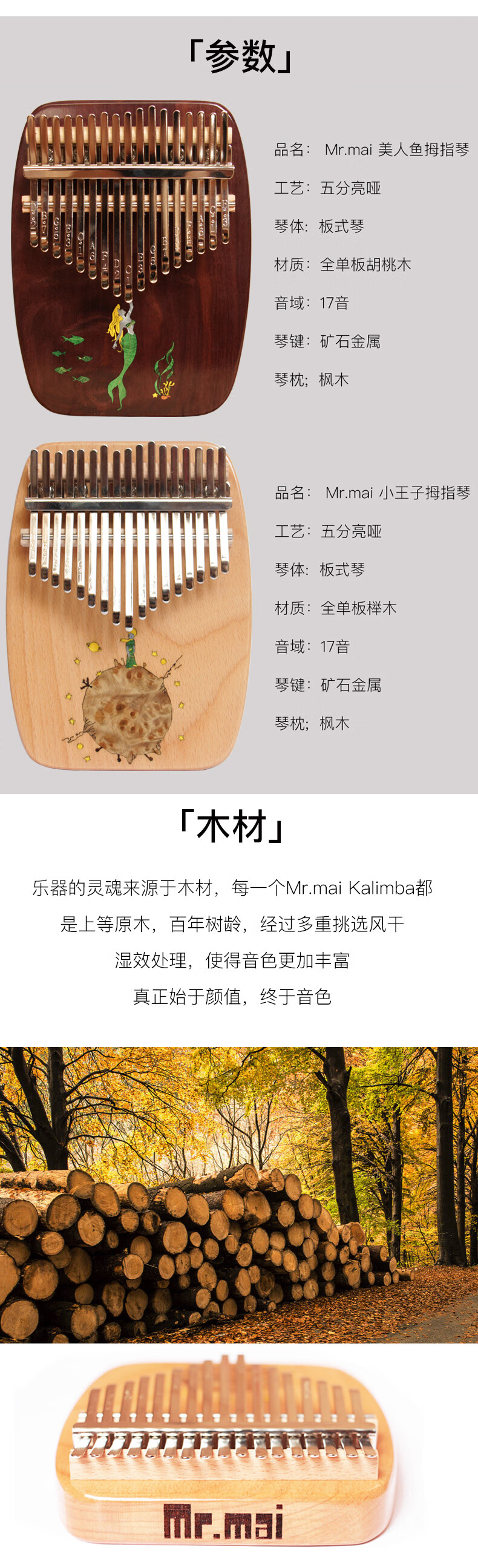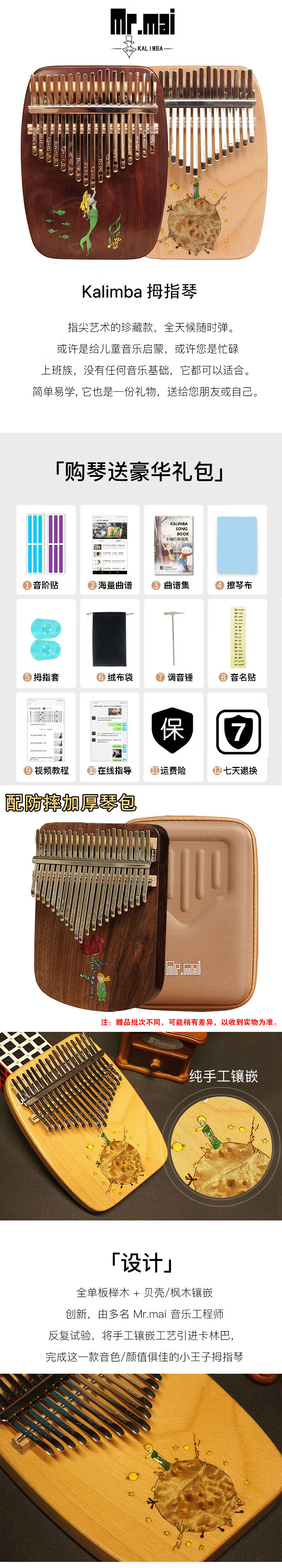 Mr.mai kalimba sends teaching music sheet to adults, students, children, thumb piano, finger piano, kalimba, super easy to learn musical instrument, 17-tone little prince, beech wood
