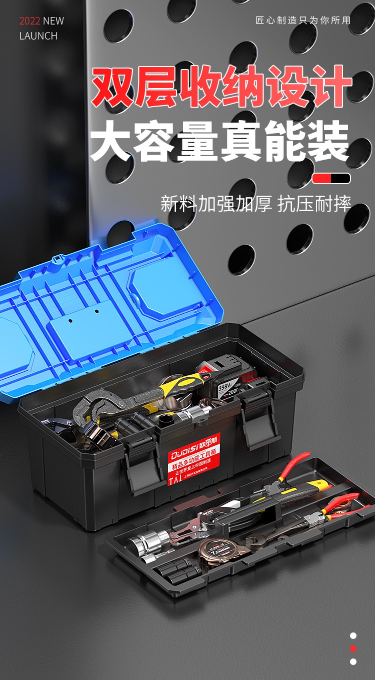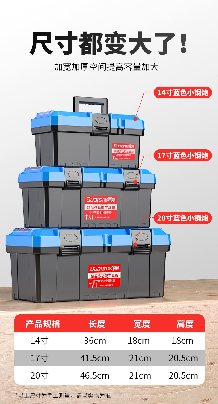 Otis household multi-functional hardware storage box portable electrician tool box vehicle repair accessories box tool box 14-inch blue cover thickened tool box