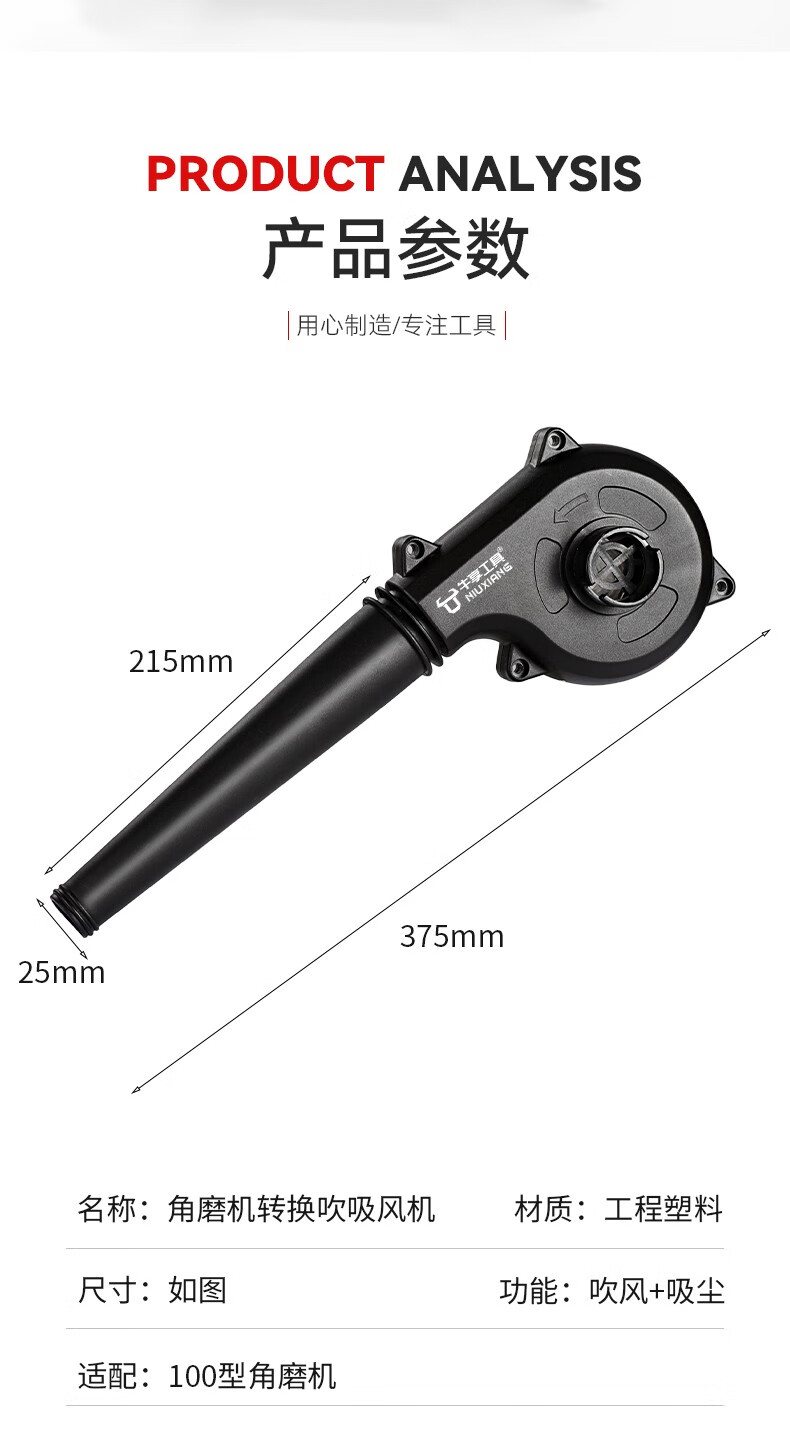 Niuxiang angle grinder modified blower industrial household wireless dust blower computer dust collector blowing and suction dual-use hair dryer converter single blower + accessories
