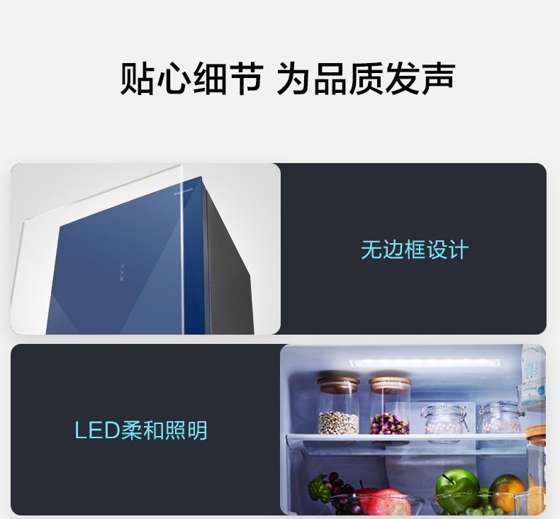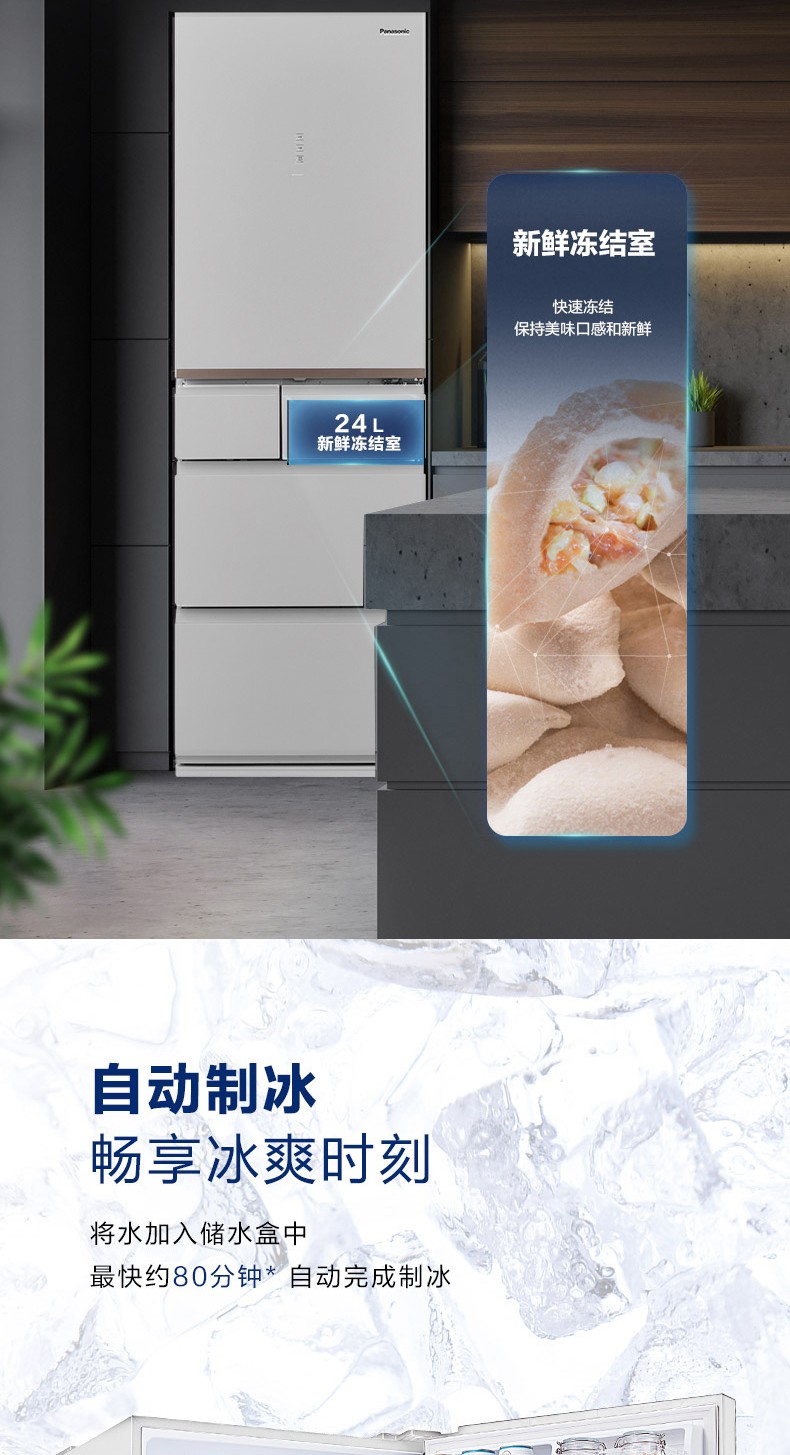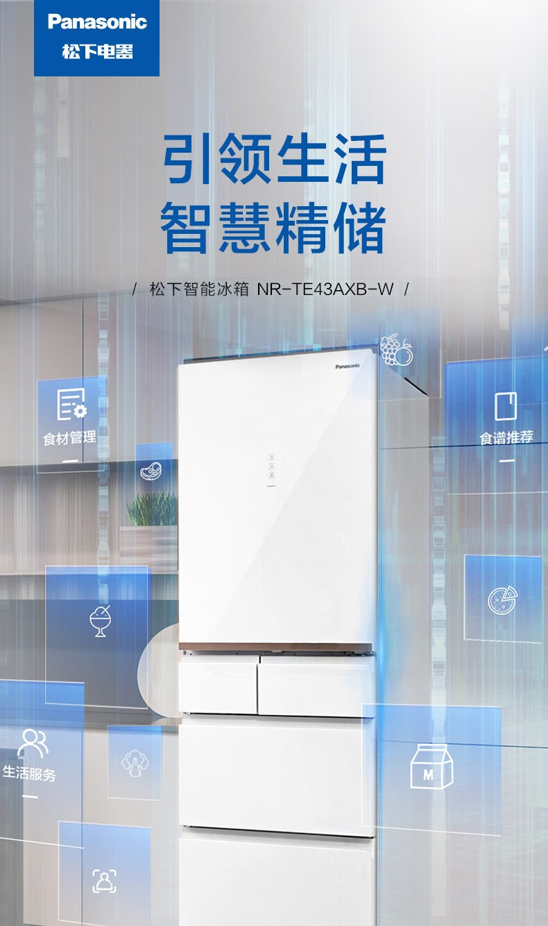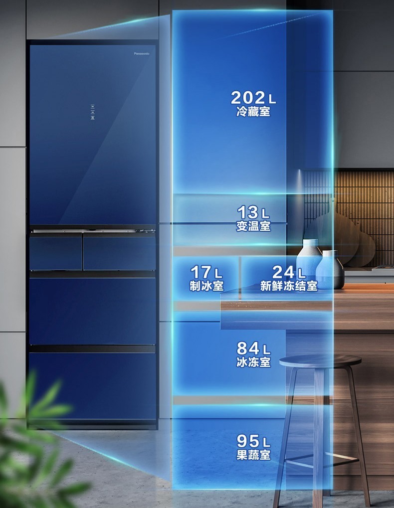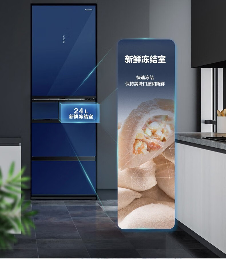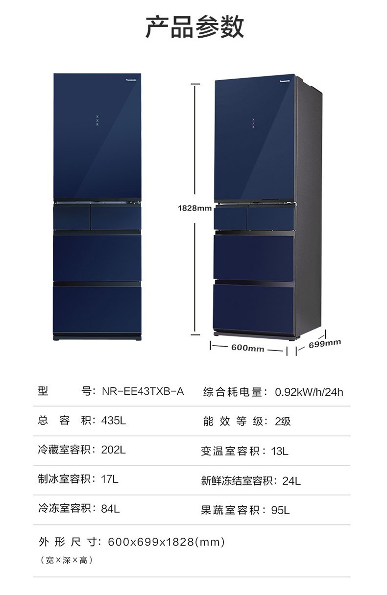 Panasonic (Panasonic) multi-door refrigerator NR-EE43TXB-A air-cooled frost-free frequency conversion automatic ice making Naruyi sterilization, pure flavor, slightly frozen and fresh-keeping 435L tail cargo machine NR-EE43TXB Deep Sea Blue 435L automatic ice making