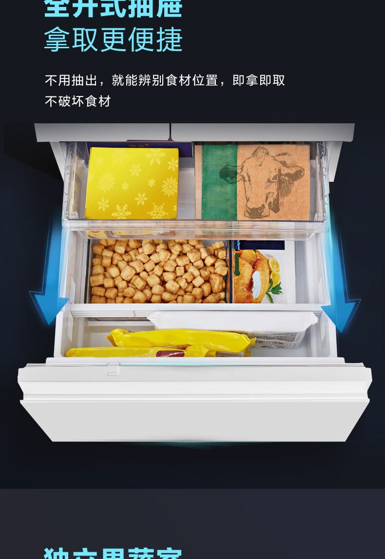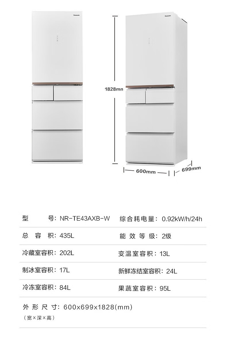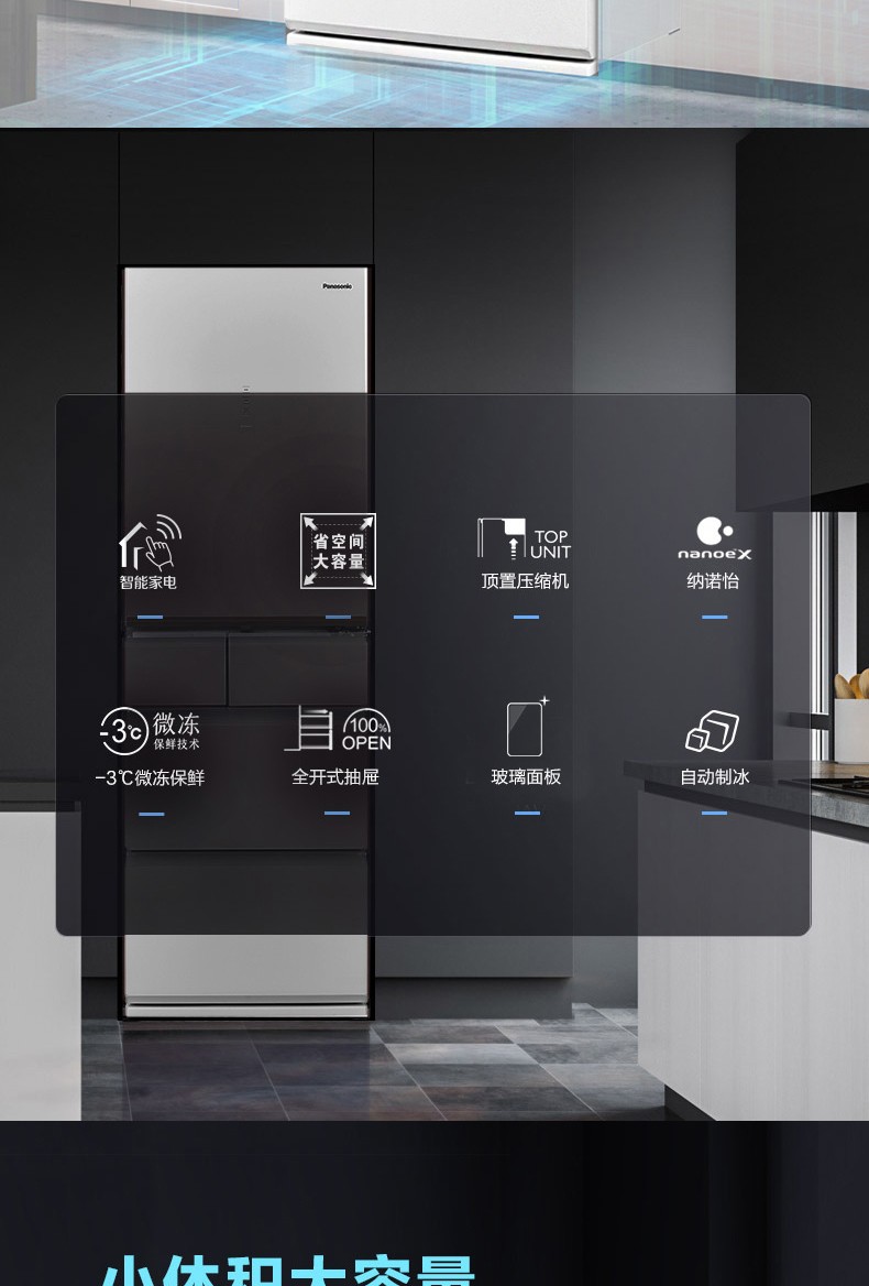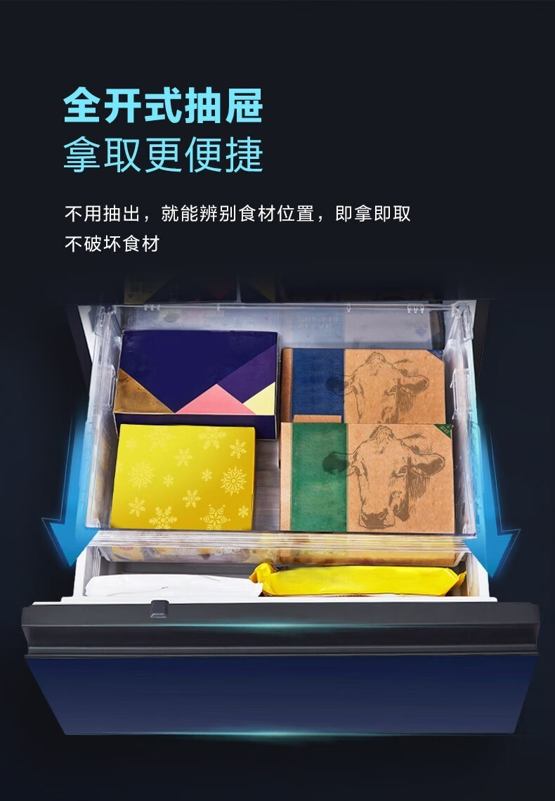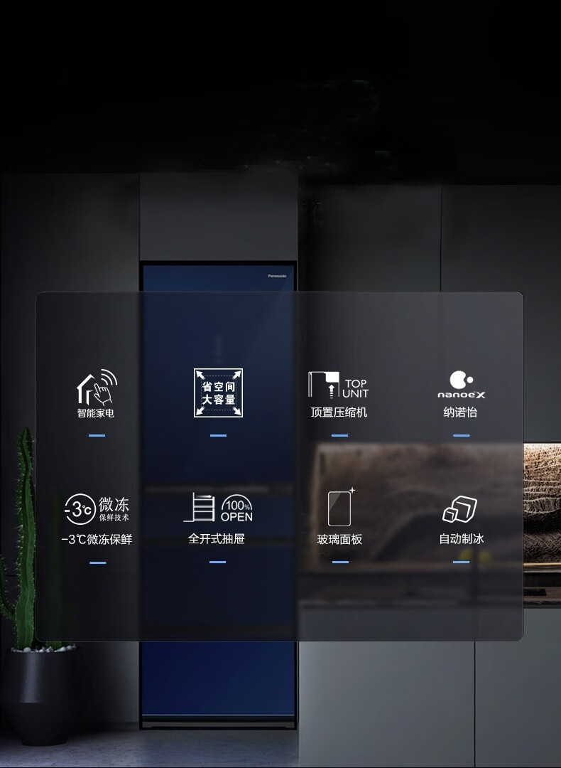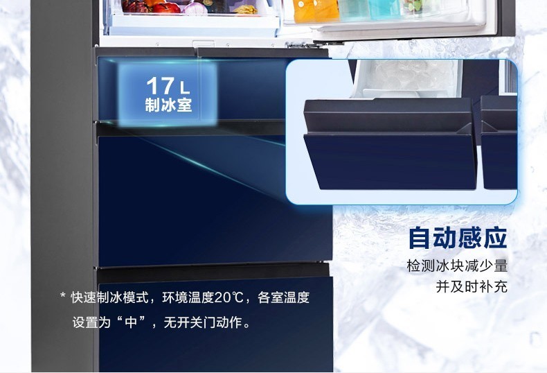 Panasonic (Panasonic) multi-door refrigerator NR-EE43TXB-A air-cooled frost-free frequency conversion automatic ice making Naruyi sterilization, pure flavor, slightly frozen and fresh-keeping 435L tail cargo machine NR-EE43TXB Deep Sea Blue 435L automatic ice making