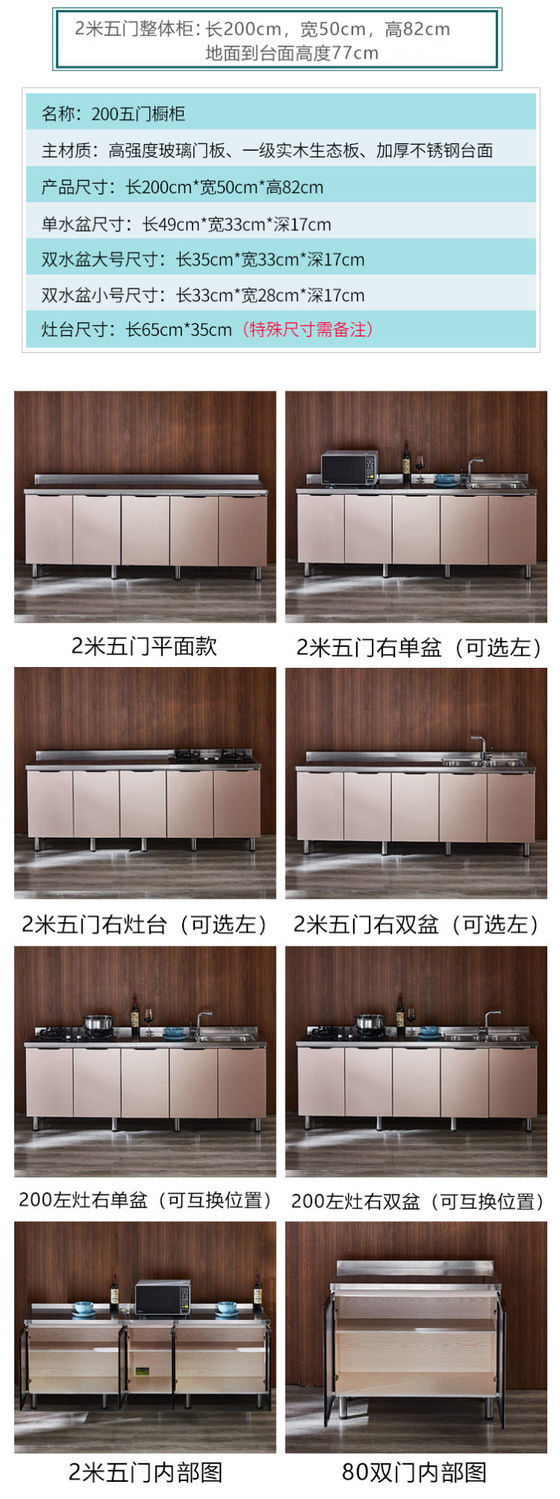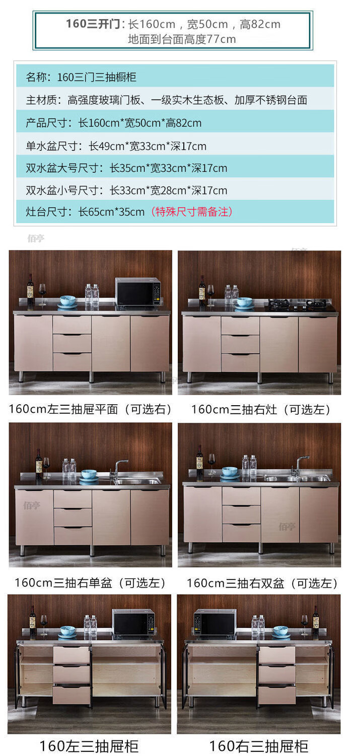 Baiting Baiting new simple cabinet stainless steel kitchen cabinet stove combination cabinet cupboard sink cabinet integrated assembly home custom measurement