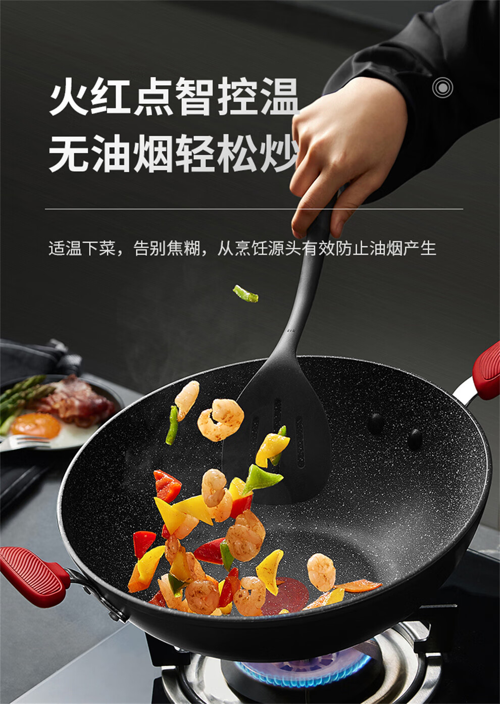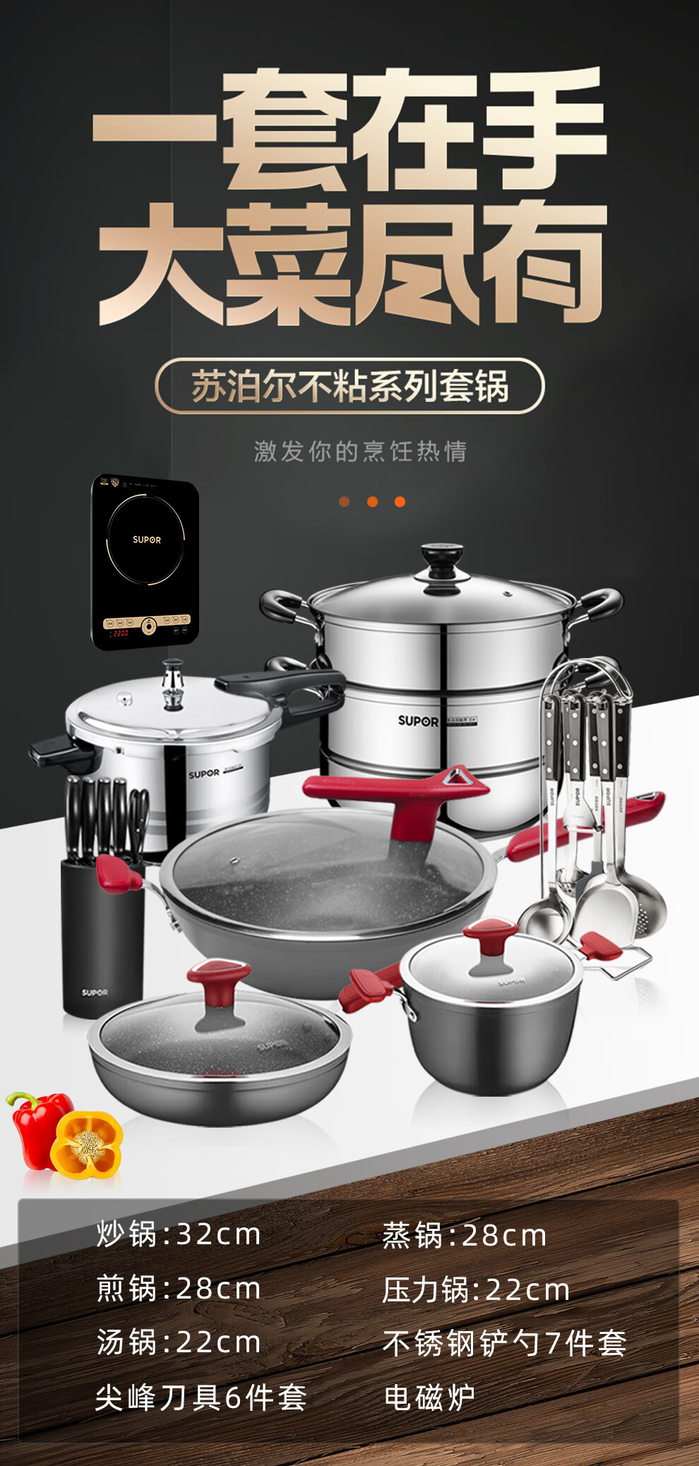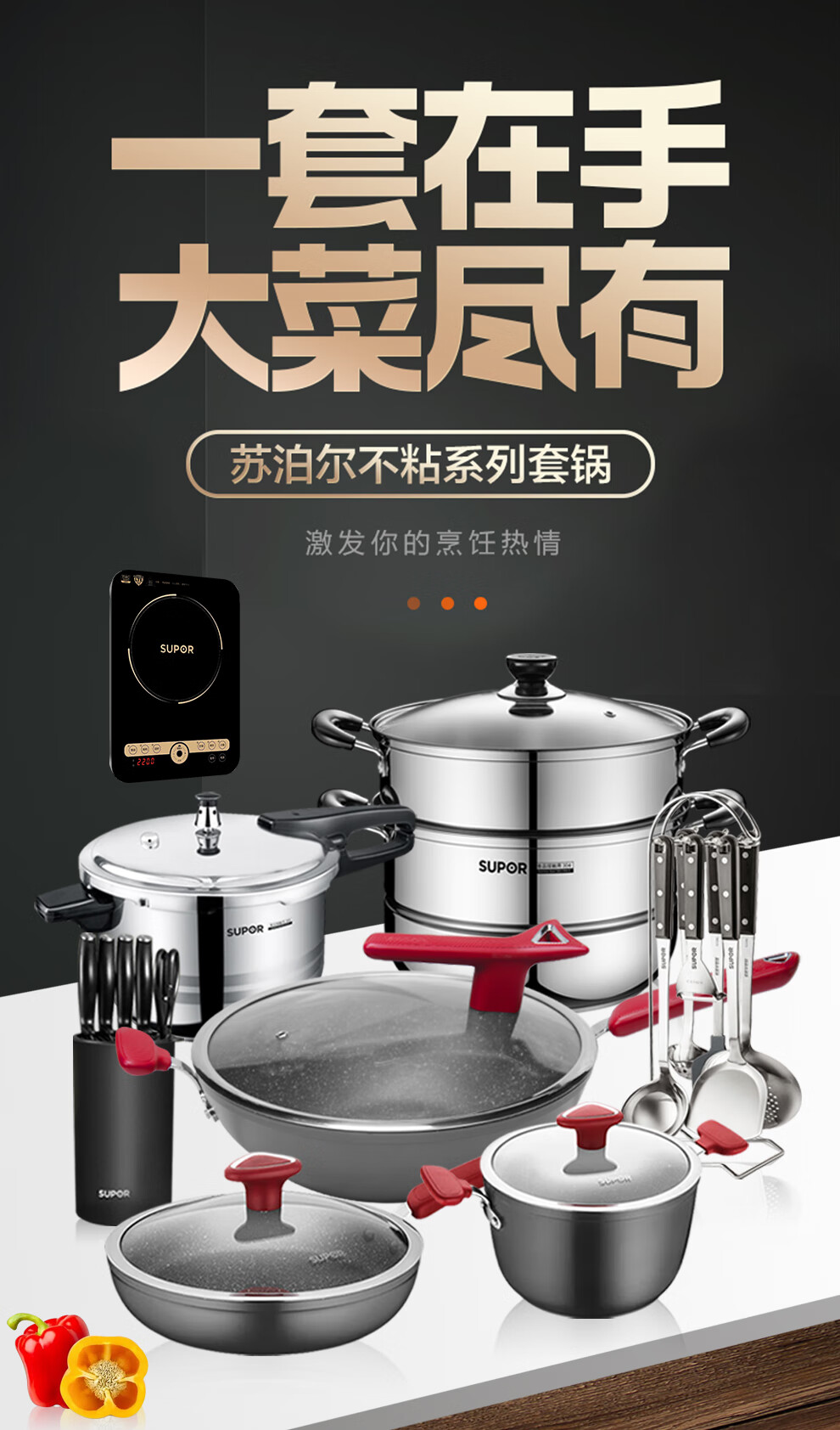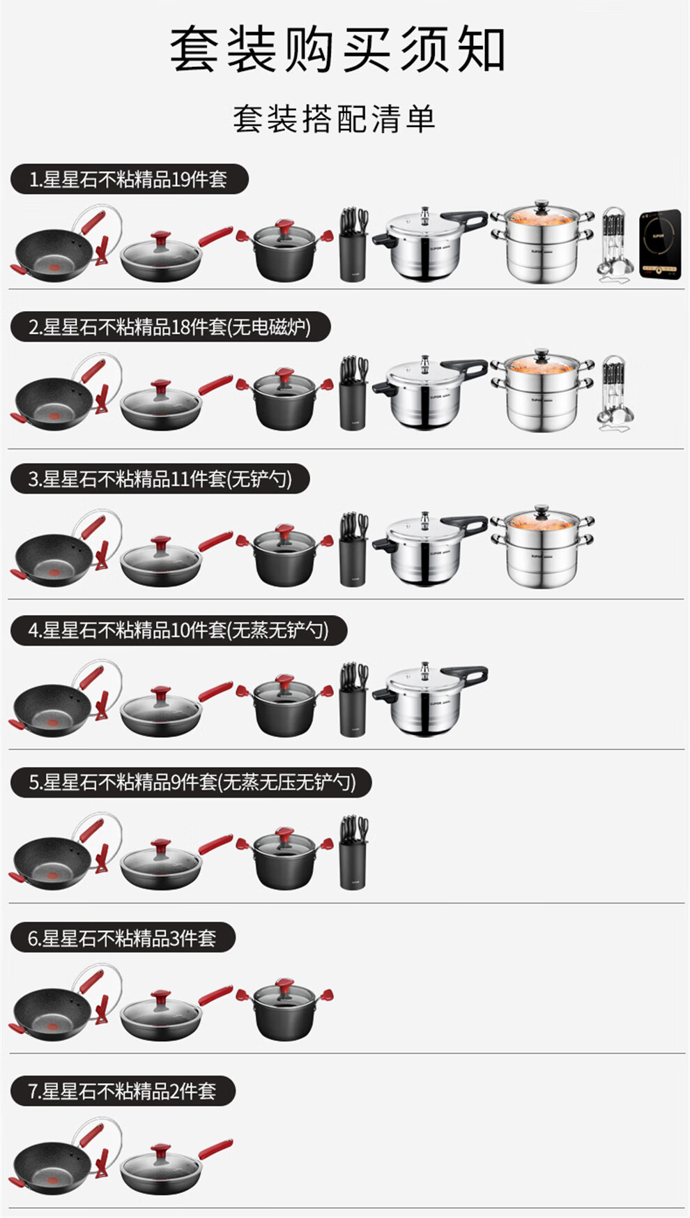 SUPOR pot set kitchenware non-stick pot set wok set medical stone color full set pot induction cooker gas universal fire red dot star stone series pot set 19 pieces
