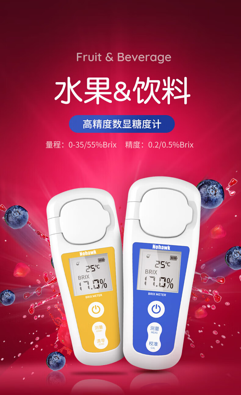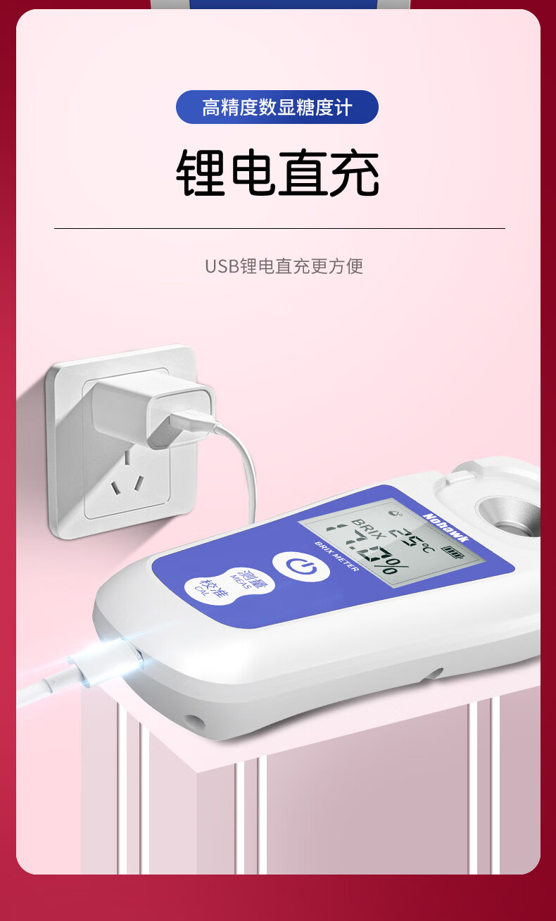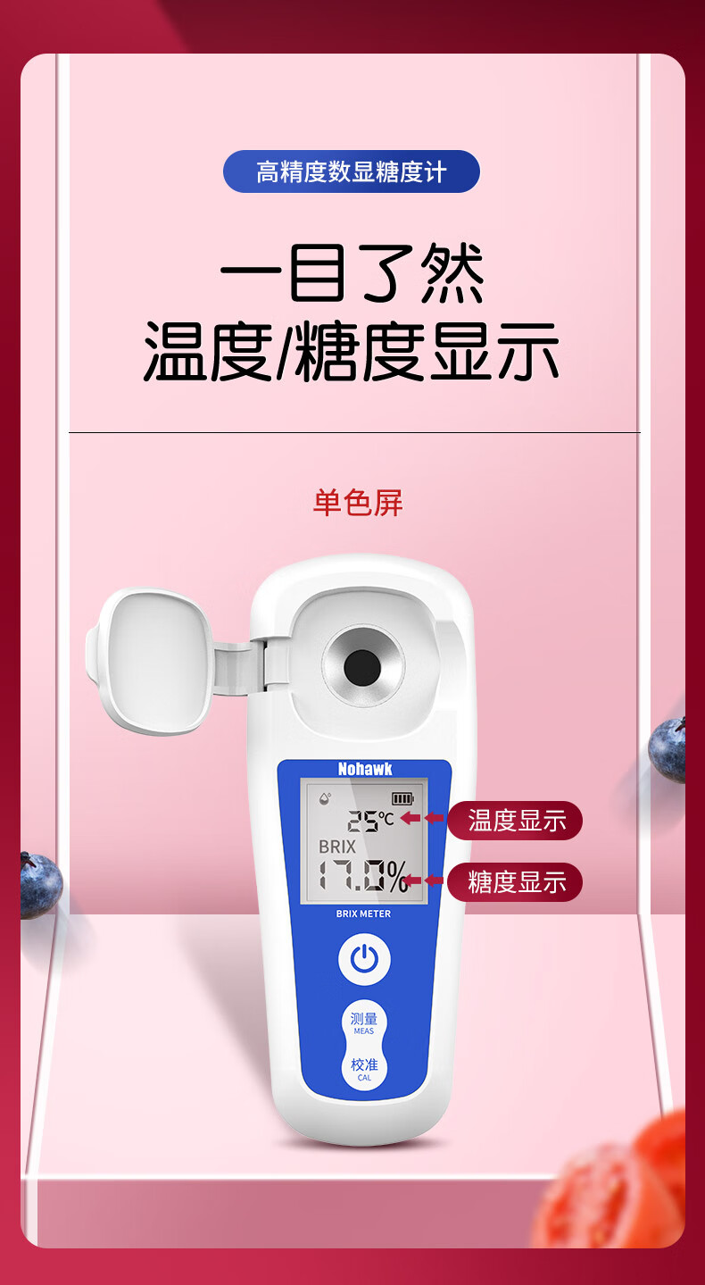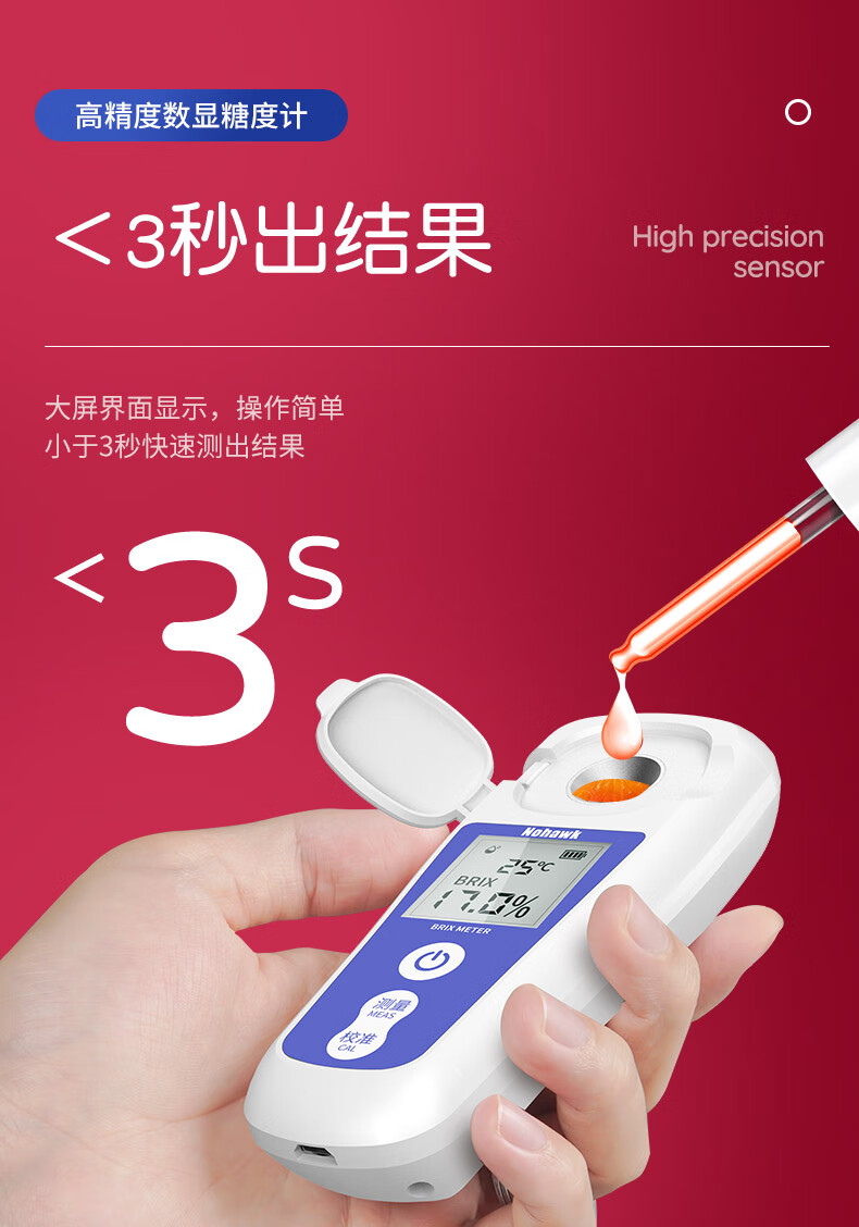 Nowawk sugar meter fruit sugar meter high-precision sweetness meter refractometer sugar content refractometer sugar tester BM04 digital display lithium battery model 0-35% accuracy 0.2%