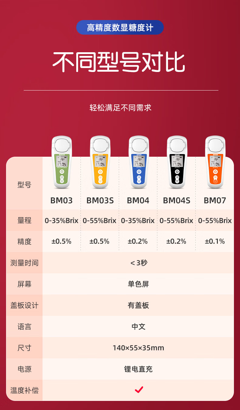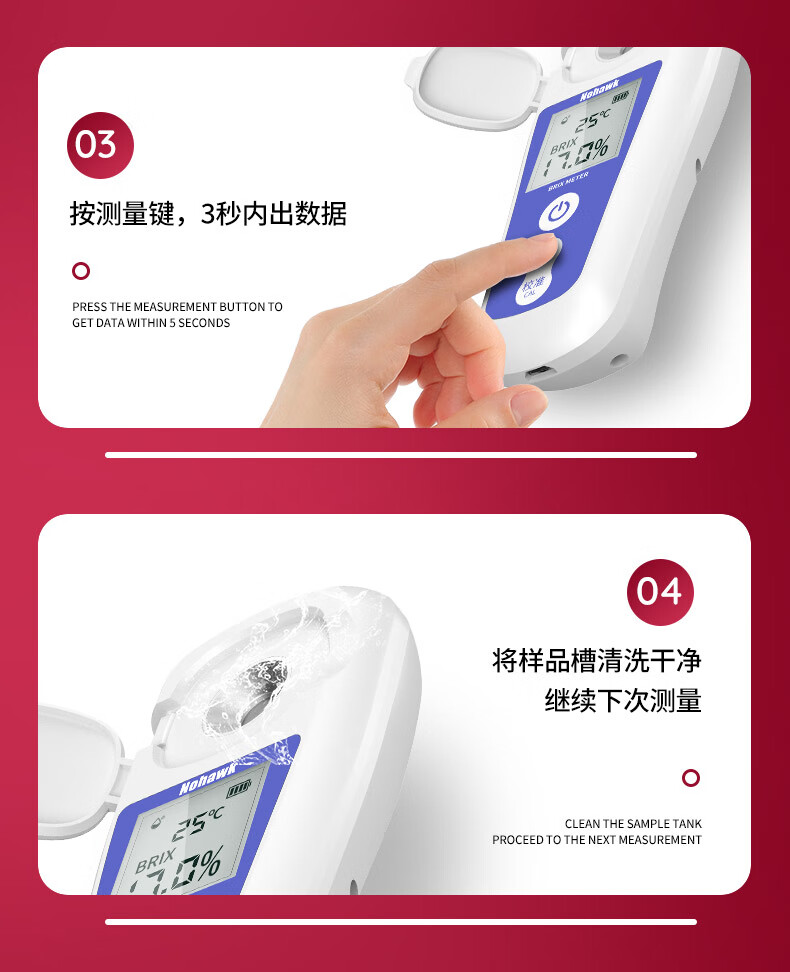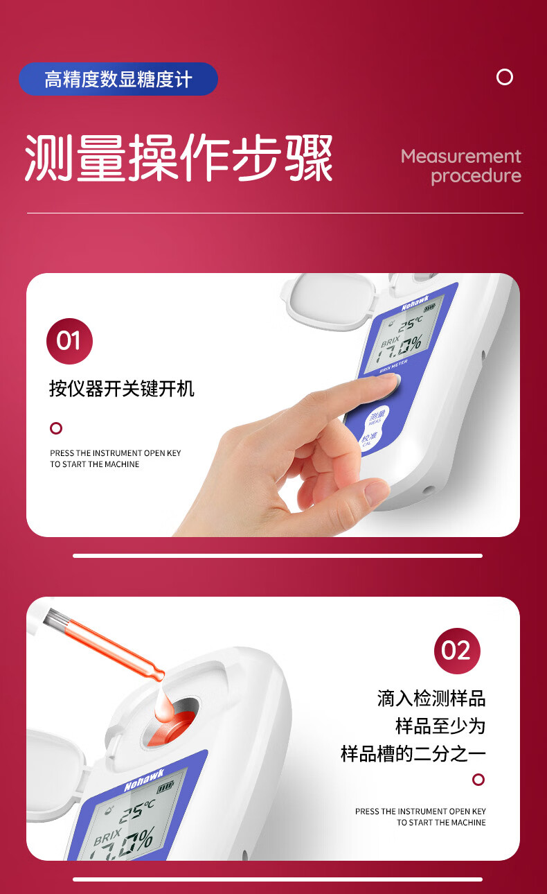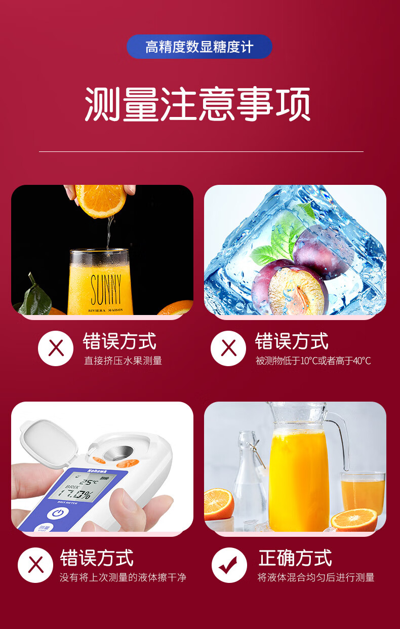 Nowawk sugar meter fruit sugar meter high-precision sweetness meter refractometer sugar content refractometer sugar tester BM04 digital display lithium battery model 0-35% accuracy 0.2%