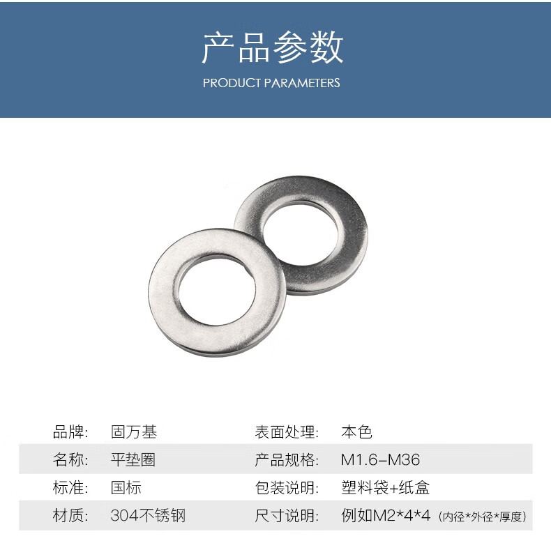 Guwanji 304 stainless steel metal gasket round flat washer ultra-thin flat washer retaining ring enlarged washer meson washer national standard M4x12x1 100 pieces