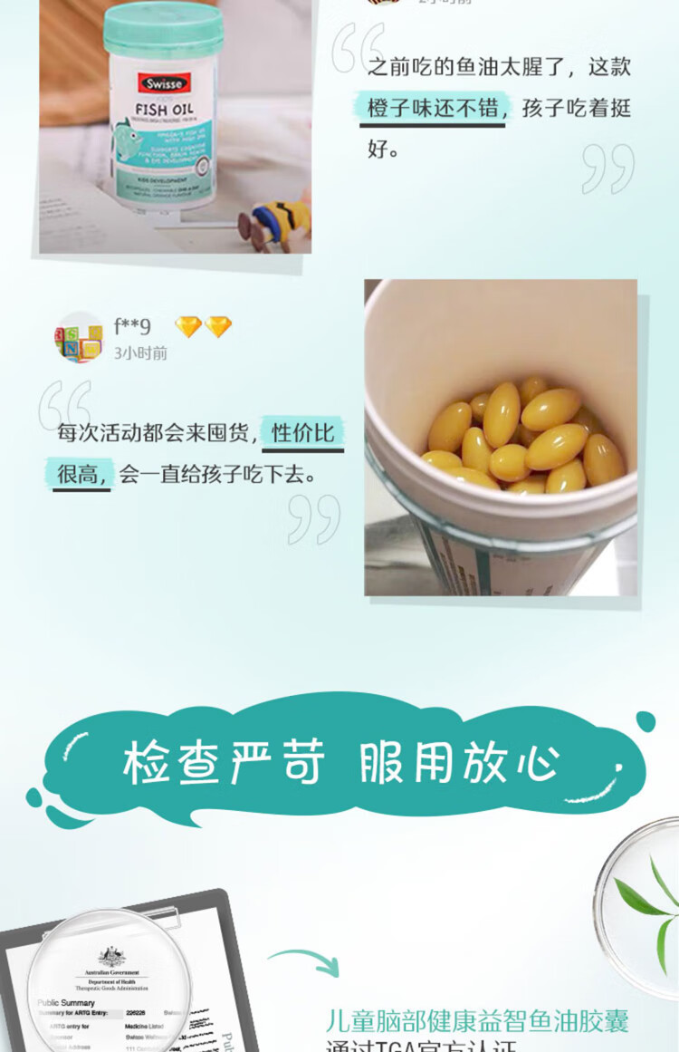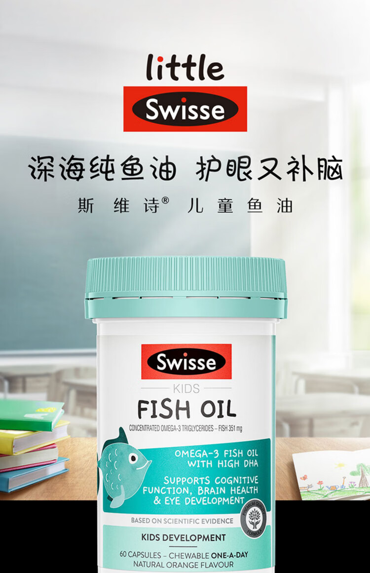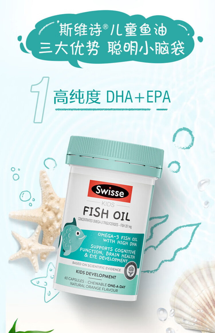 Swisse children's dha fish oil infants and toddlers 1-3 years old dha children 3-6-12 years old enhances memory and concentration 6-12 years old dha children 3-12 years old children enhances memory 60 capsules * 1 bottle
