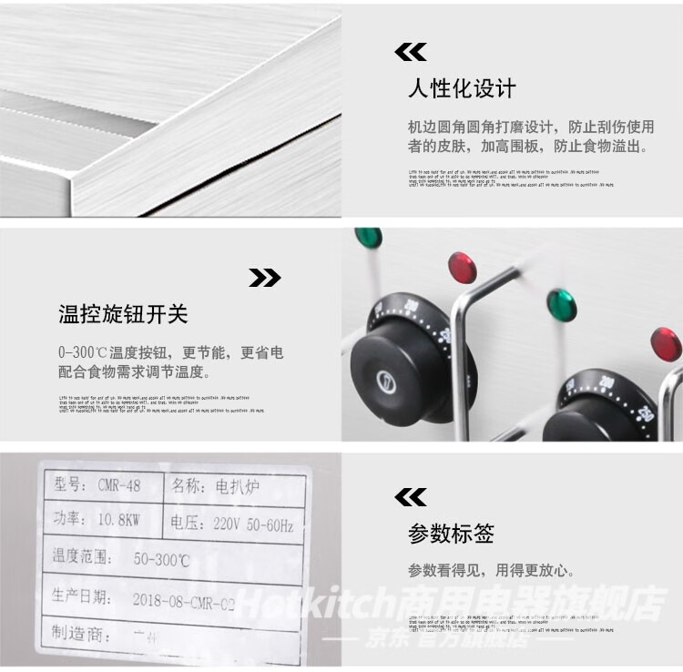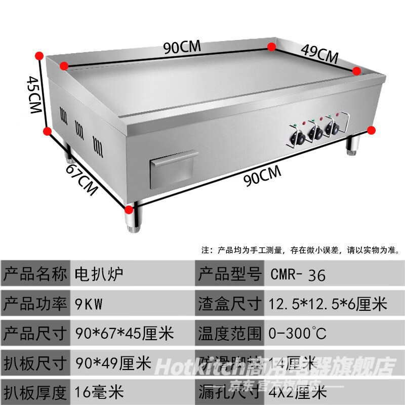 Hotkitch electric griddle commercial large hand cake machine desktop steak frying machine Teppanyaki squid grilled cold noodles Dorayaki thickened gas griddle stall snack equipment customized 0.9-meter mirror chrome-plated gas griddle