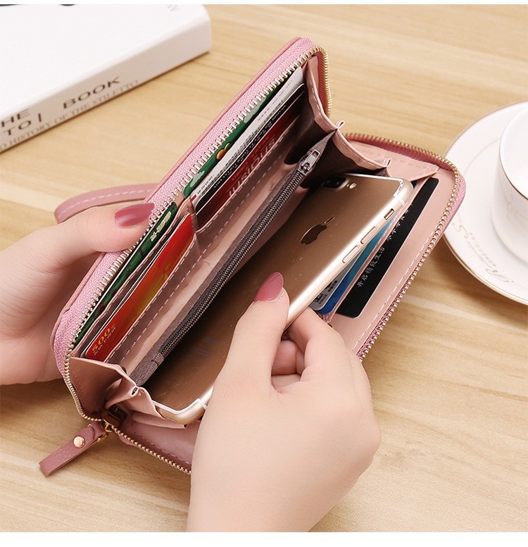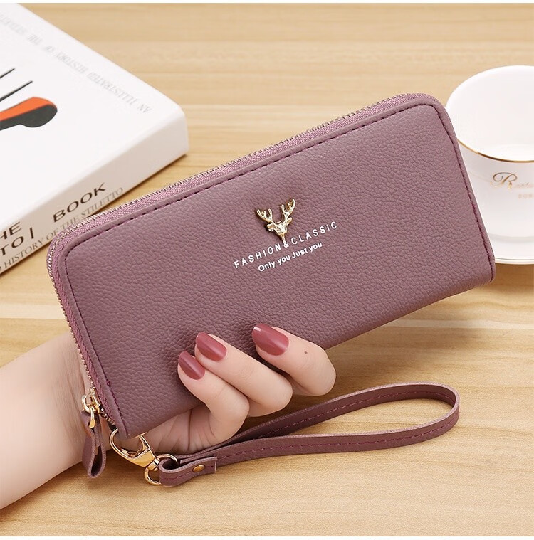 Weiltili long wallet for women 2024 new Japanese and Korean large capacity mobile phone wallet buckle waist crossbody casual clutch bag 3664 taro purple