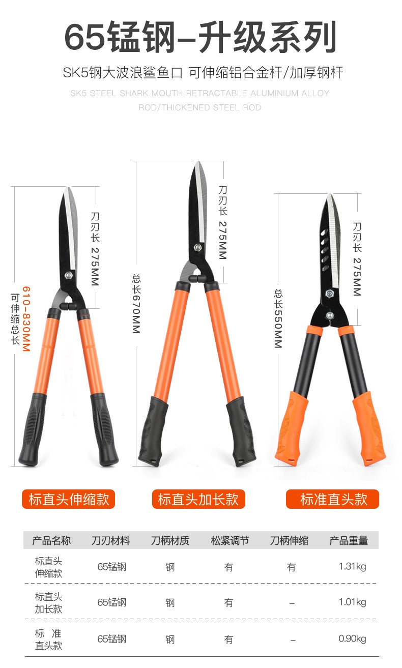 Bobenjia gardening scissors, garden flower shears, pruning shears, special hedge shears for lawn trimming, powerful branch trimming tool - black reinforced telescopic type