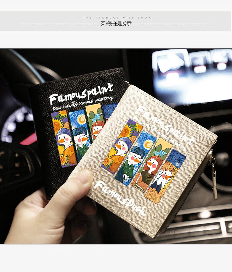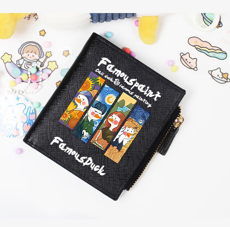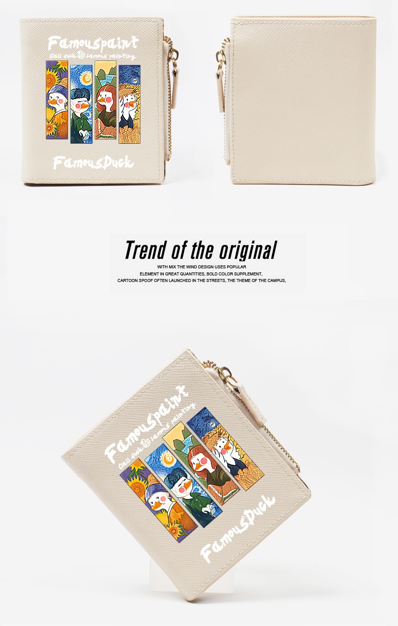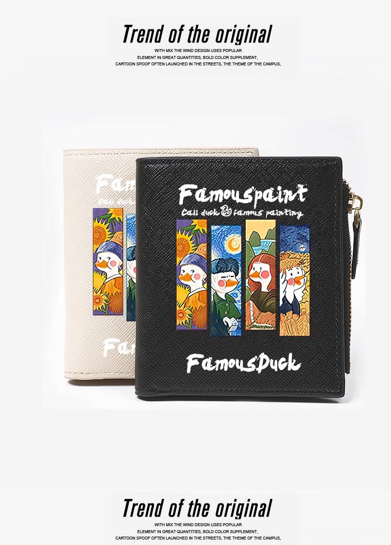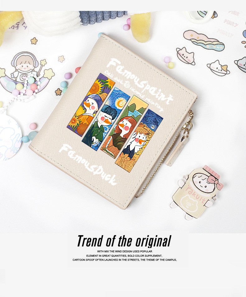 Flo Cat, world-famous paintings co-branded little duck, cute cartoon teen student wallet, girls short thin section with multiple card slots, casual Japanese Korean version, ins internet celebrity style niche design, off-white, 4 famous paintings in the world, DUCK