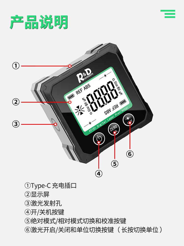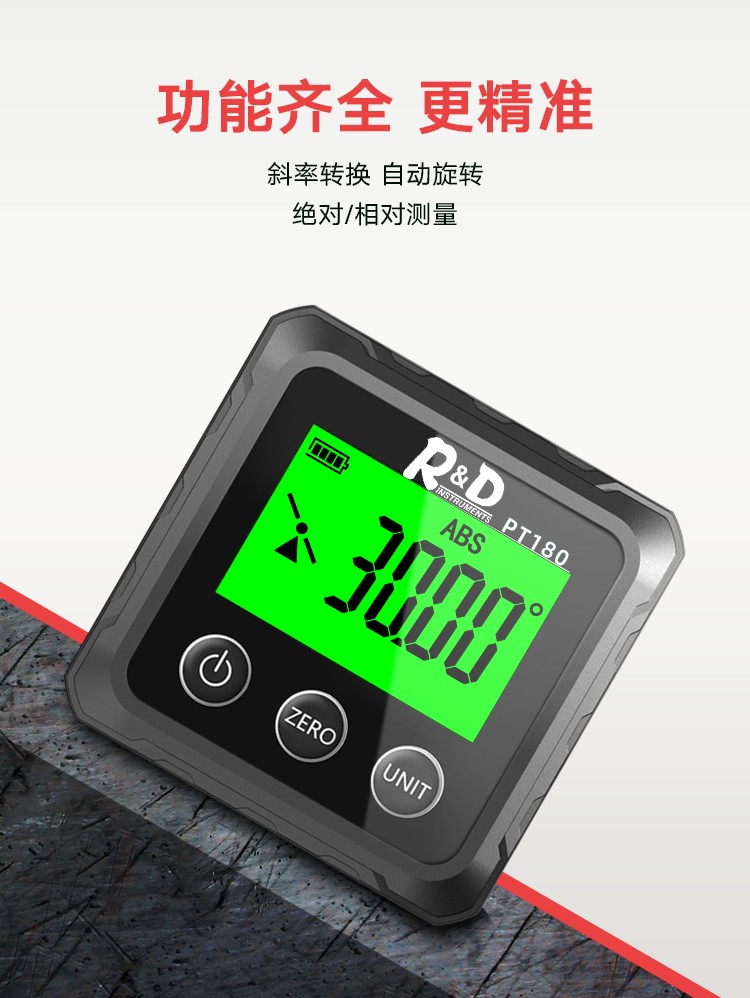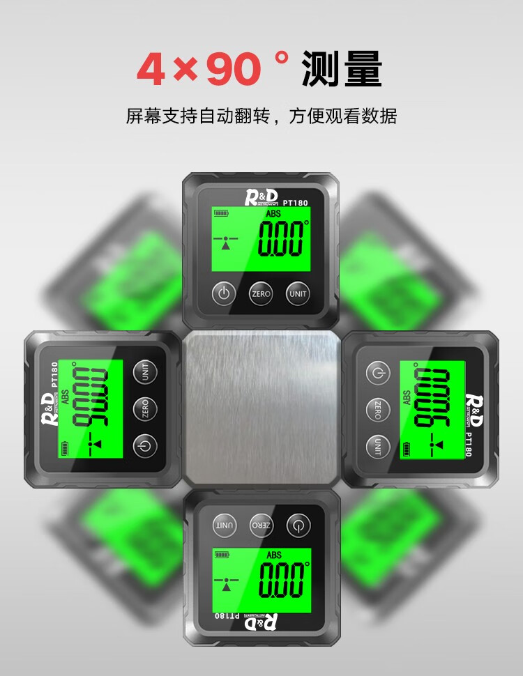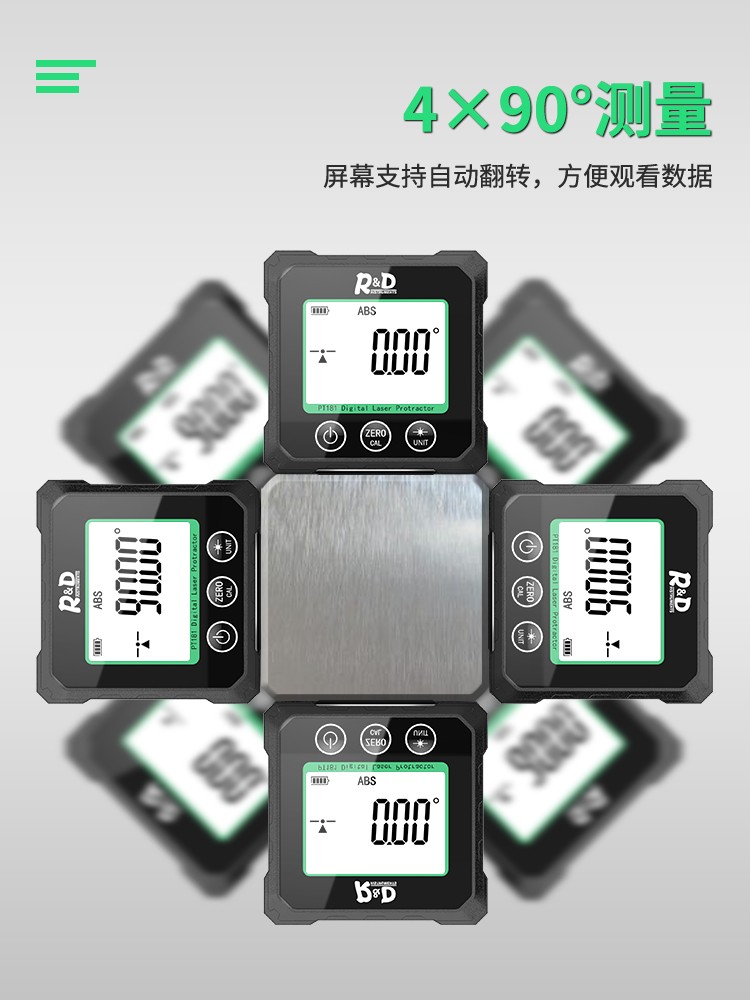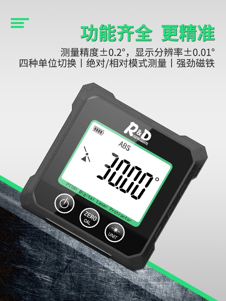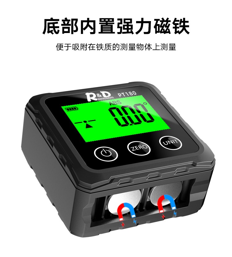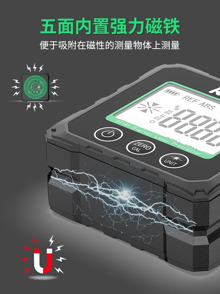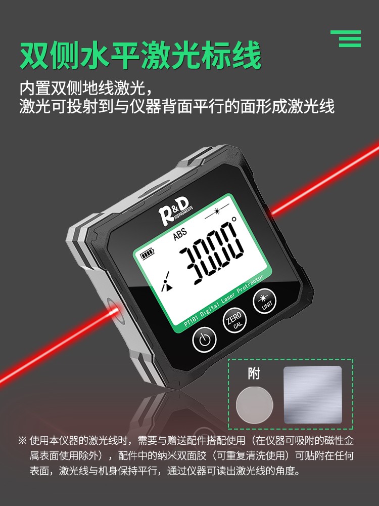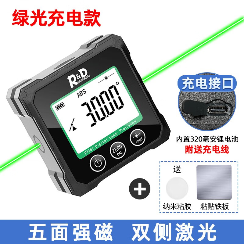 INSTRUMENTS R&D Laser Angle Meter Digital Display Inclinometer Five-sided Magnet High-Precision Multi-Function Angle Slope Measurement Level PT181-Red Laser-USB Charging