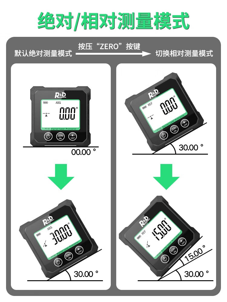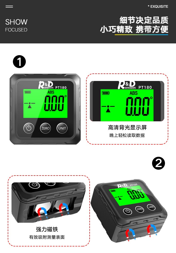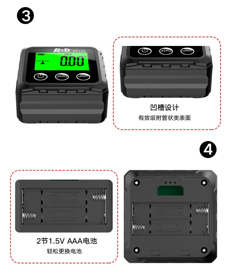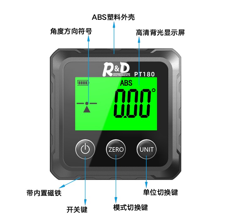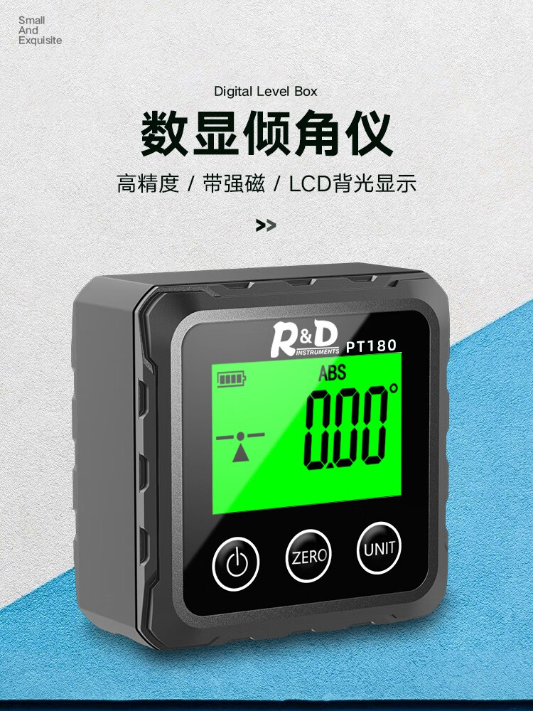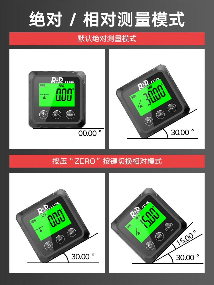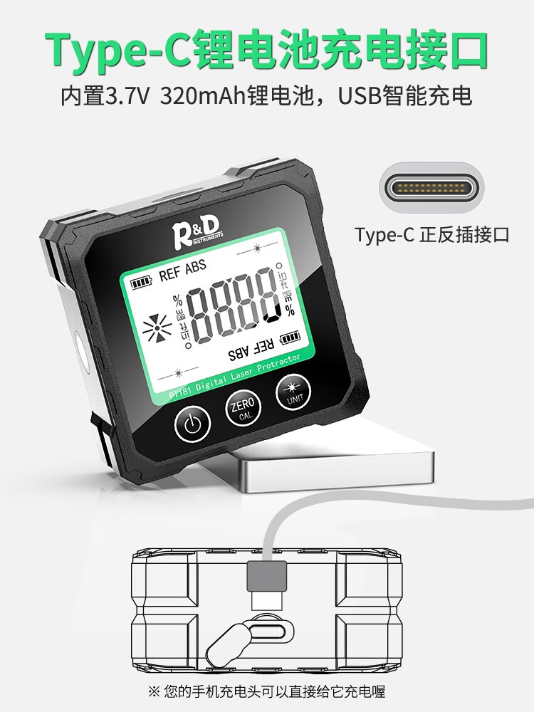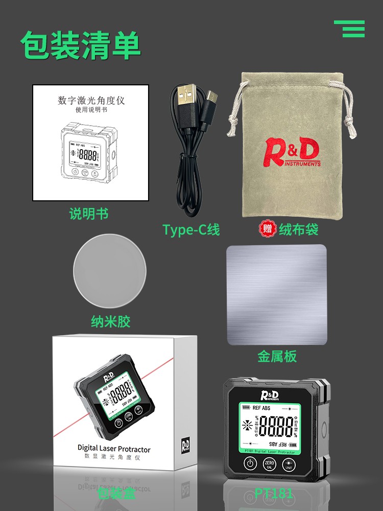 INSTRUMENTS R&D Laser Angle Meter Digital Display Inclinometer Five-sided Magnet High-Precision Multi-Function Angle Slope Measurement Level PT181-Red Laser-USB Charging