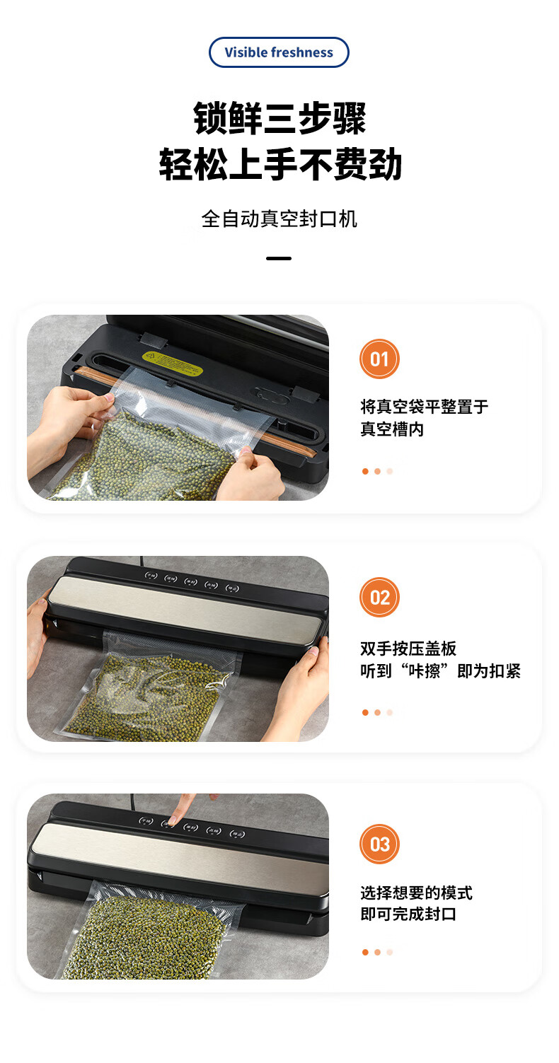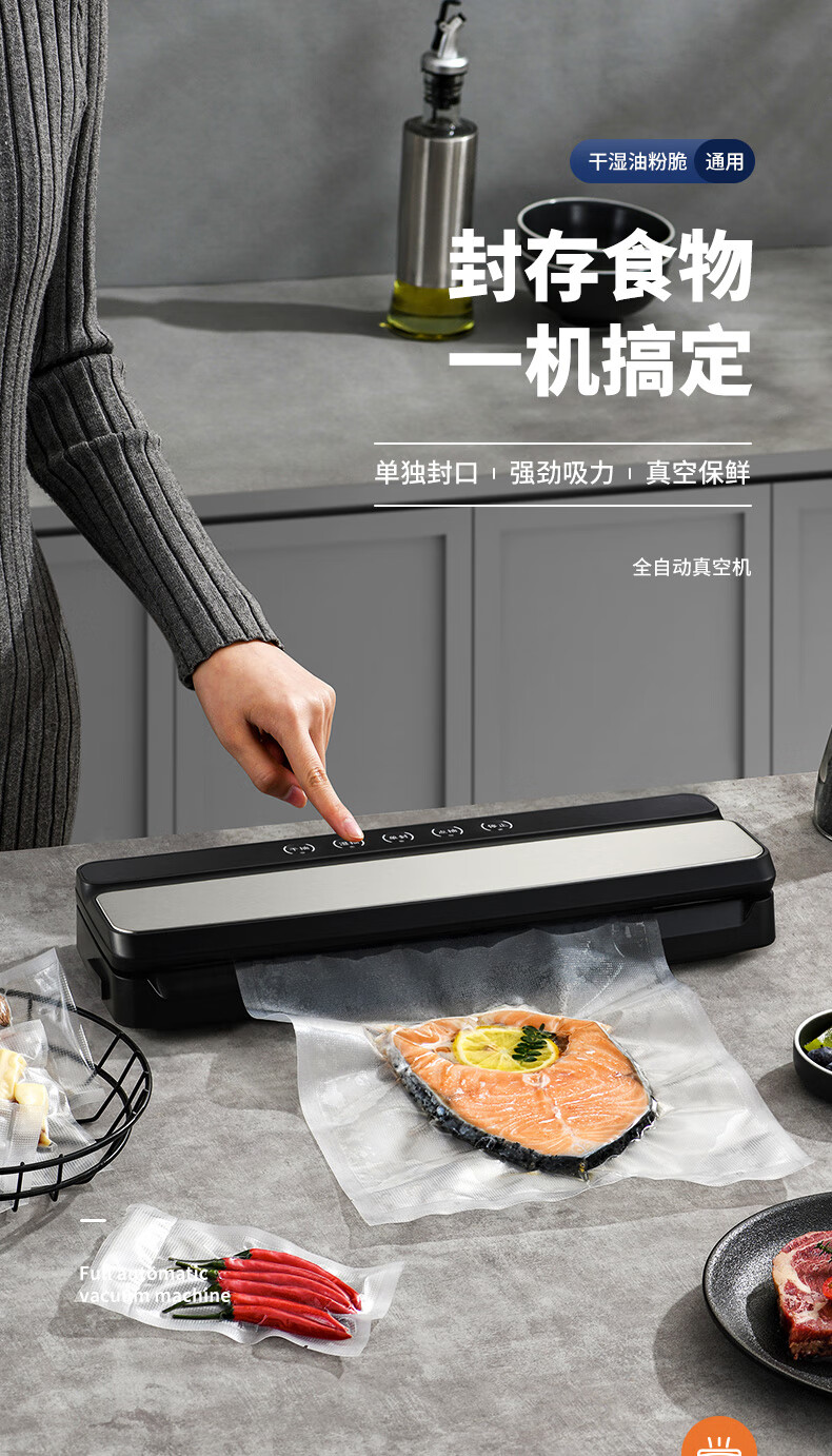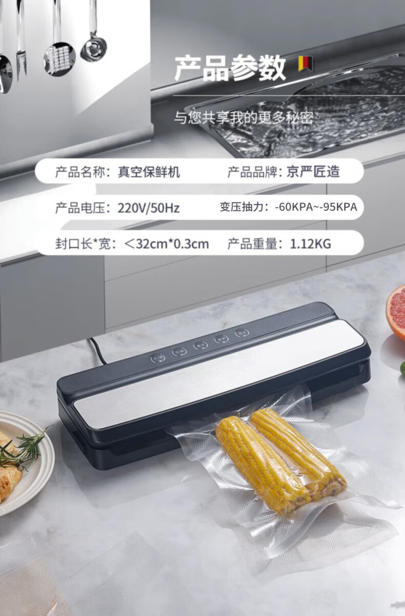 Jingyan vacuum sealing machine vacuum packaging machine household plastic sealing machine food vacuum packaging machine commercial fully automatic vacuum machine wet and dry high suction sealing machine vacuum luxury model powerful commercial grade high suction black