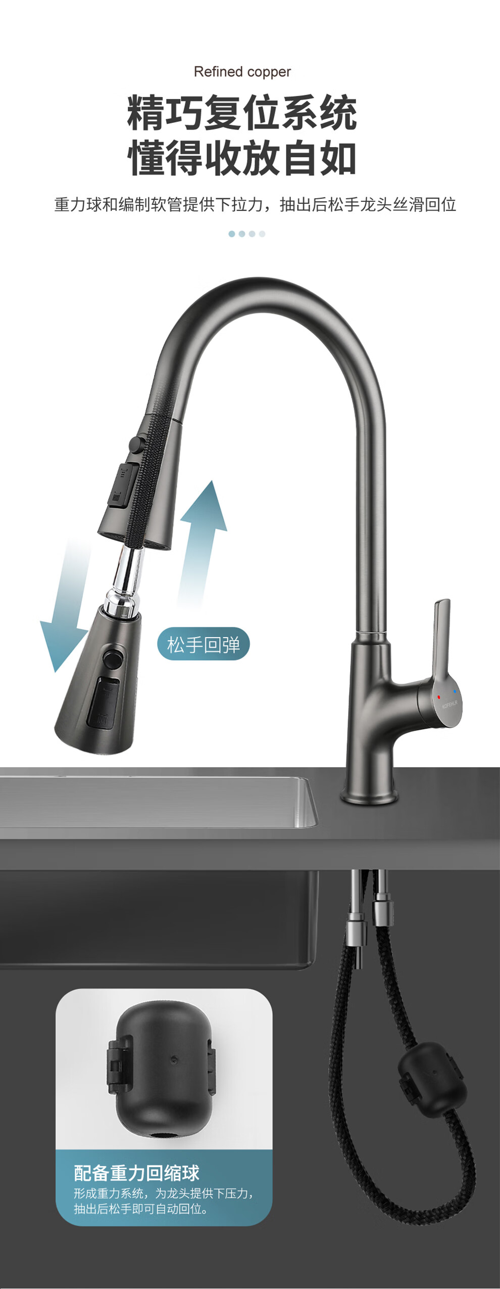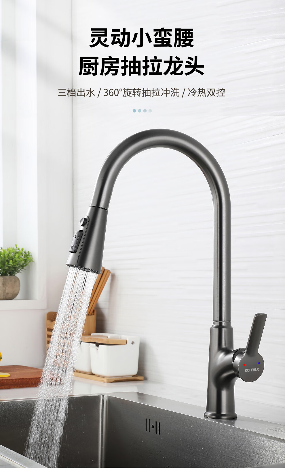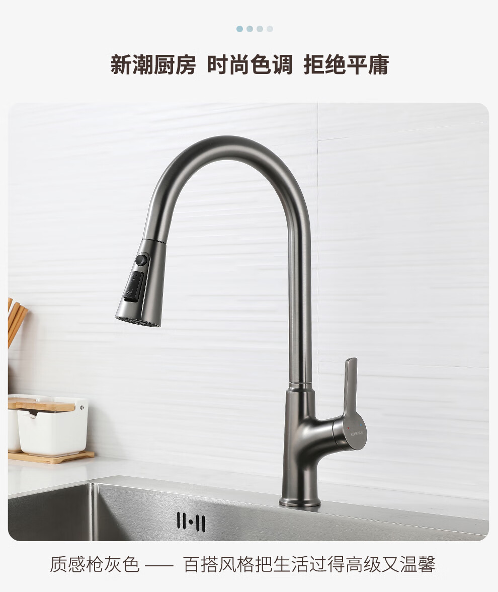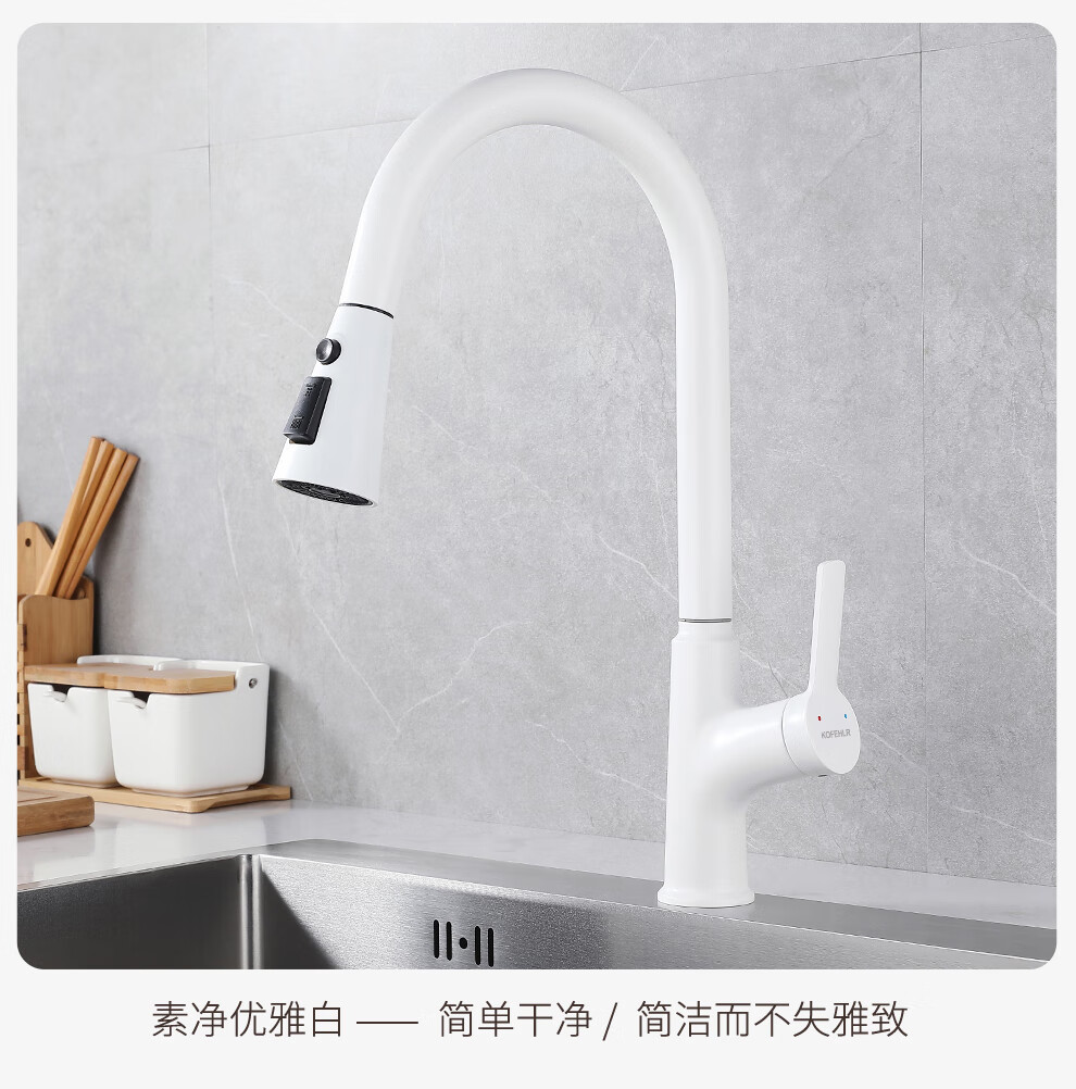 KOFEHLR kitchen faucet white multi-function 360-degree rotating pull-out faucet sink dish basin hot and cold faucet gun gray kitchen pull-out hot and cold faucet