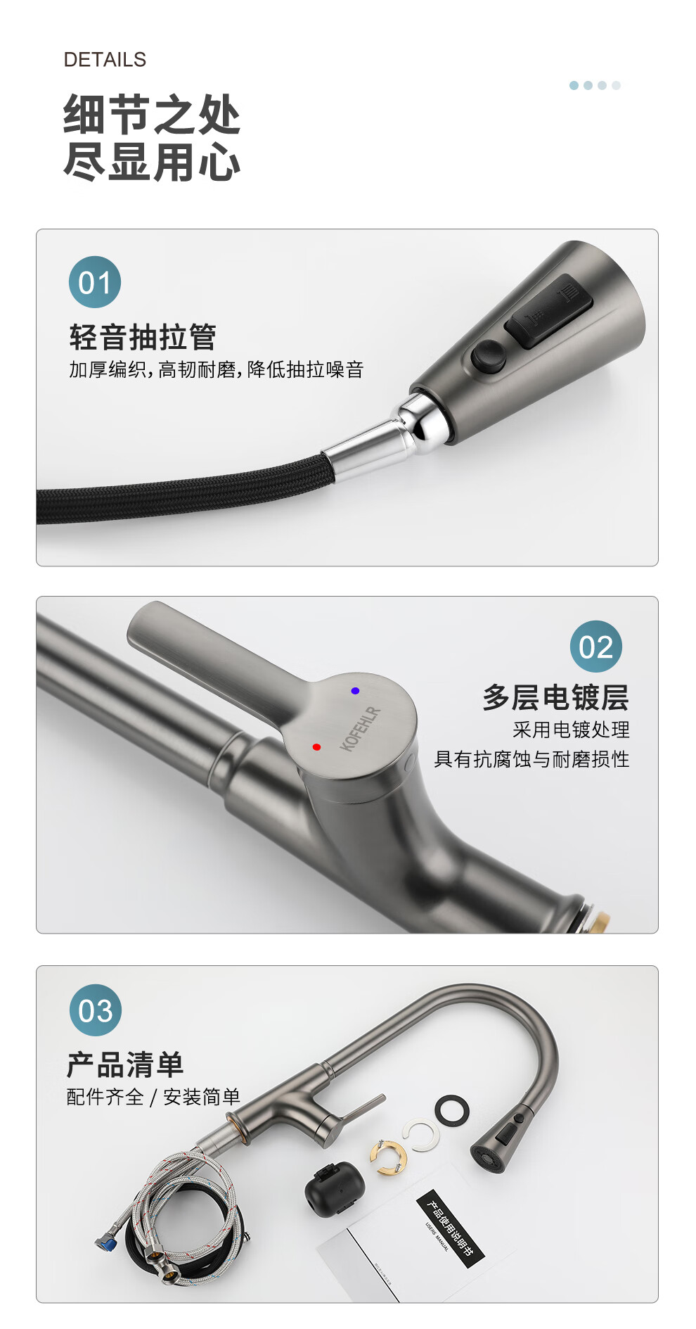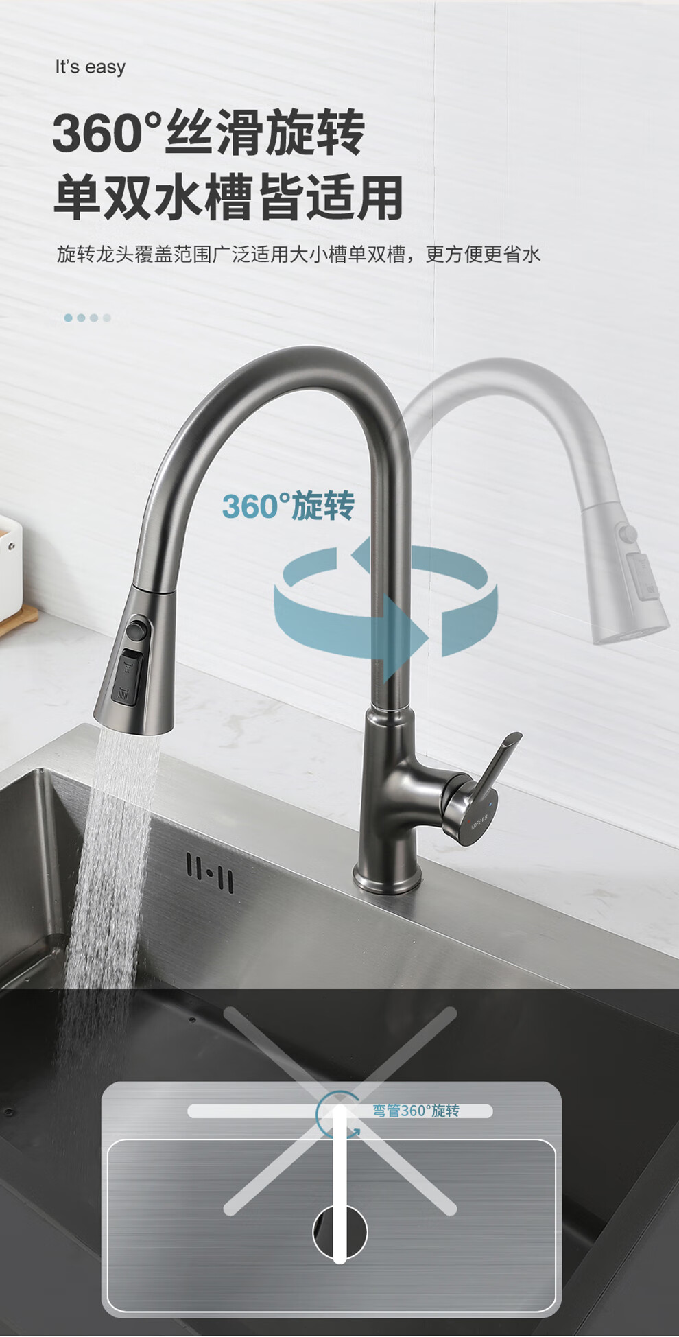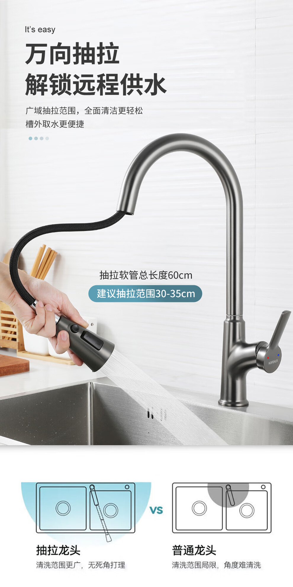 KOFEHLR kitchen faucet white multi-function 360-degree rotating pull-out faucet sink dish basin hot and cold faucet gun gray kitchen pull-out hot and cold faucet