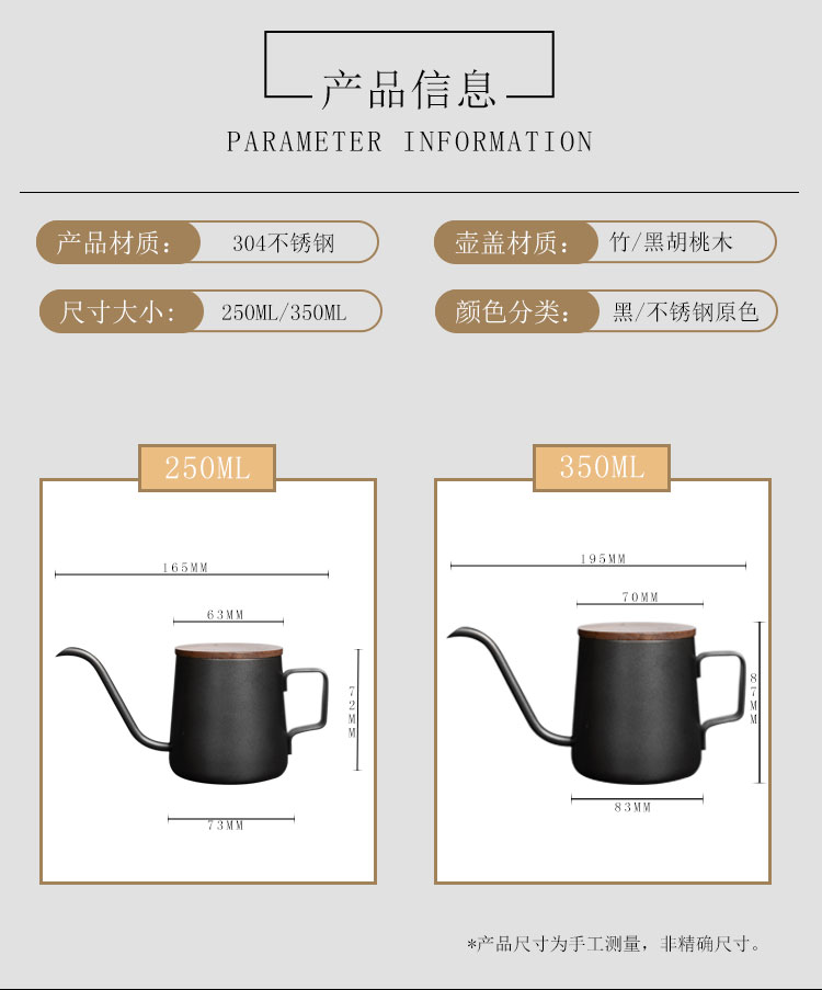 Yeweika hand-brewed coffee pot 304 stainless steel household hanging ear coffee small mini hand-brewed pot thin mouth long mouth kettle 250ml mirror light hanging ear pot