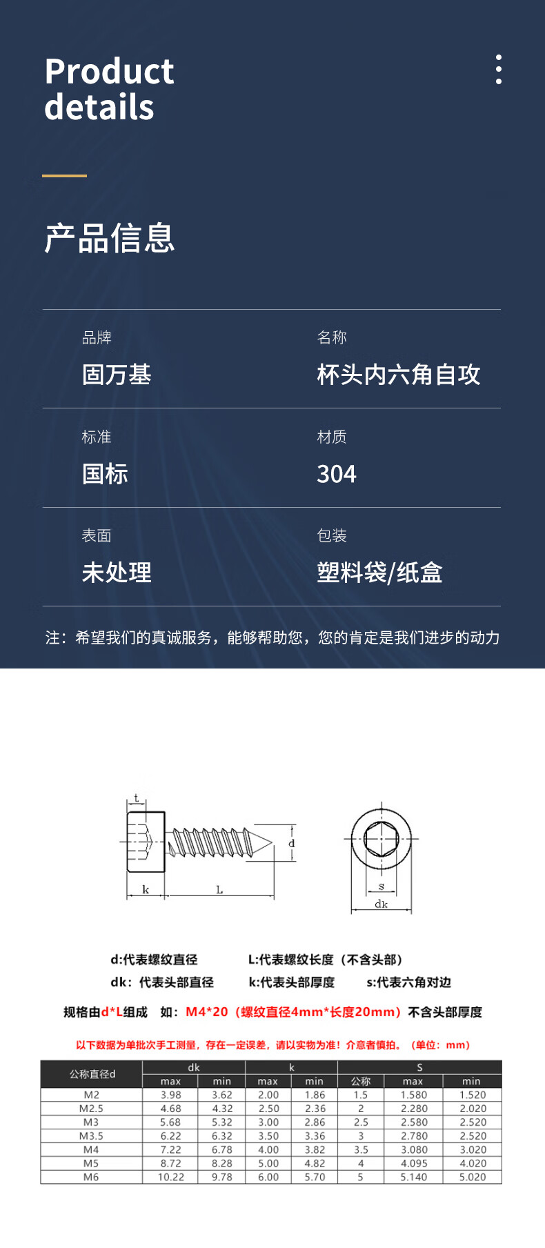 Guwanji 304 stainless steel hexagonal self-tapping screws HA speaker speaker cup head and tail screws audio self-tapping screws M2.5x6 100 pieces
