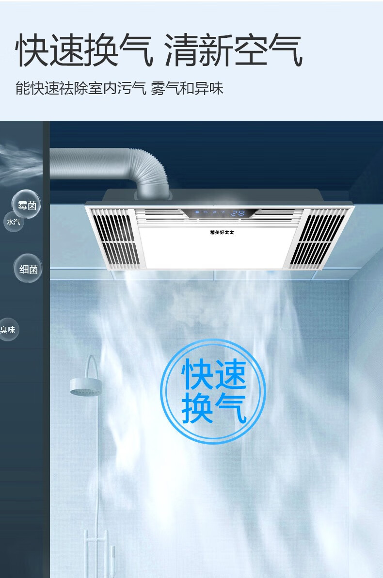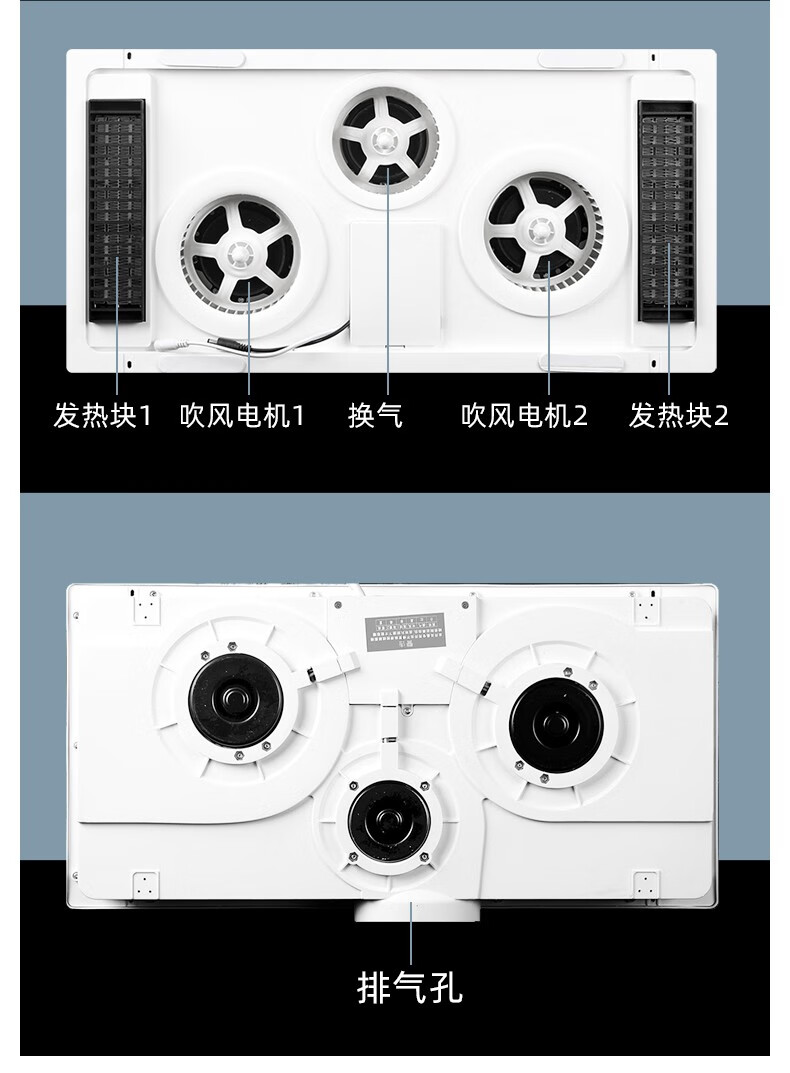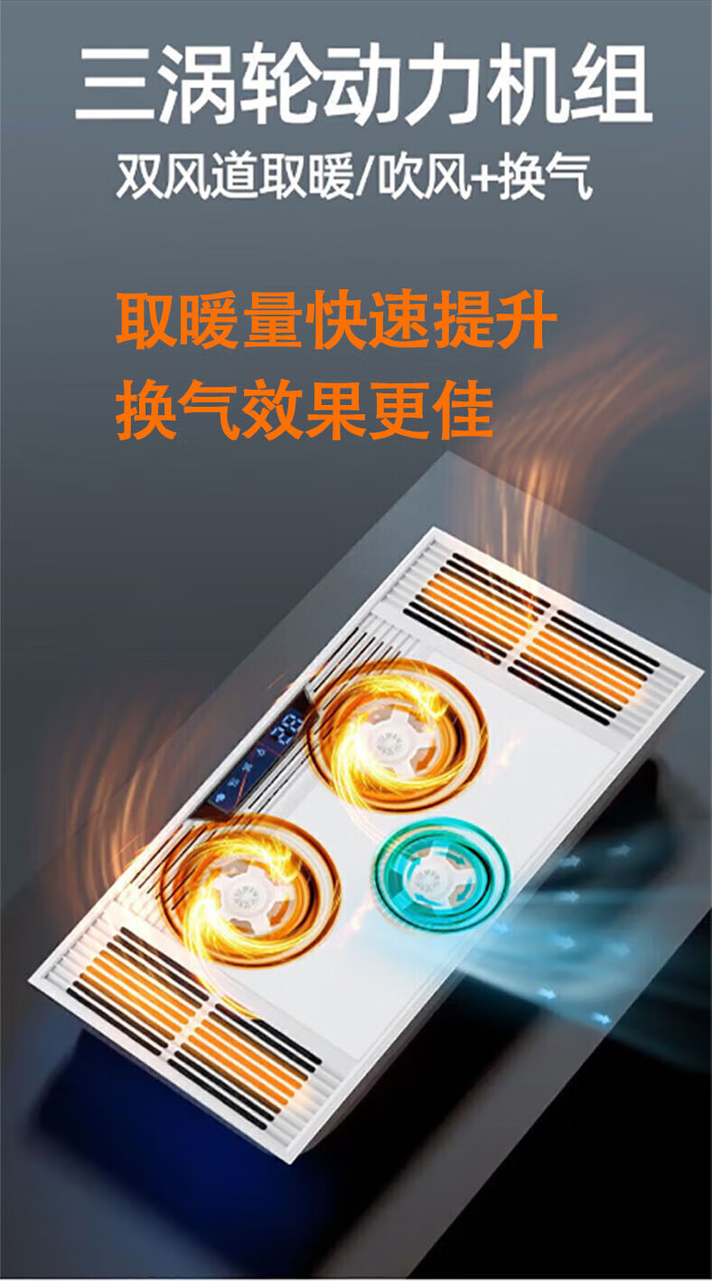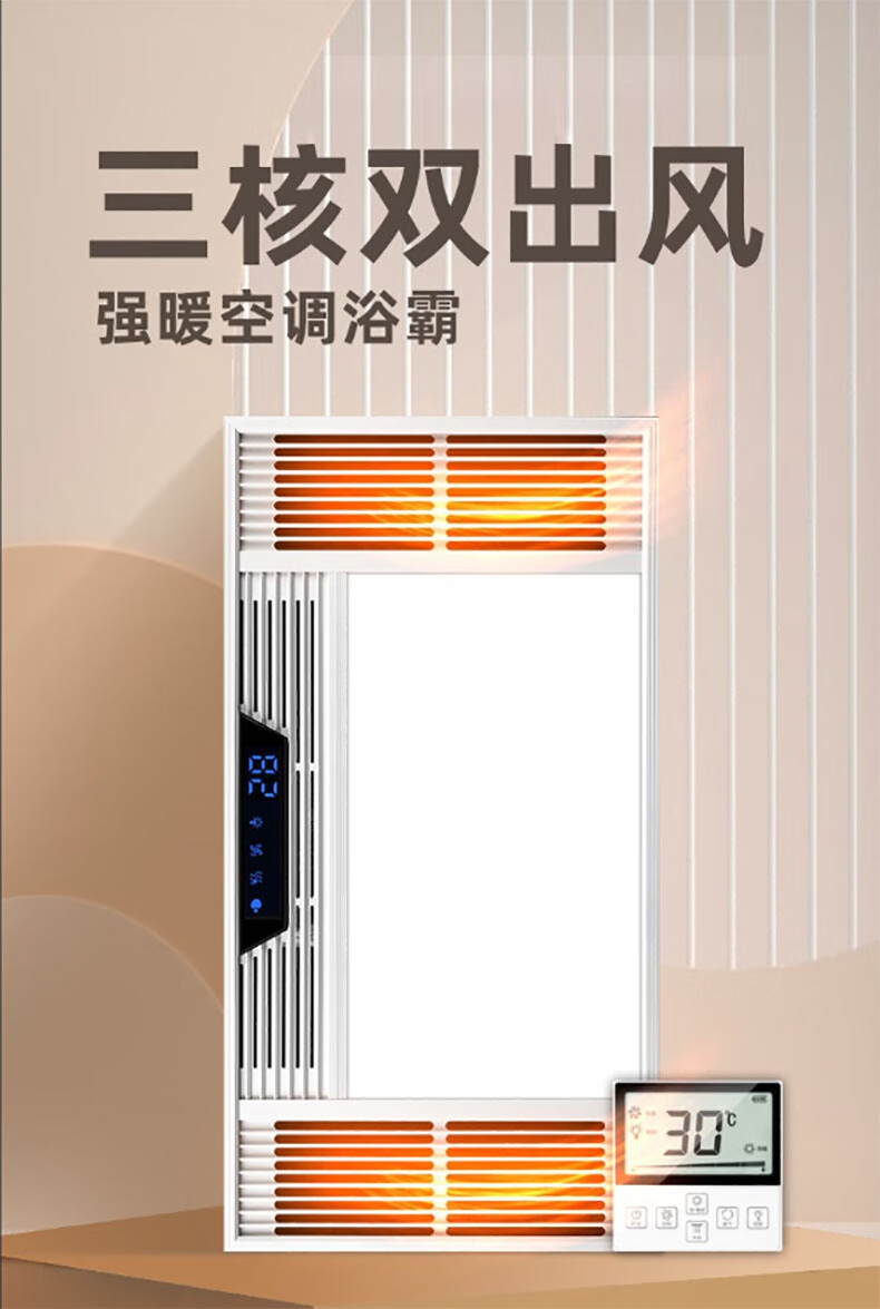 Exquisite Good Wife Bath Heater Integrated Ceiling Triple Core Dual Air Heating Triple Motor LED Light Exhaust Fan Lighting All-in-One Multi-Function Five-in-One Fashion White-Piano Key Switch Aluminum Alloy Panel