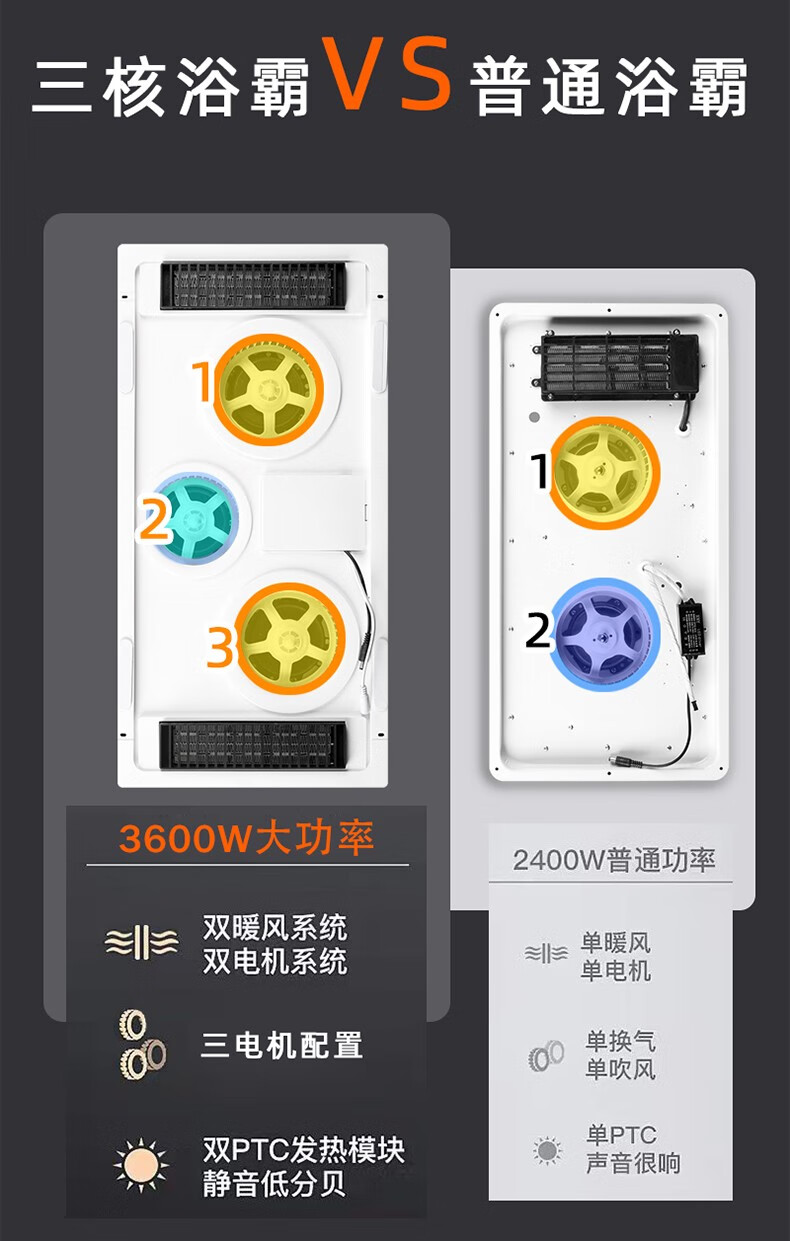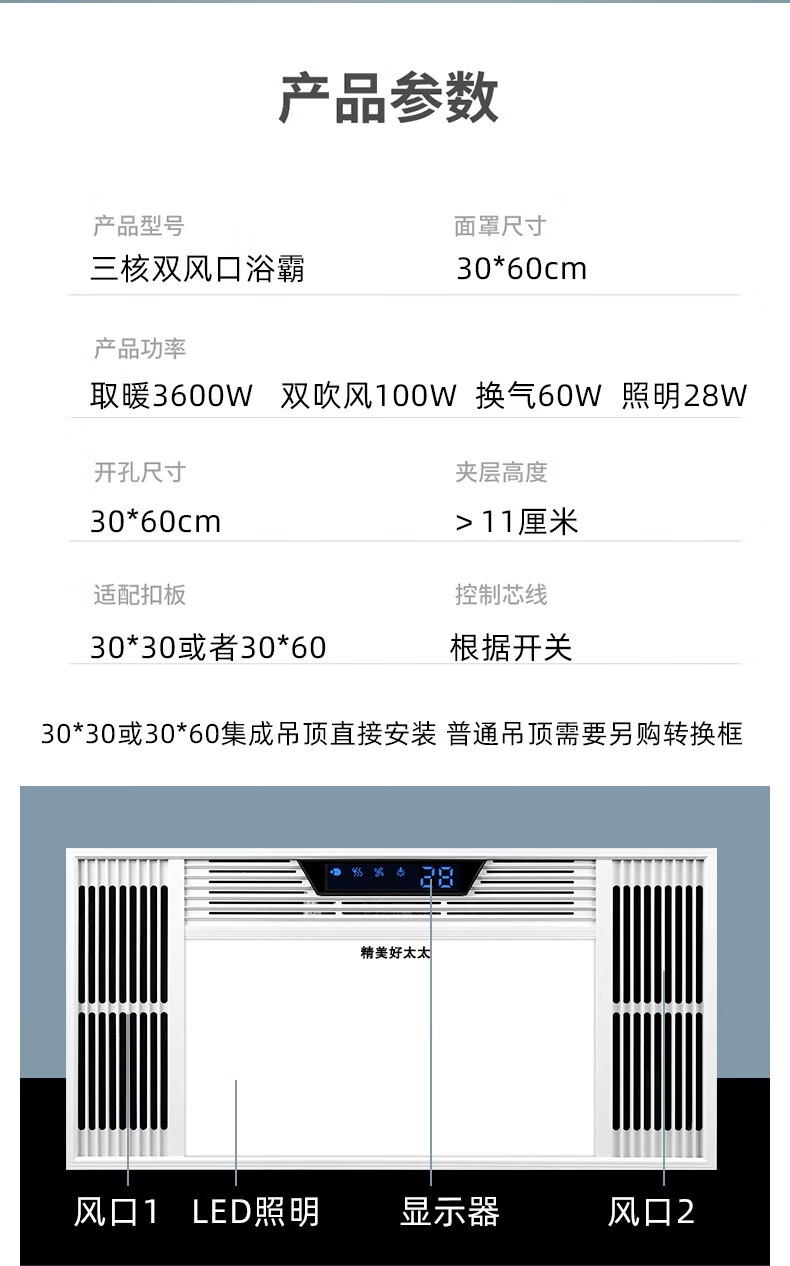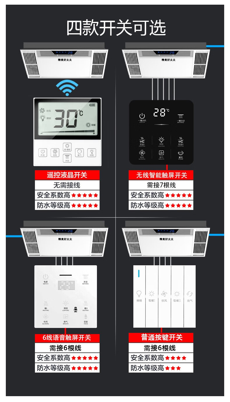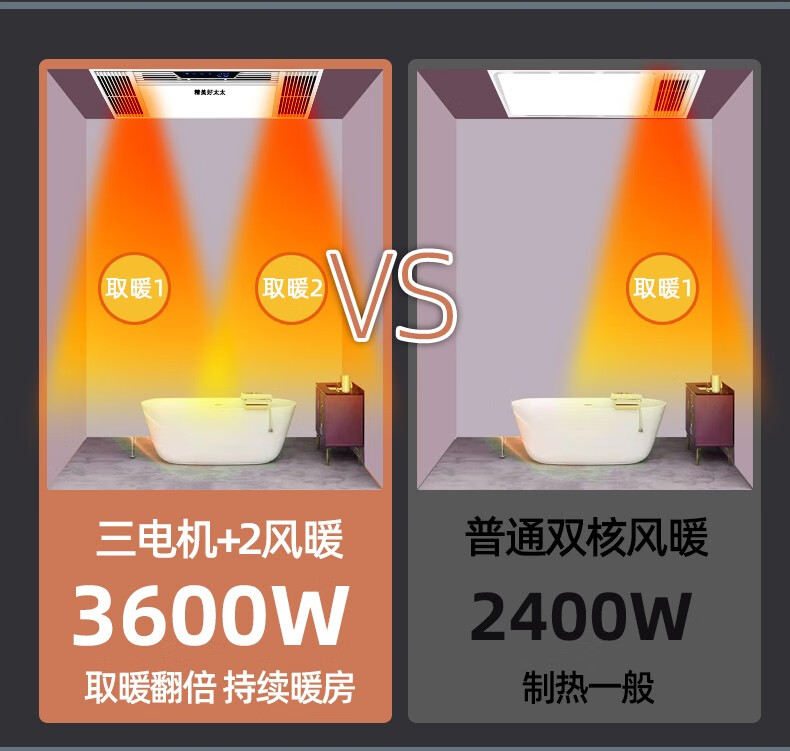 Exquisite Good Wife Bath Heater Integrated Ceiling Triple Core Dual Air Heating Triple Motor LED Light Exhaust Fan Lighting All-in-One Multi-Function Five-in-One Fashion White-Piano Key Switch Aluminum Alloy Panel