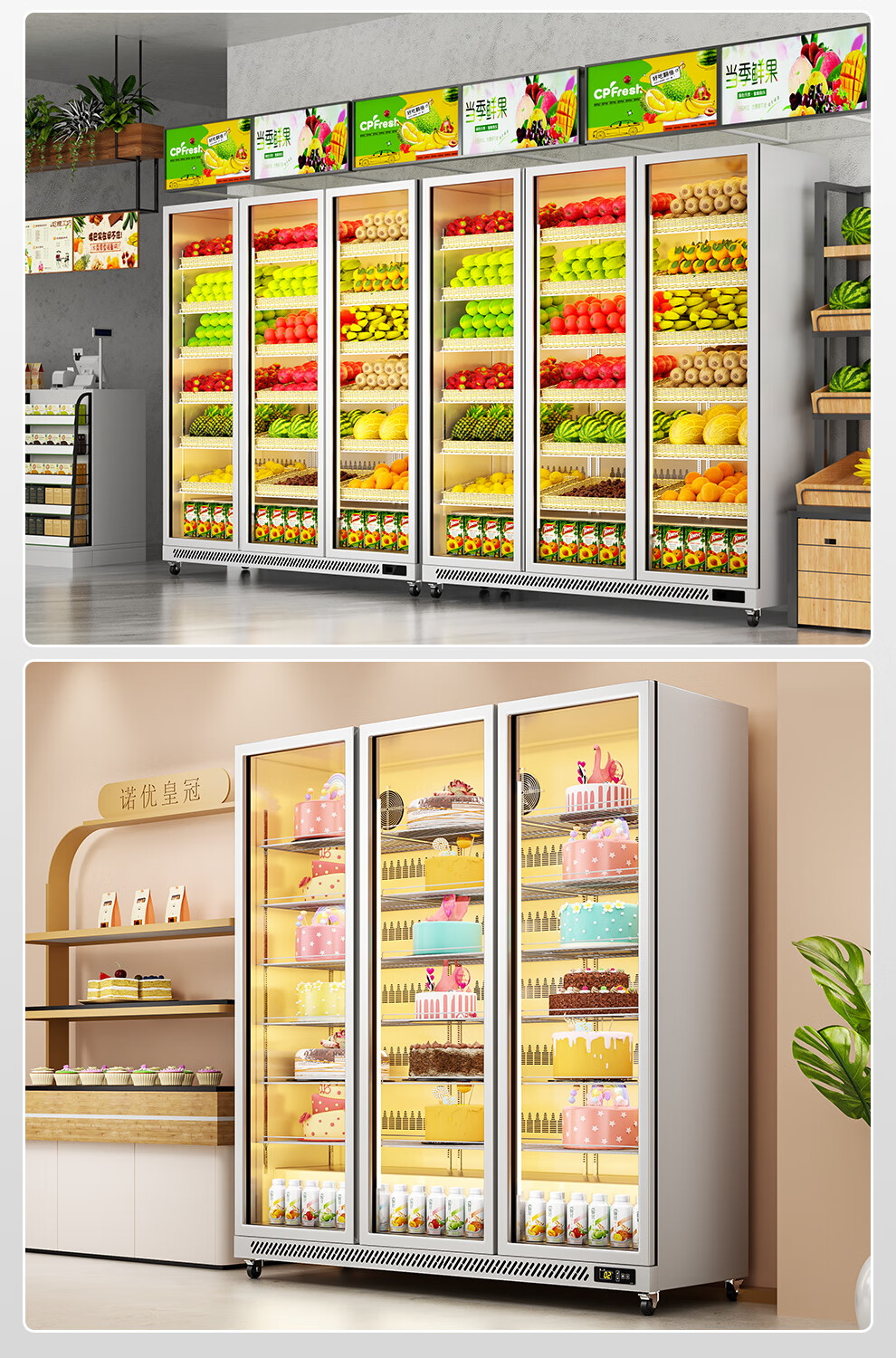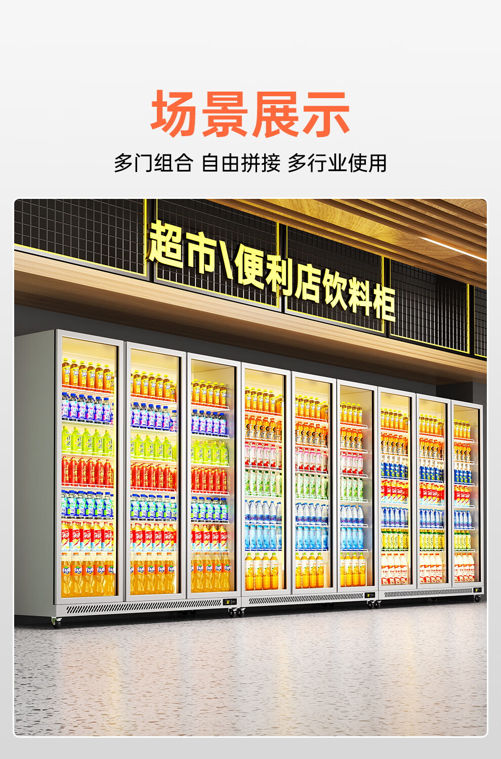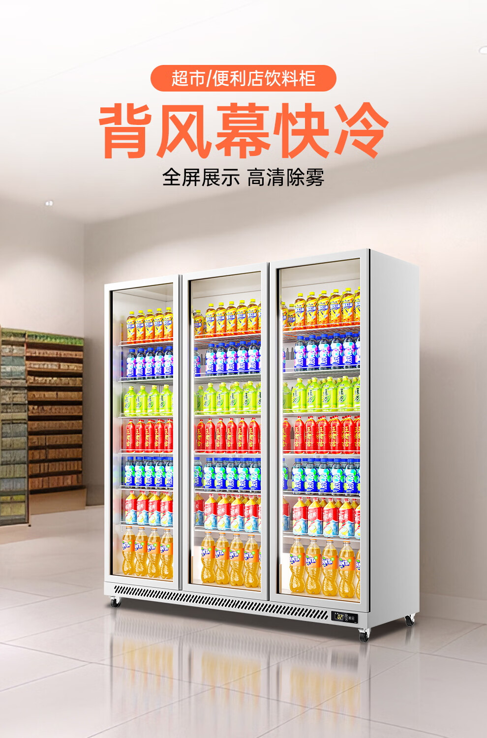 Added beverage display cabinet refrigerated fruit fresh cabinet freezer commercial vertical air-cooled bar beer cabinet convenience store refrigerator fast cooling high fog clearing four doors 2250*600*1800