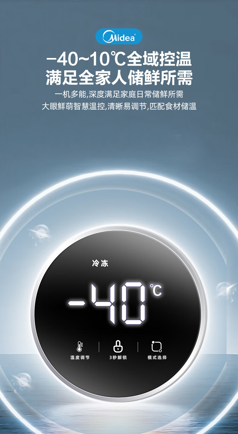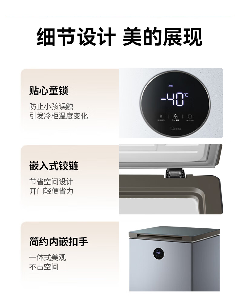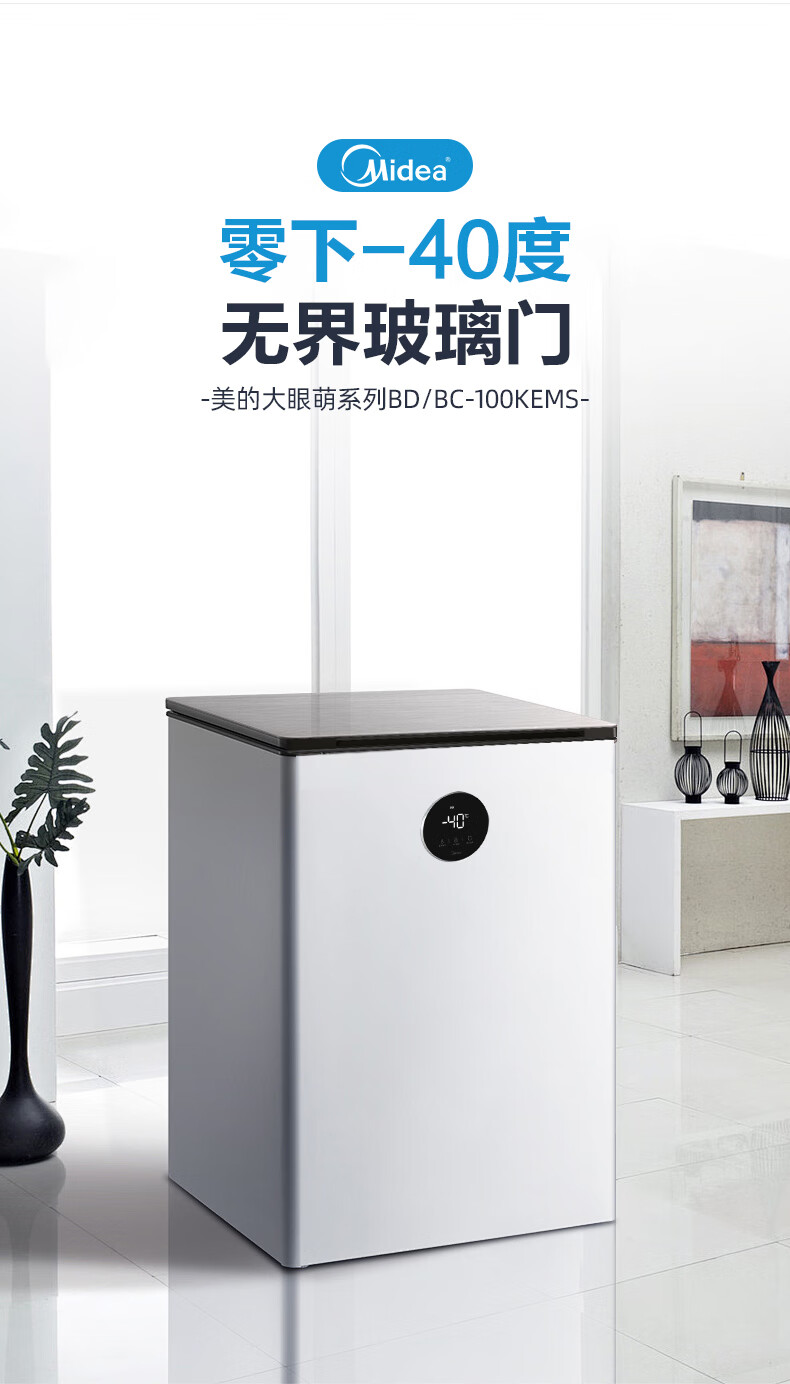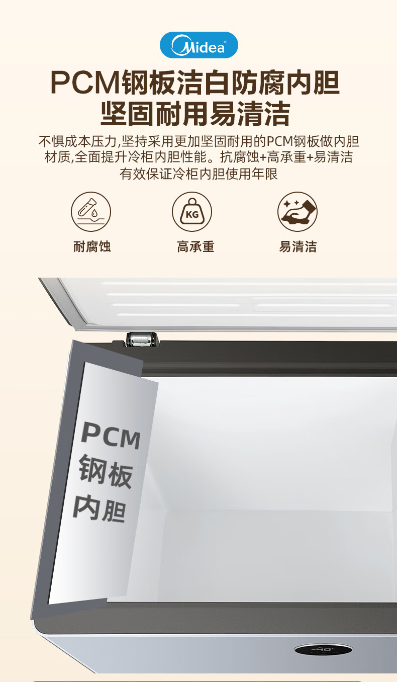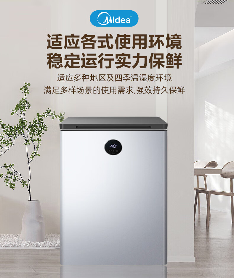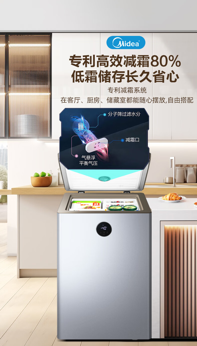Midea automatic defrost household freezer 200 liters horizontal freezer commercial large capacity first-class energy efficiency ultra-low temperature -30 degree cryogenic quick freeze small tea cabinet 201KGPM/-40 degree quick freezing/alloy liner/201L