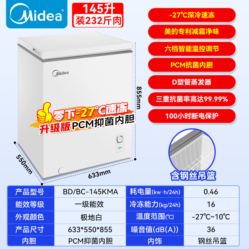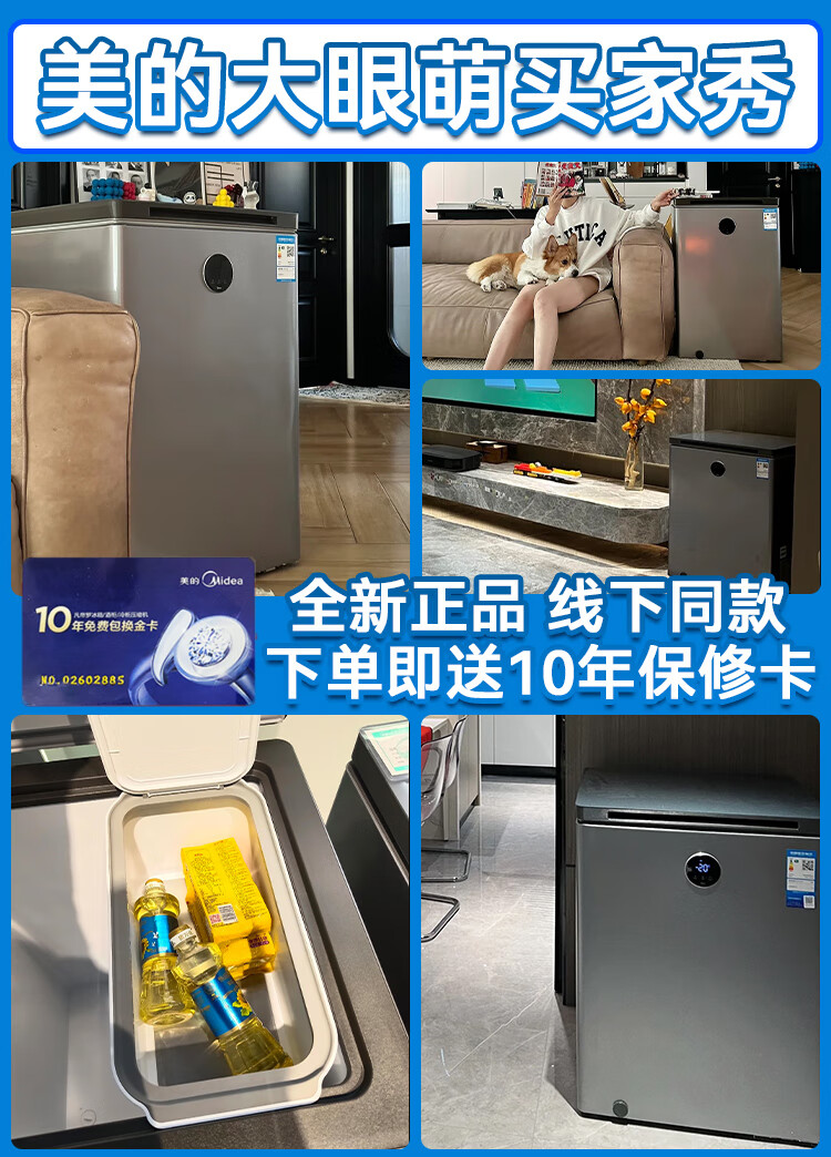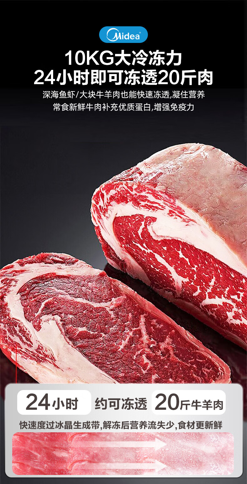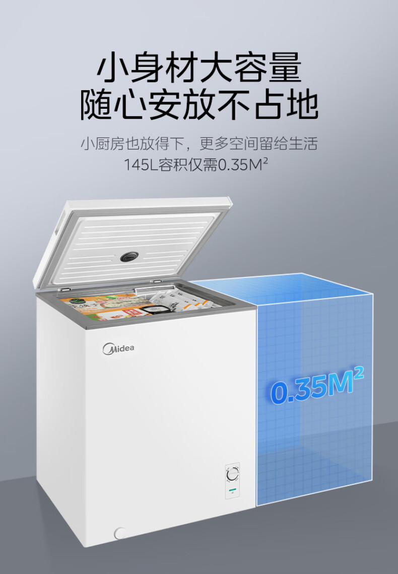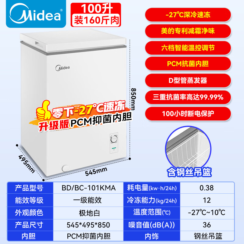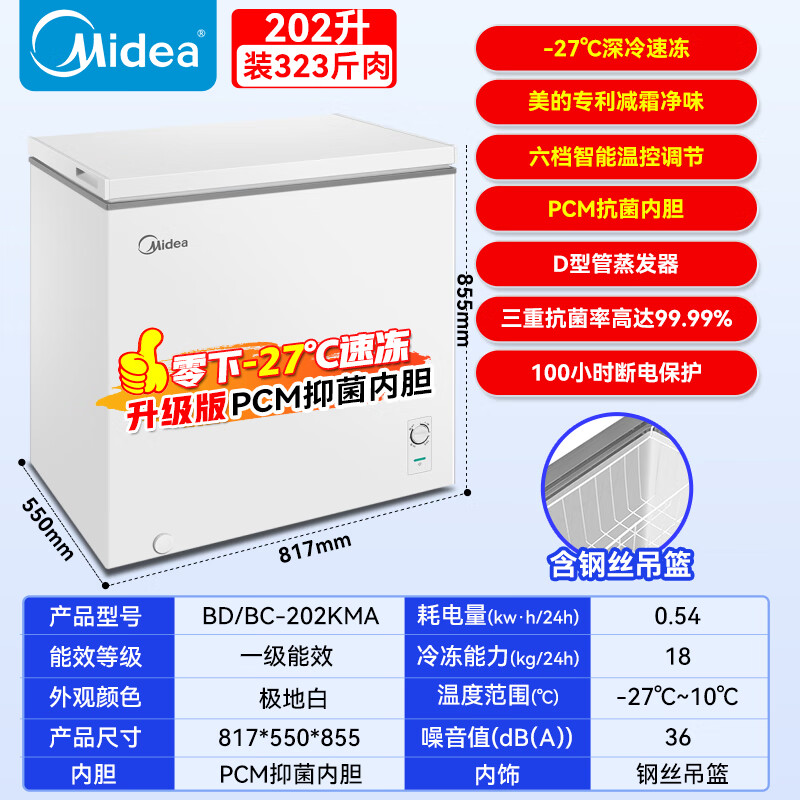 Midea automatic defrost household freezer 200 liters horizontal freezer commercial large capacity first-class energy efficiency ultra-low temperature -30 degree cryogenic quick freeze small tea cabinet 201KGPM/-40 degree quick freezing/alloy liner/201L