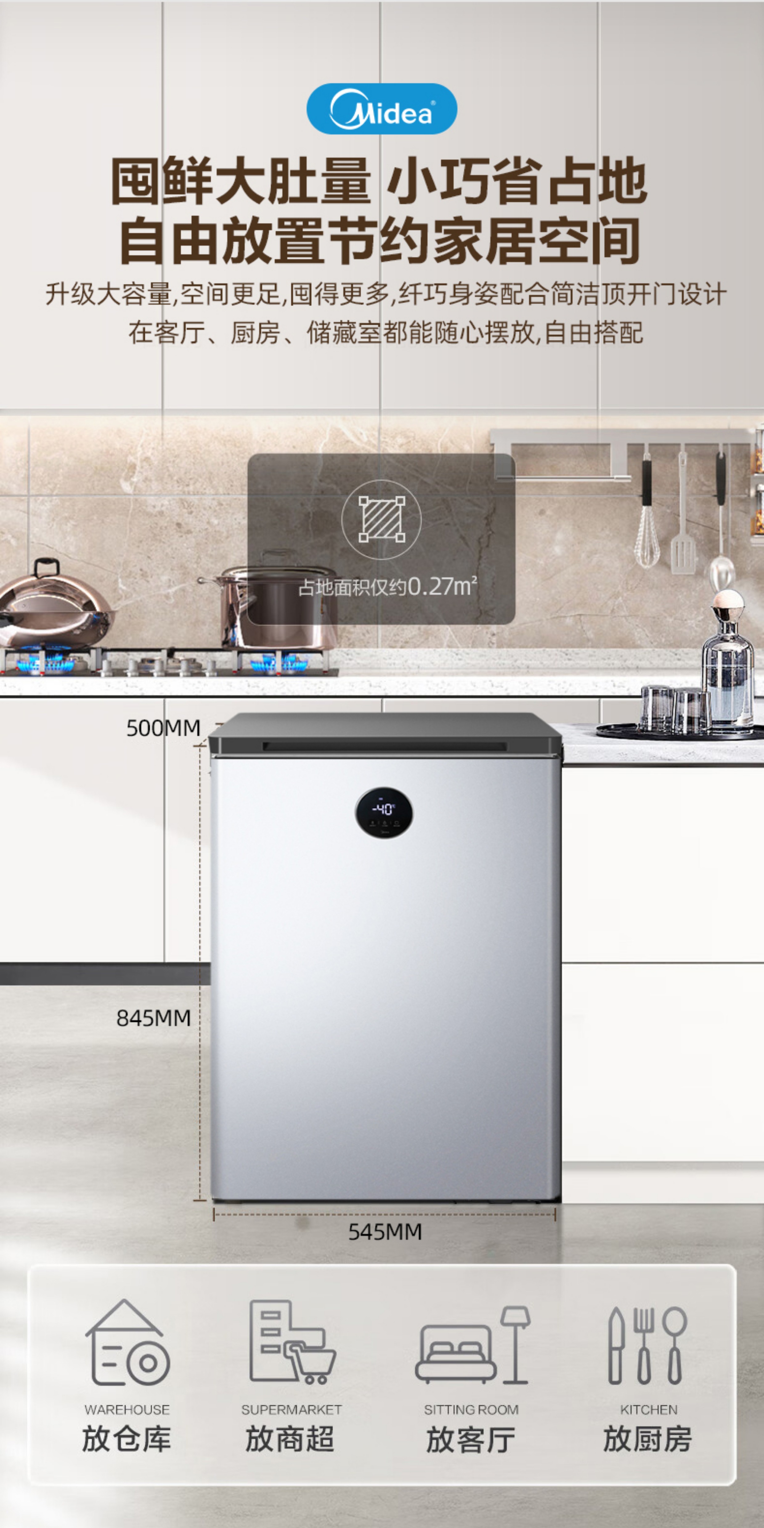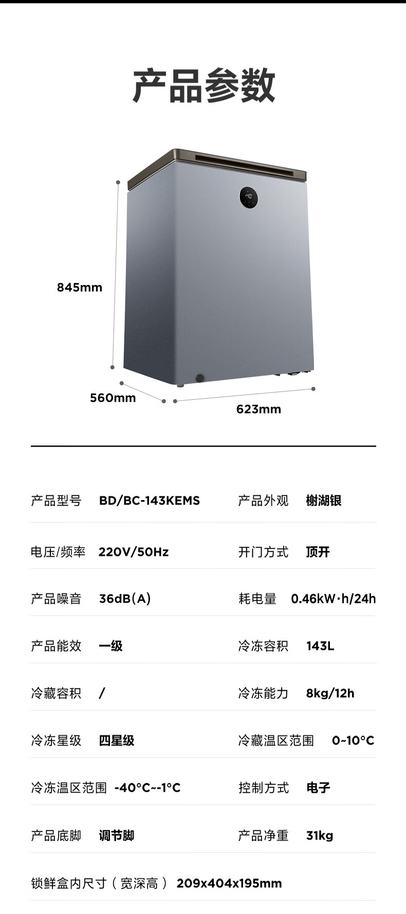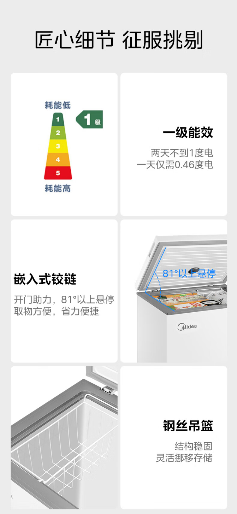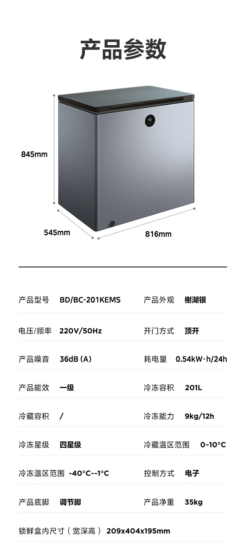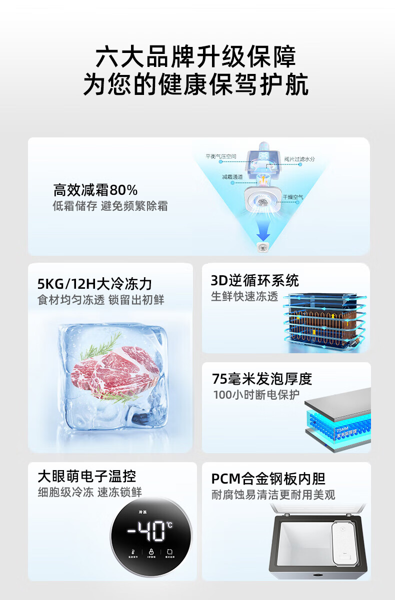 Midea automatic defrost household freezer 200 liters horizontal freezer commercial large capacity first-class energy efficiency ultra-low temperature -30 degree cryogenic quick freeze small tea cabinet 201KGPM/-40 degree quick freezing/alloy liner/201L