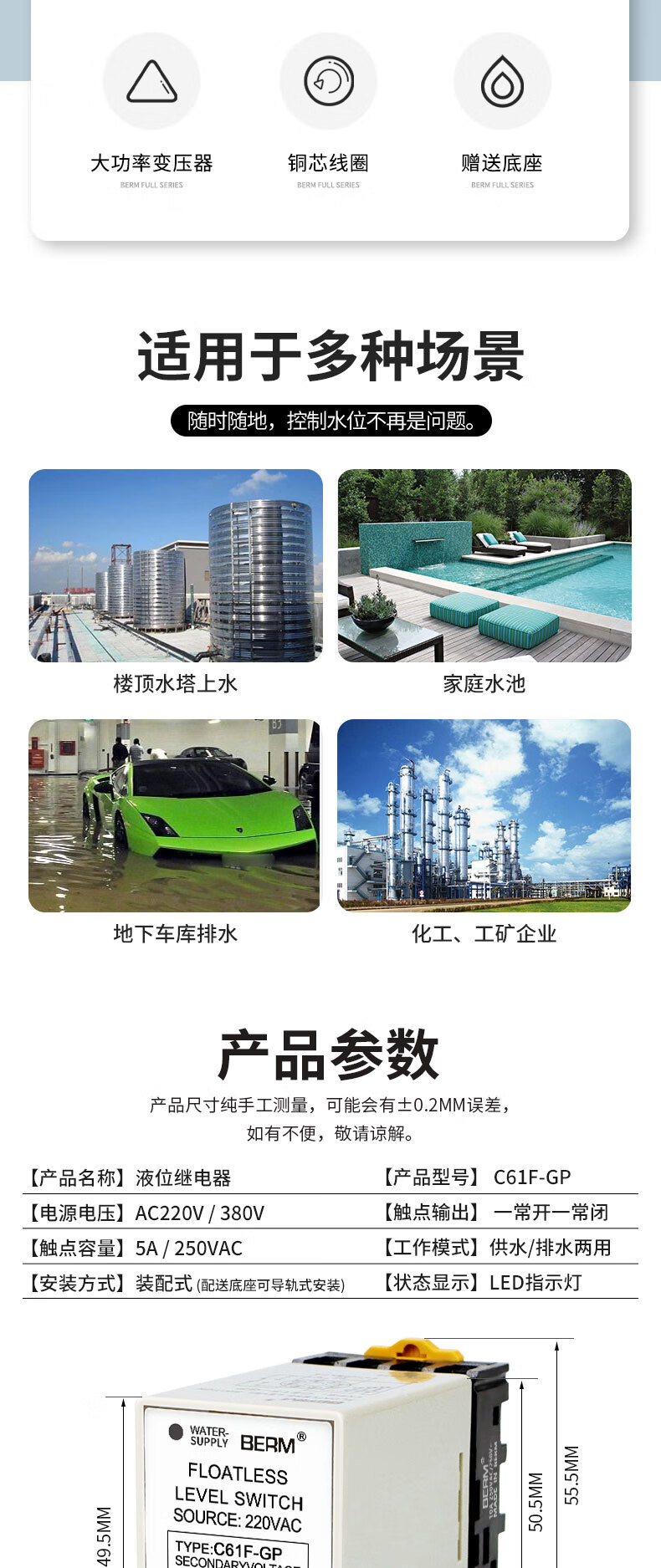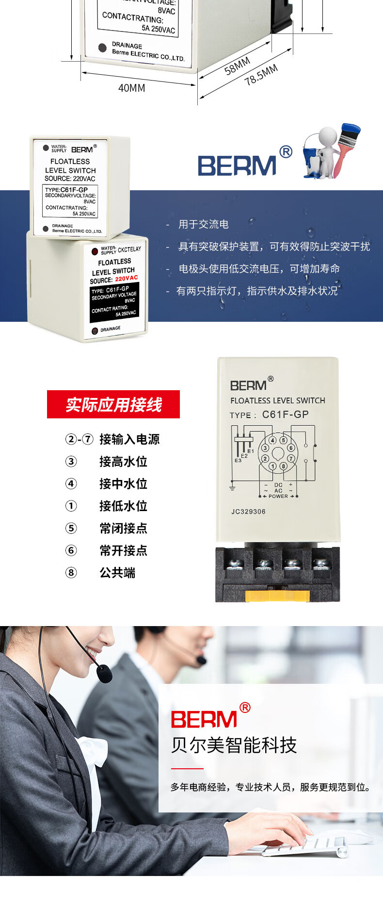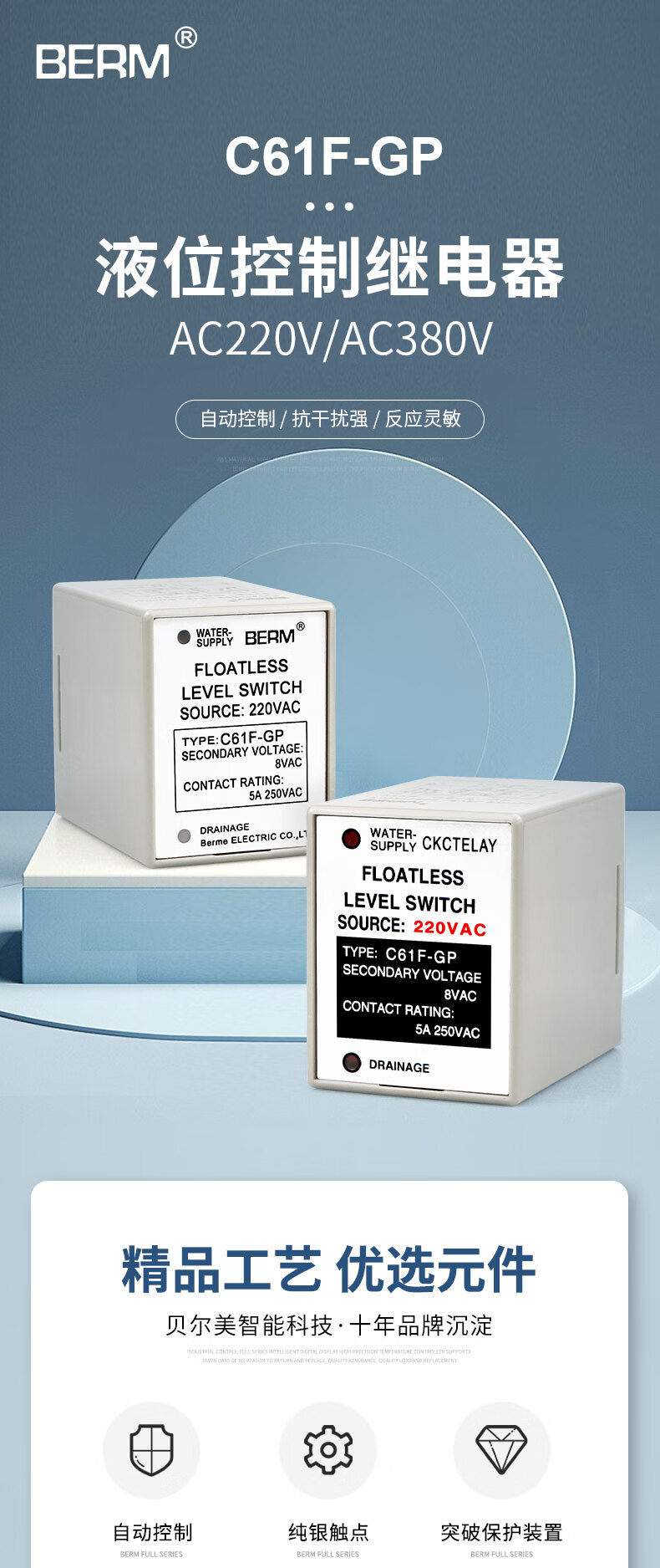 Liquid level relay C61F-GP water level controller water level switch water tower pump automatic switch C61F-GP AC220V