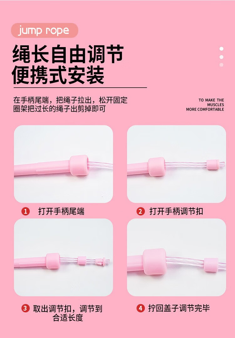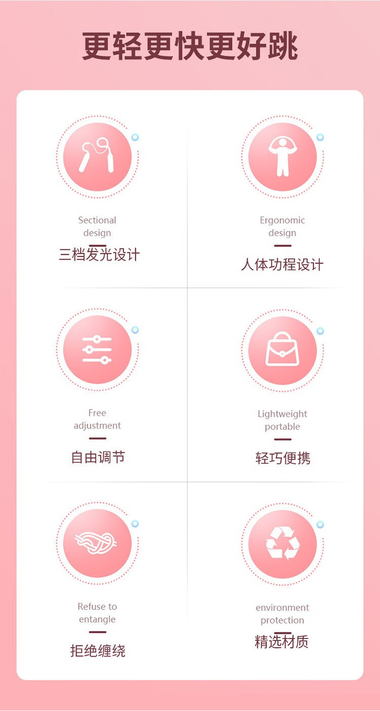 Yuhao Luminous Skipping Rope Sports Fitness Fat Loss Weight-bearing Rope Children Primary School Adults Weight Loss Training Luminous Rope Douyin Same Style Colorful Pink 2.8m