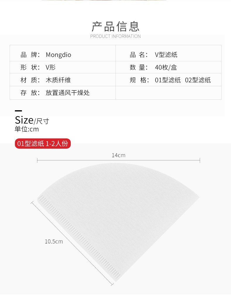 Mongdio Coffee Filter Drip Americano V60 Hand-brewed Coffee Filter V-shaped 2-4 servings original color 100 pieces (7 warehouse delivery)