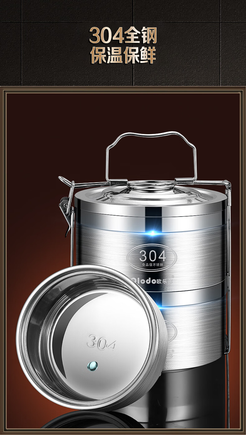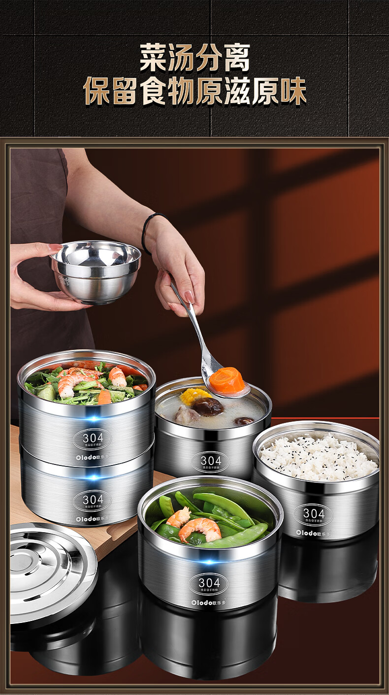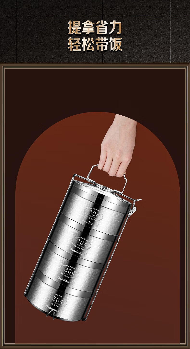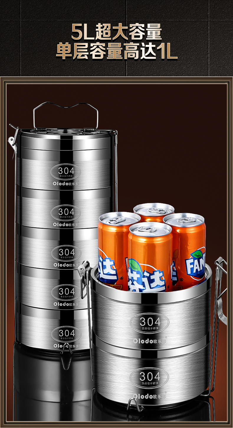 Olodo German insulated lunch box 304 stainless steel large capacity multi-layer lunch box extra long insulated adult portable lunch box large five layers with insulated bag + tableware 4L