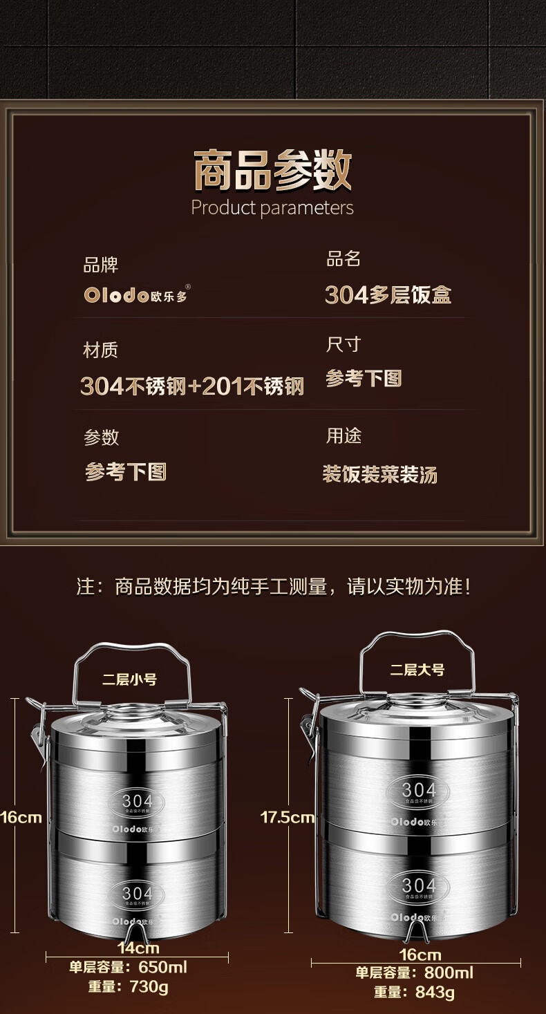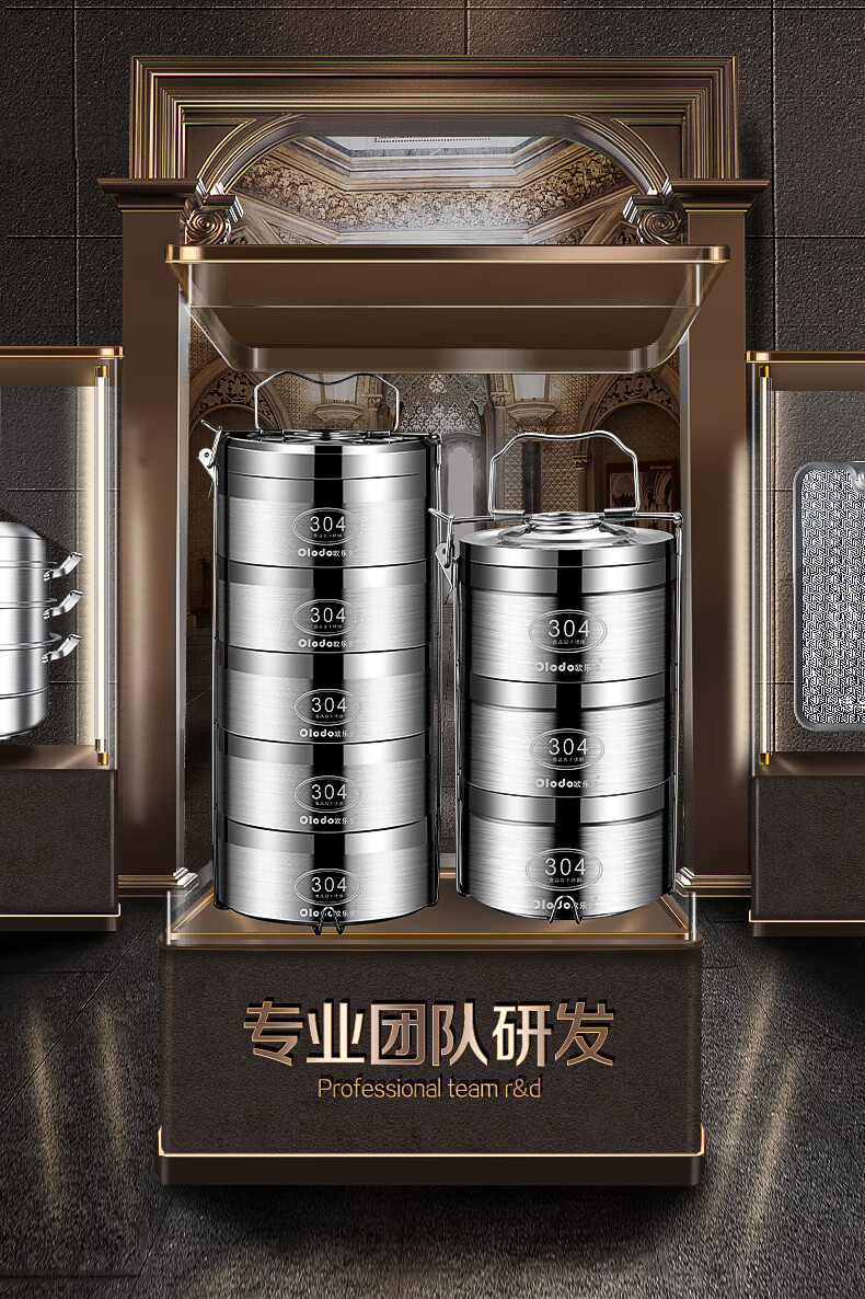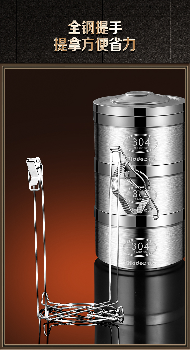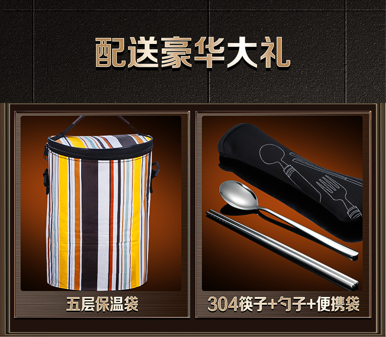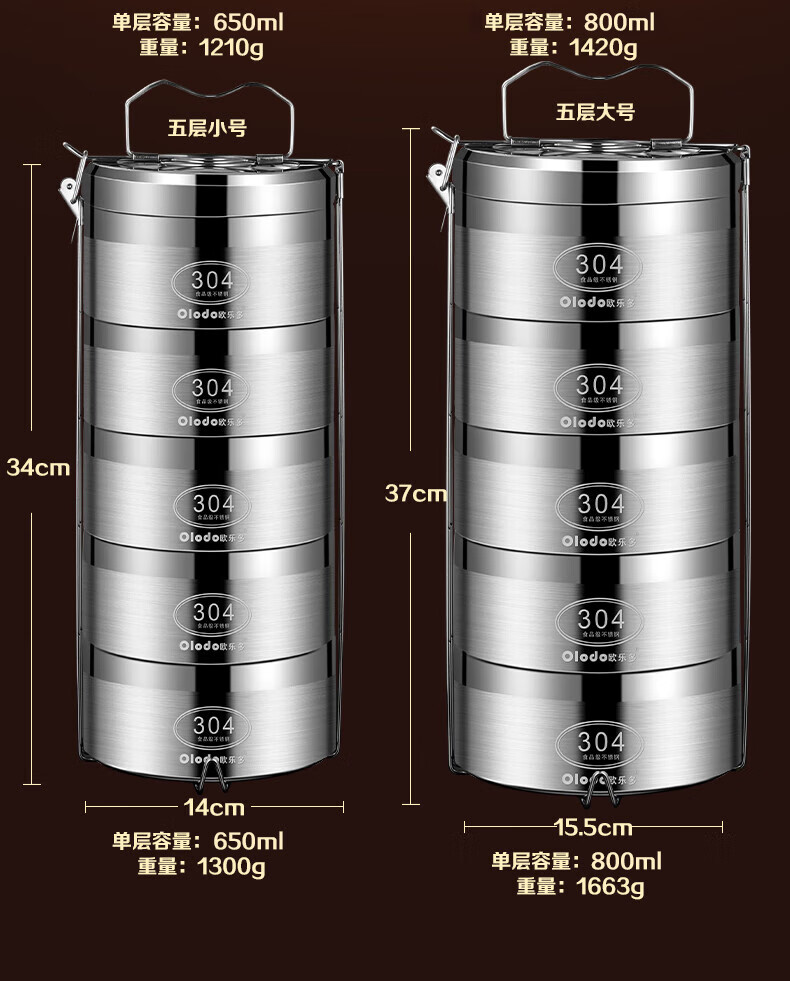 Olodo German insulated lunch box 304 stainless steel large capacity multi-layer lunch box extra long insulated adult portable lunch box large five layers with insulated bag + tableware 4L