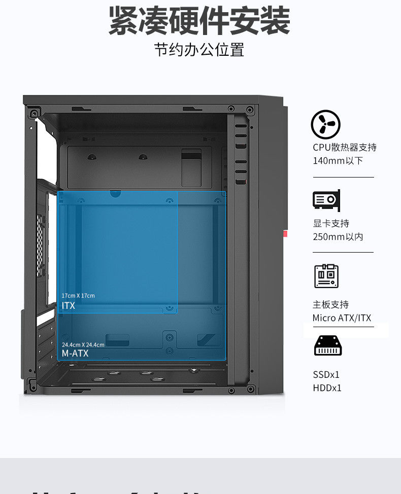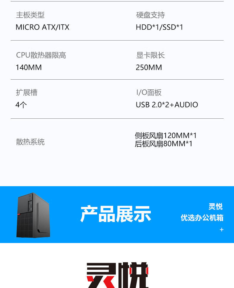 (Tail stock) mini mini matx assembled desktop computer full-side transparent atx small main chassis power supply office shell itx Lingyue+Ji to 500WS power supply
