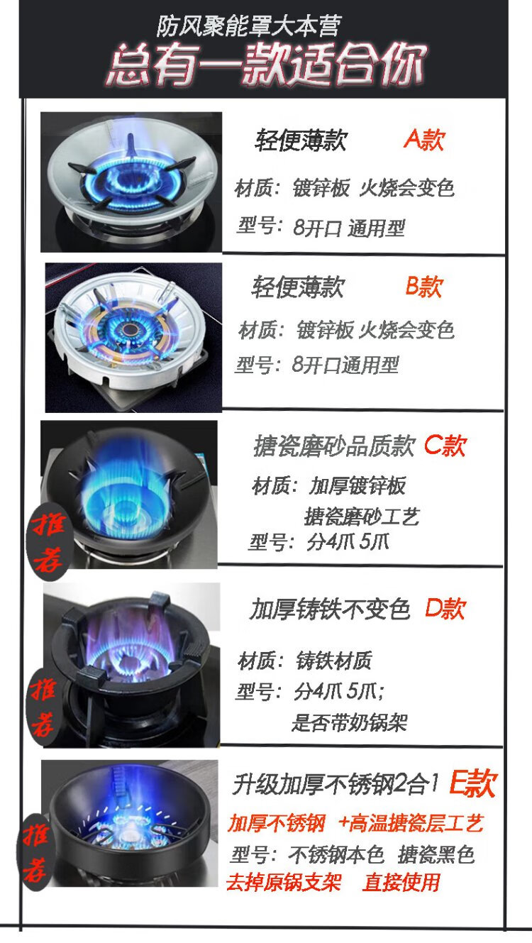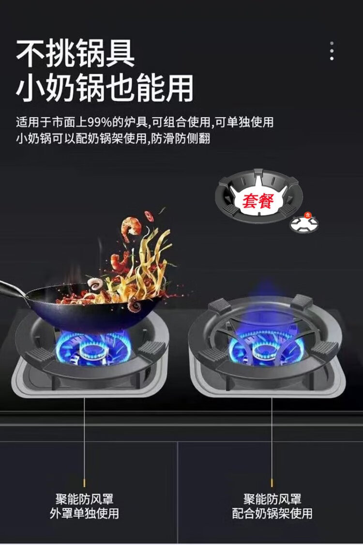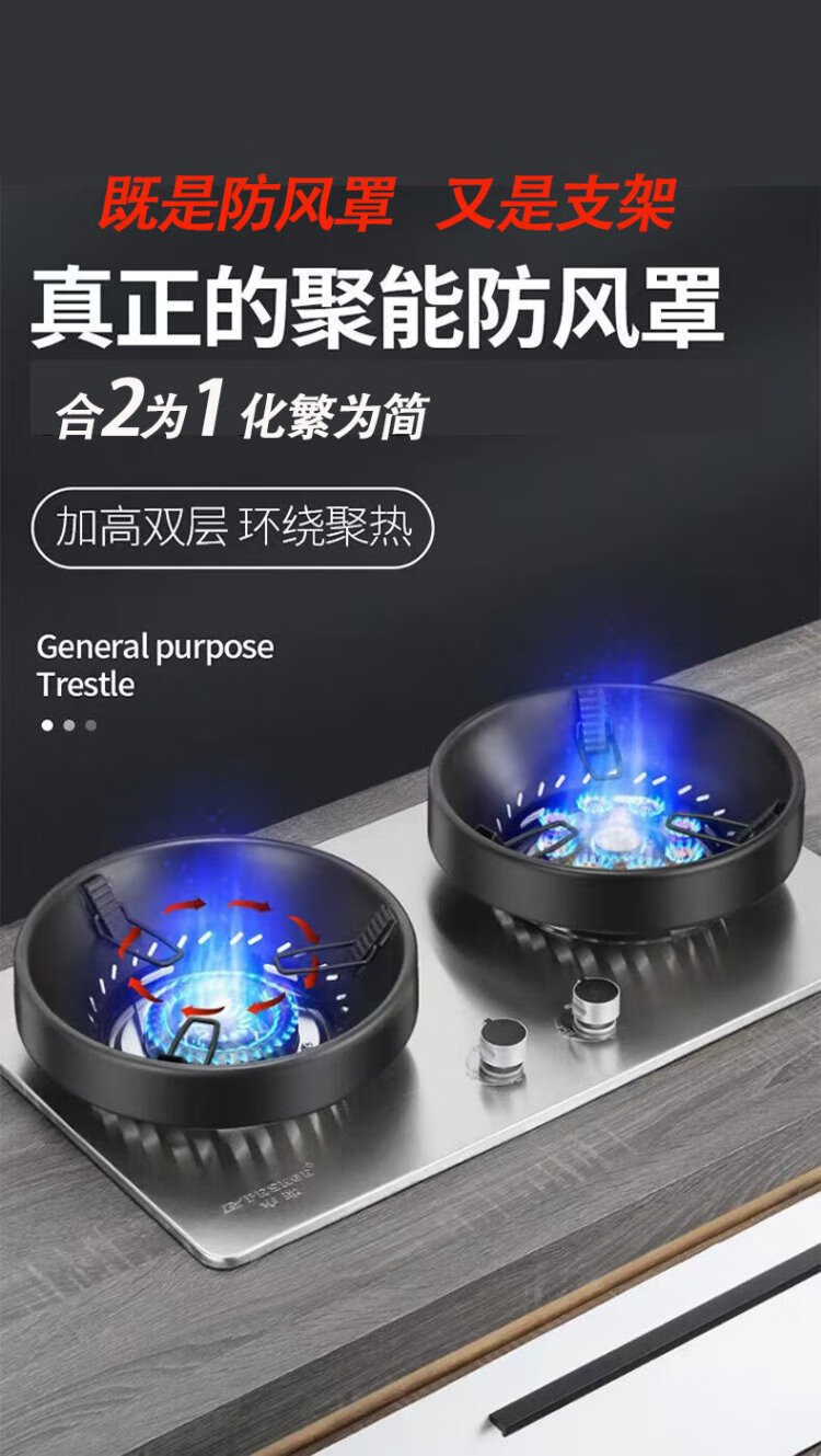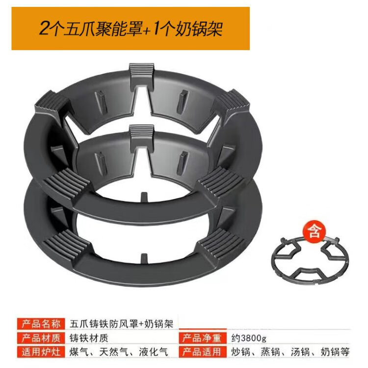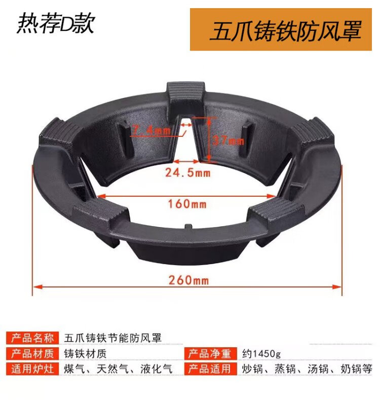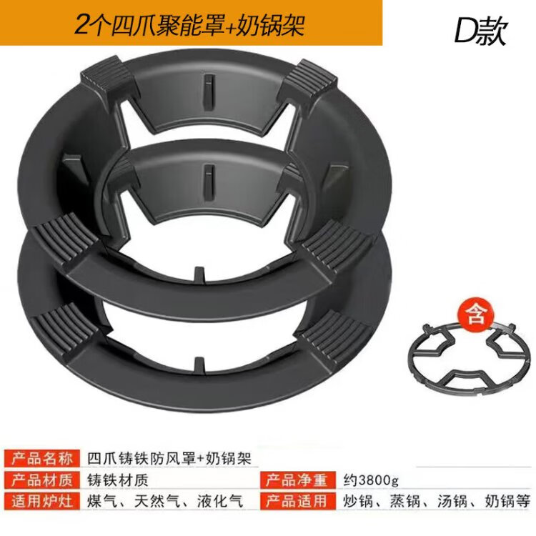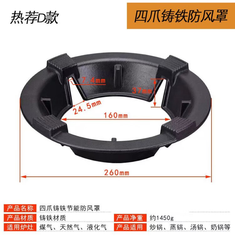 Keli gas windproof energy-saving fire hood cast iron stove windproof hood universal fire windshield anti-slip frame black enamel C style 2 pcs four claws