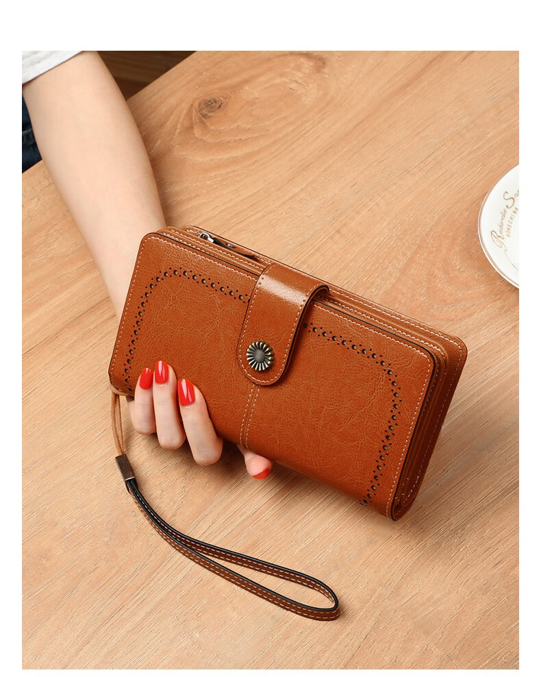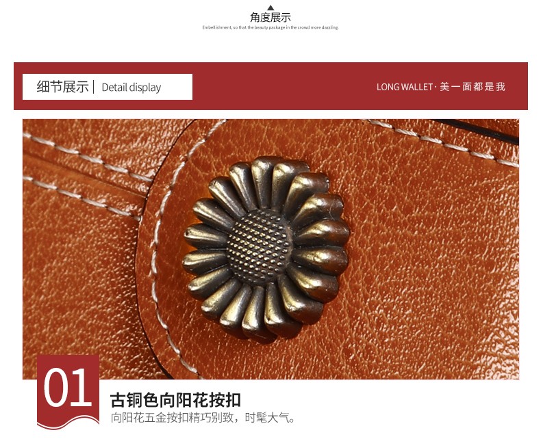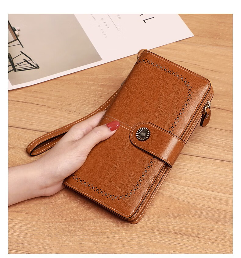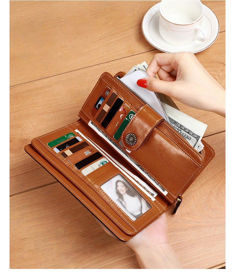 VUNIQSON brand wallet women's niche design genuine leather small bag temperament long leather wallet handbag antique yellow