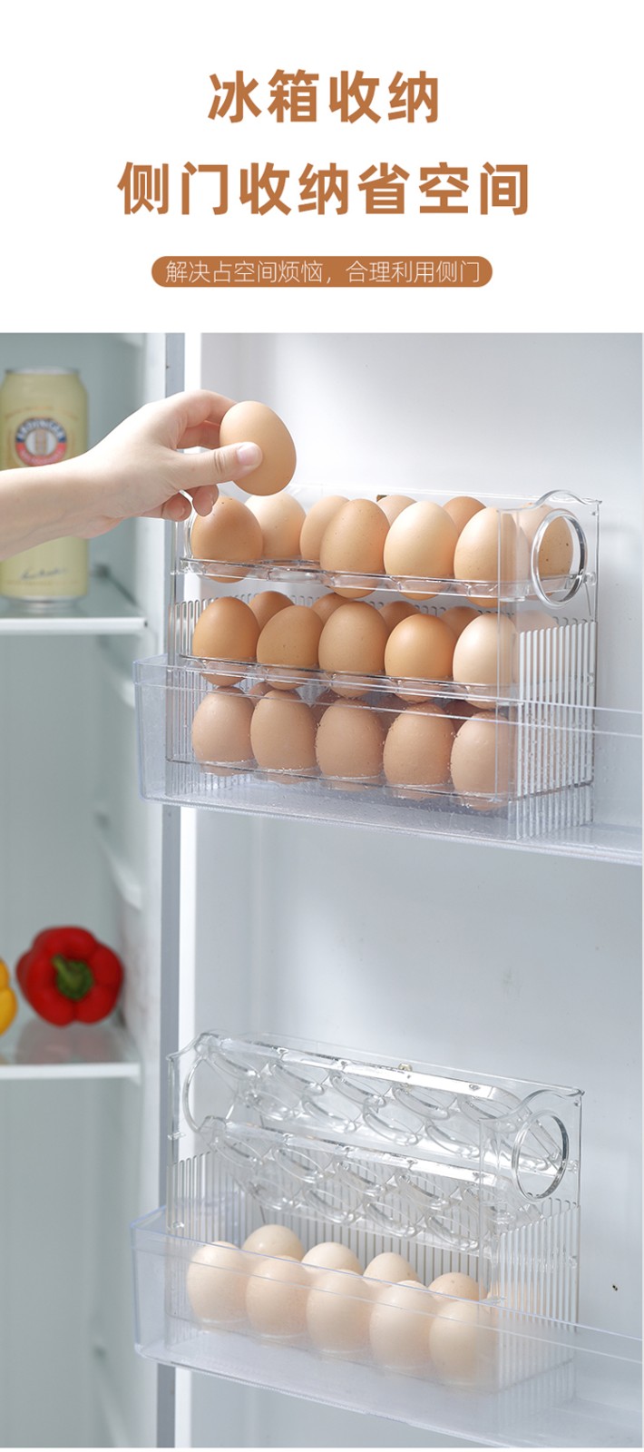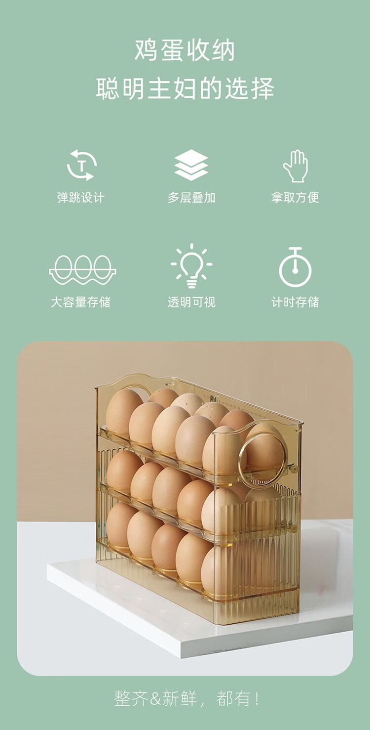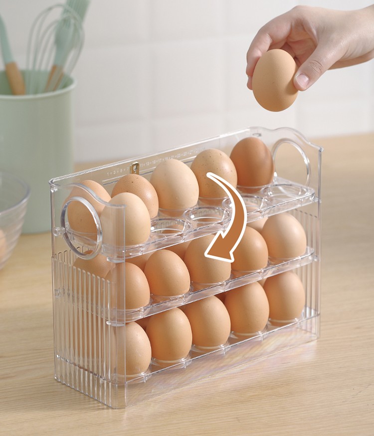 Sungsa refrigerator egg storage box food-grade crisper side door special storage egg rack flip egg tray transparent flip egg box can hold 30 pieces